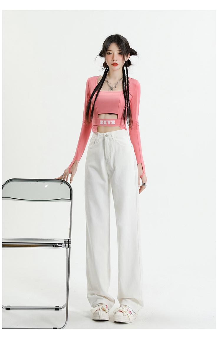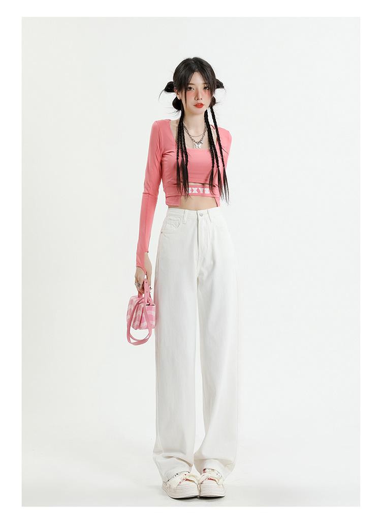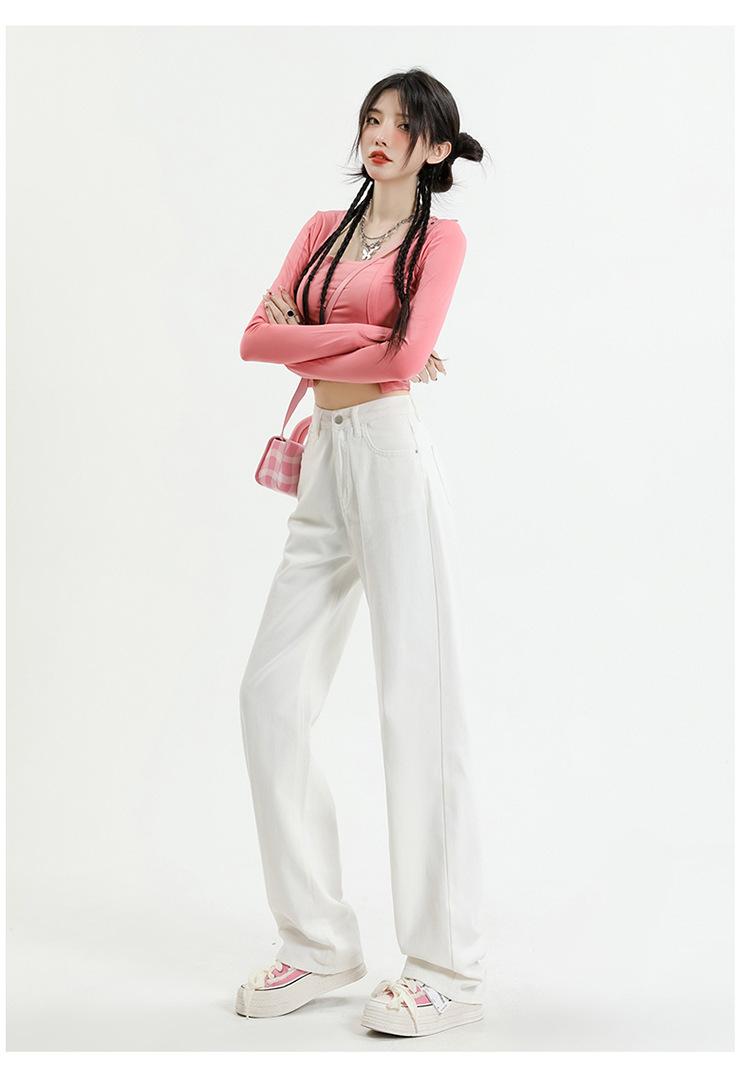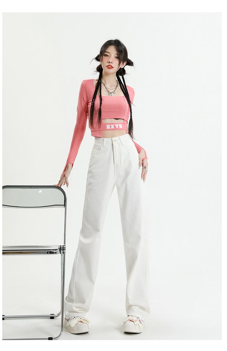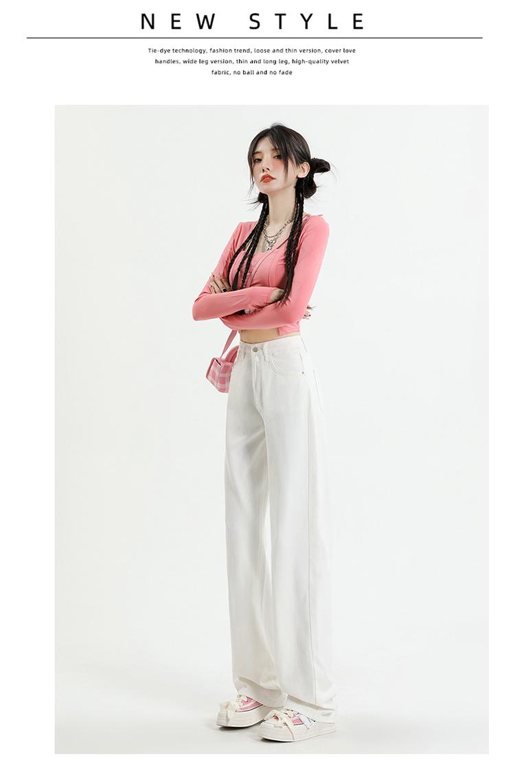 Pantalones vaqueros blancos para mujer, primavera 2024, nuevos, de pierna ancha, cintura alta, holgados, adelgazantes, rectos, largos.