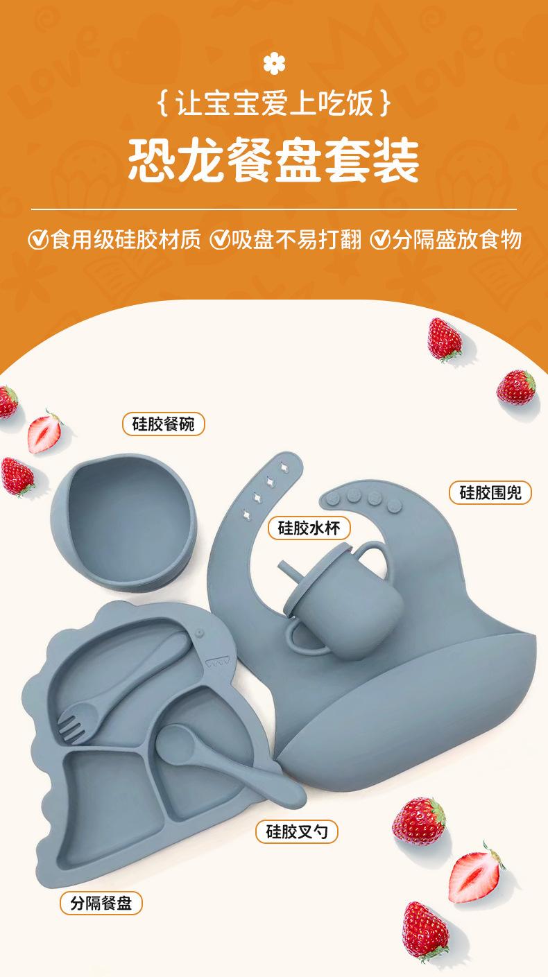 Plato de cena para bebés y niños, tazón de silicona suplementario, cuchara, plato de cena para bebés, vajilla, tazón de silicona con ventosa, vajilla para niños.