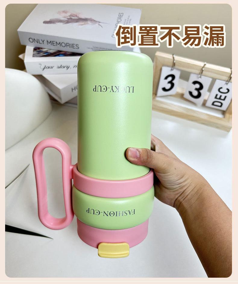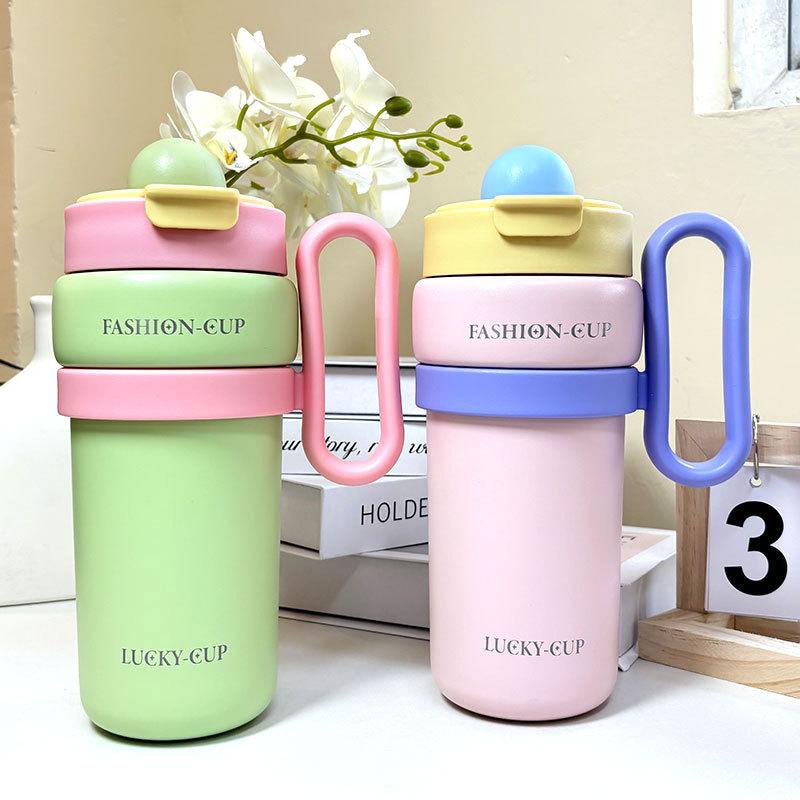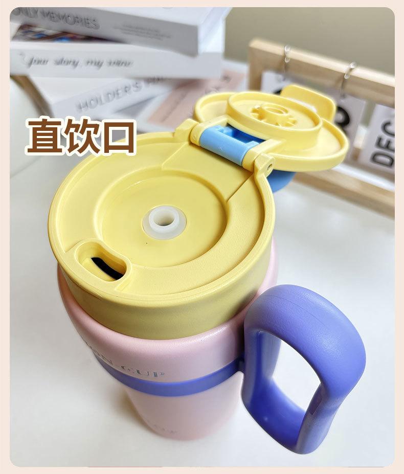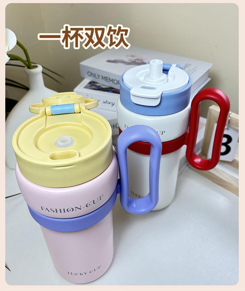 Termo de gran capacidad, asa de alto valor de color, taza de café doble, portátil, simple, con dopamina