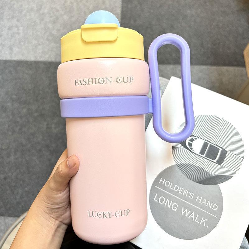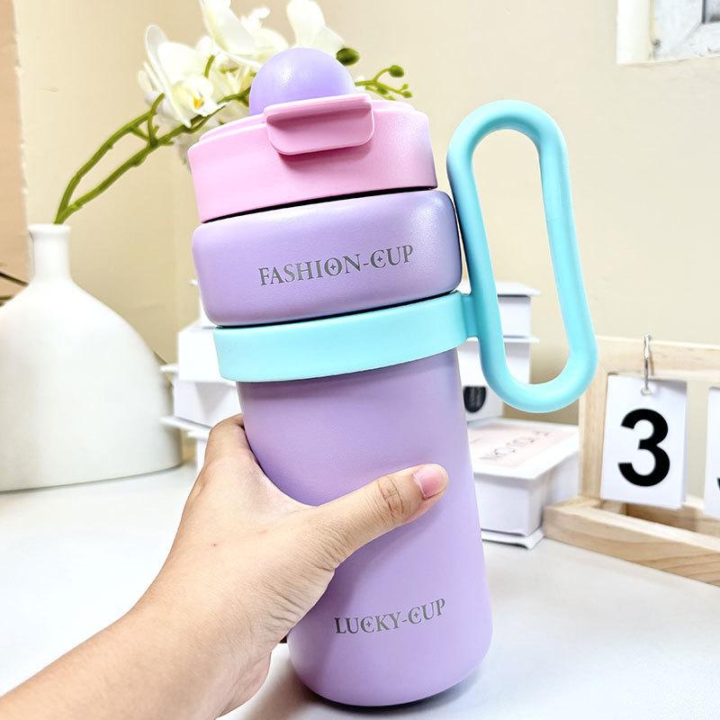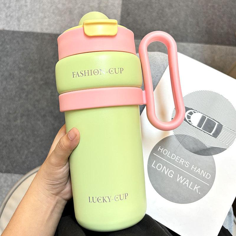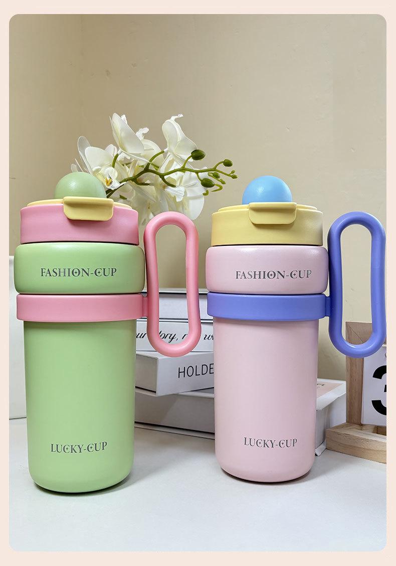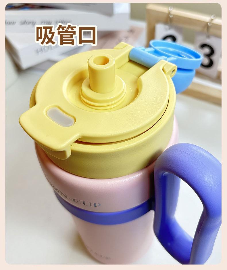 Termo de gran capacidad, asa de alto valor de color, taza de café doble, portátil, simple, con dopamina