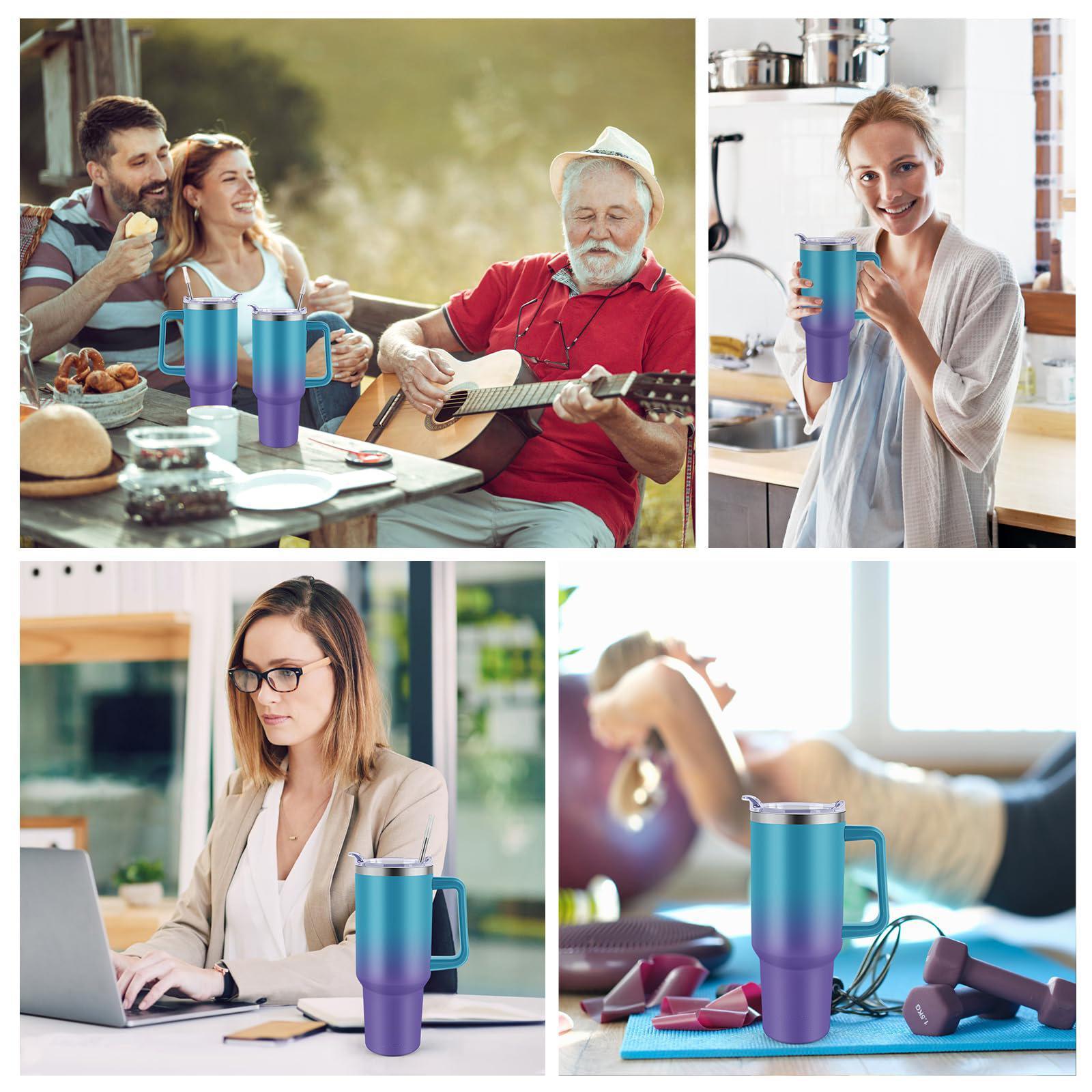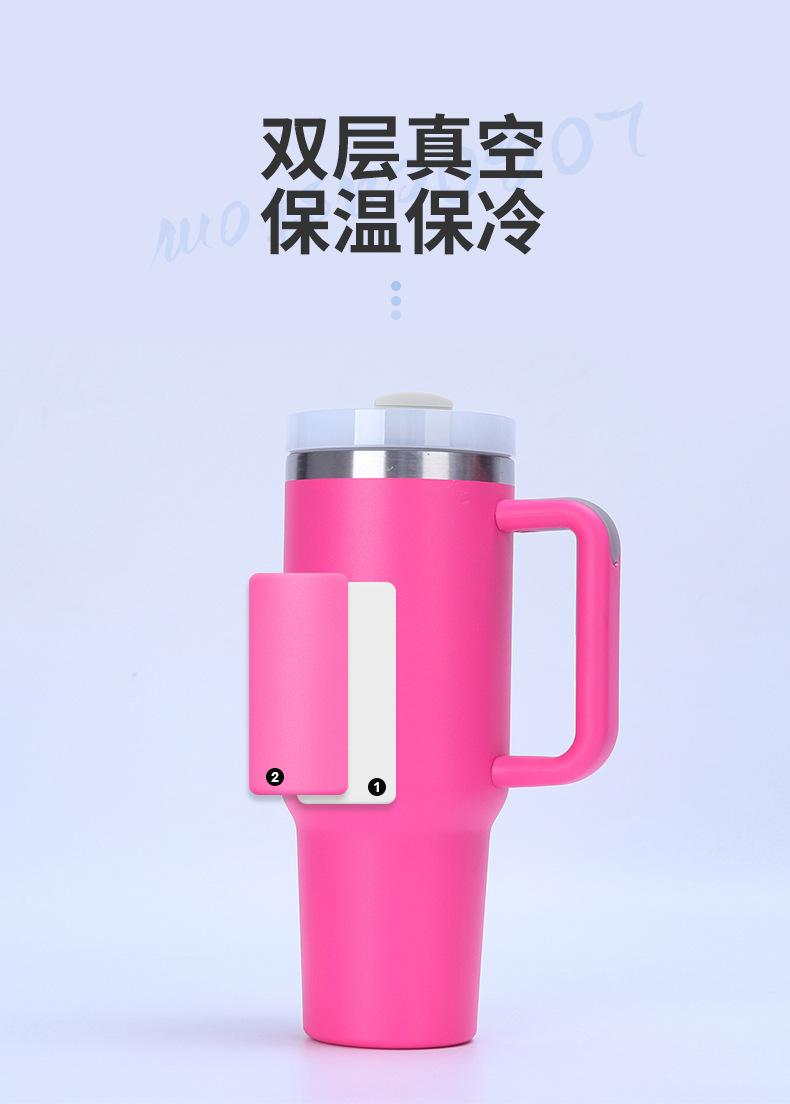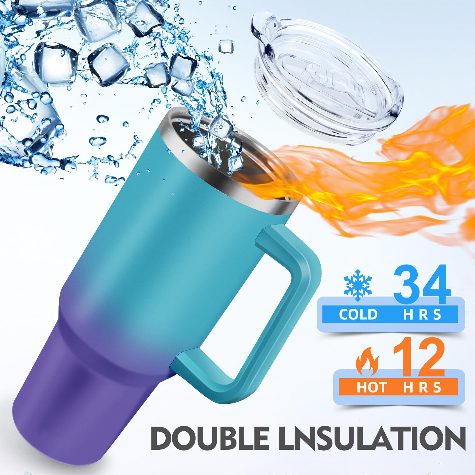 Taza de hielo de 40 oz con impresión 5D, tubo de succión de doble vacío, taza portátil para exteriores de segunda generación, taza térmica de acero inoxidable para automóvil