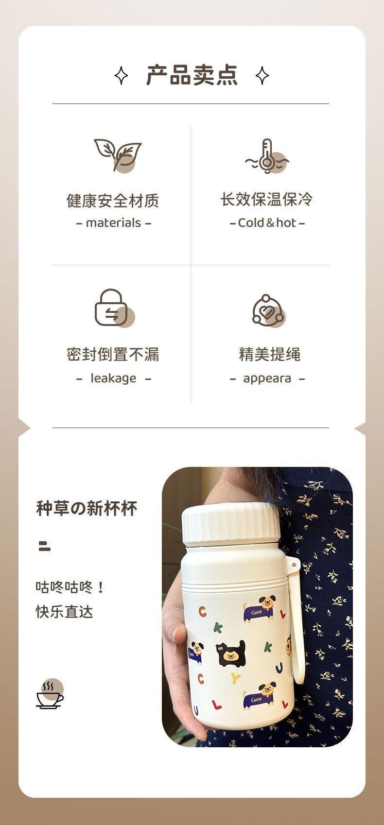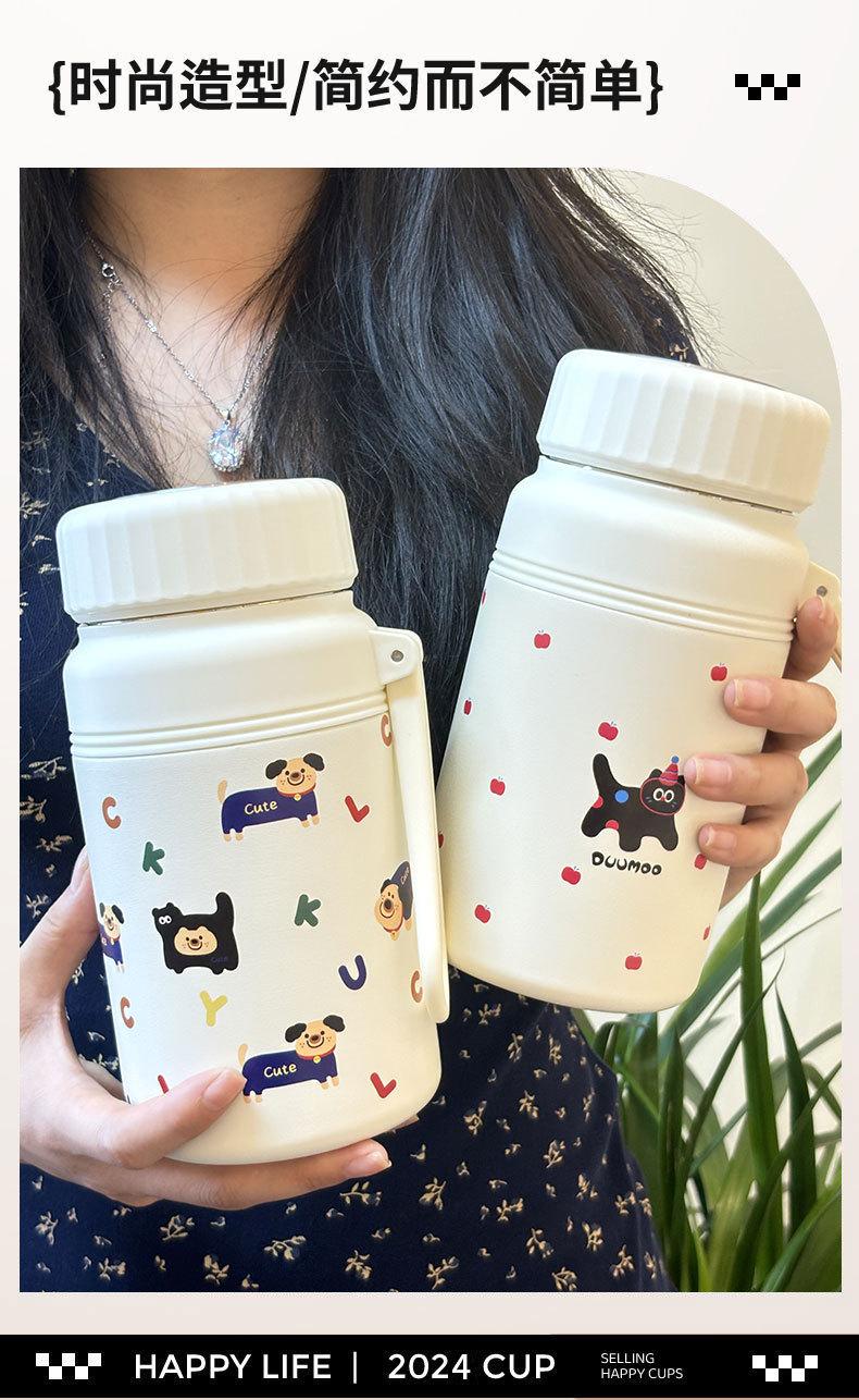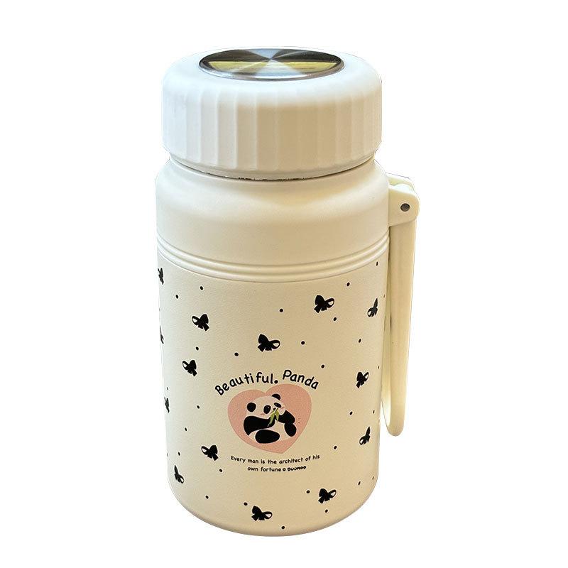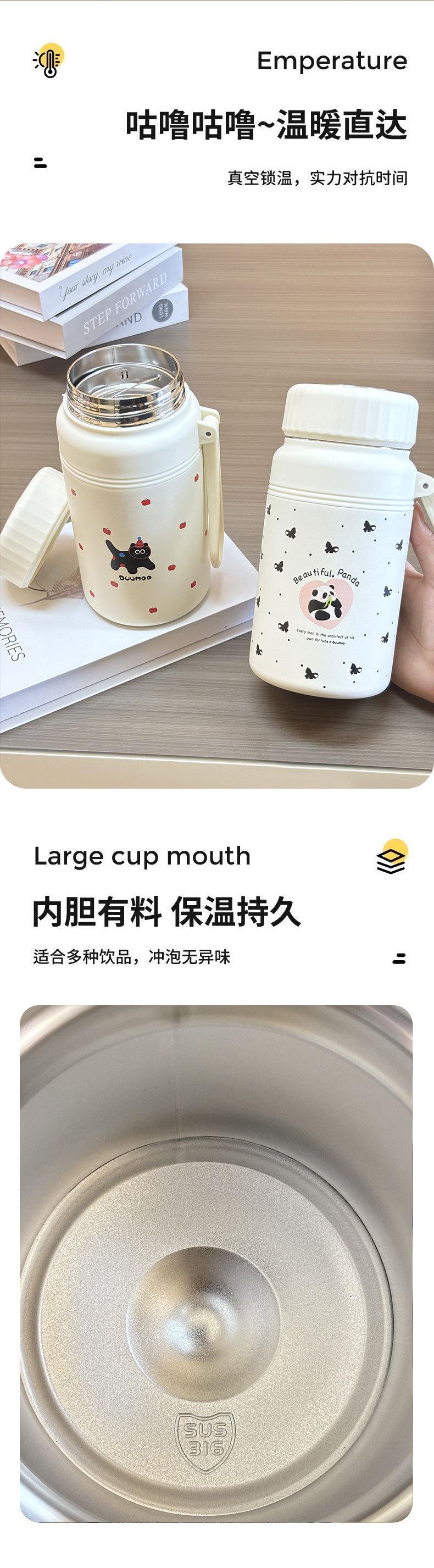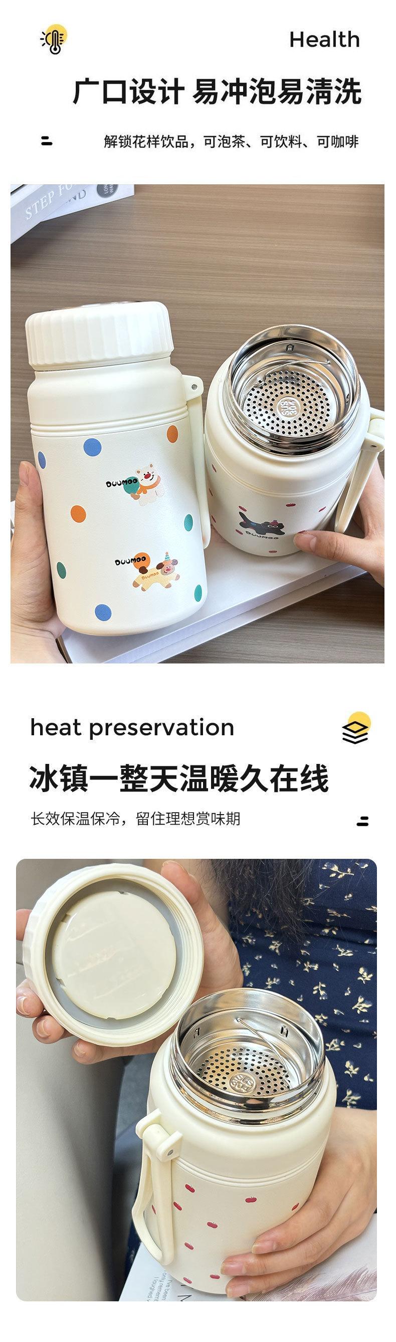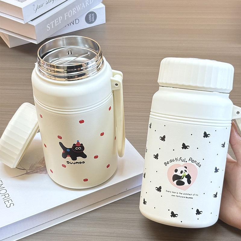 Termo simple de acero inoxidable de gran capacidad y alto valor de color con compartimento para té, taza aislante al vacío con diseño de animales de dibujos animados