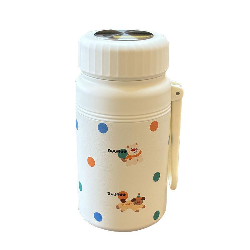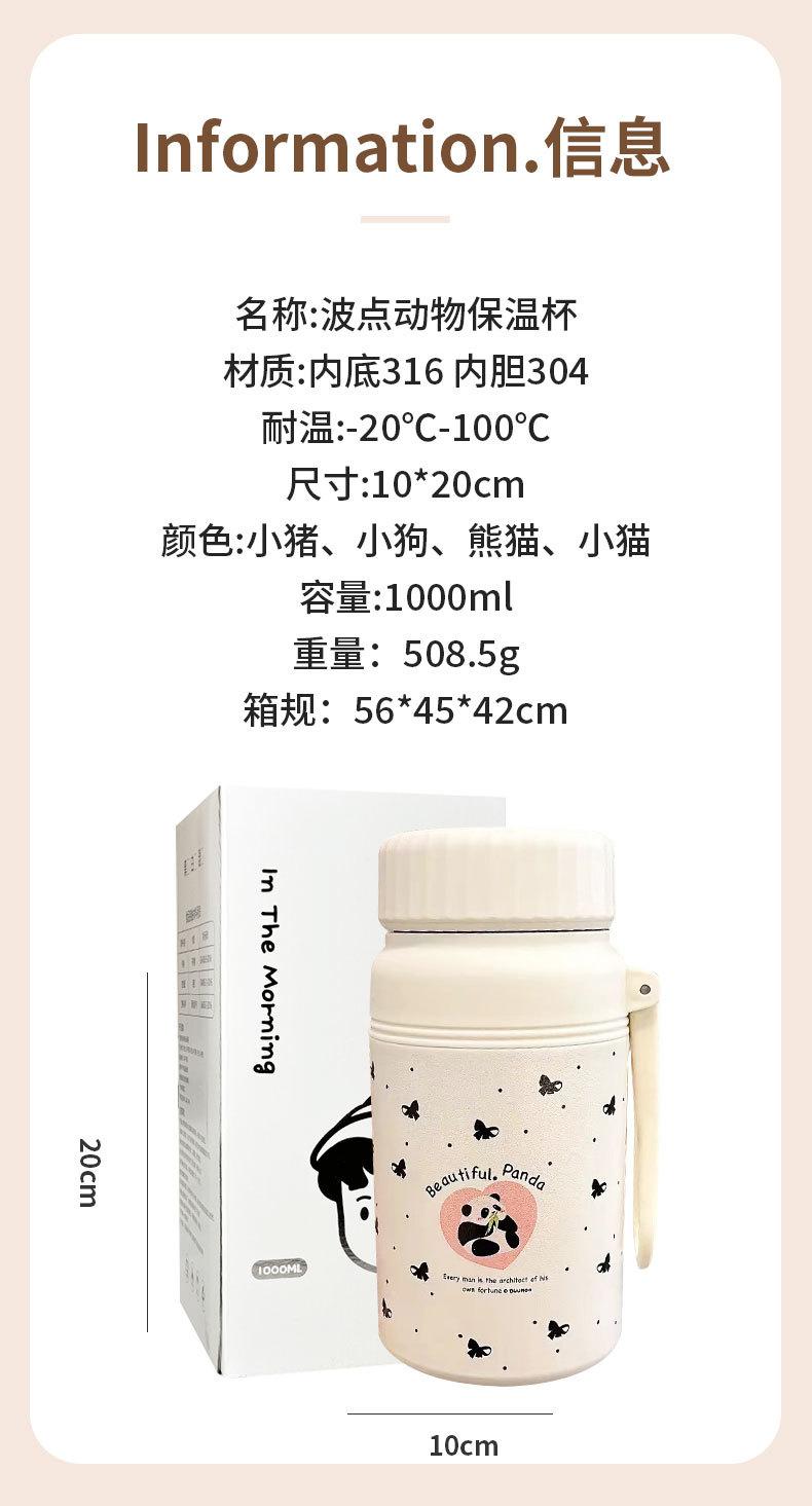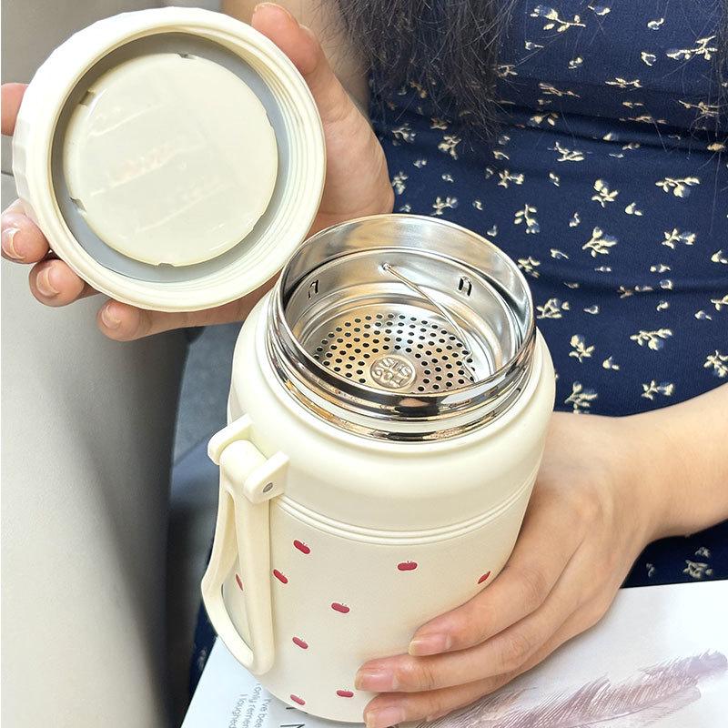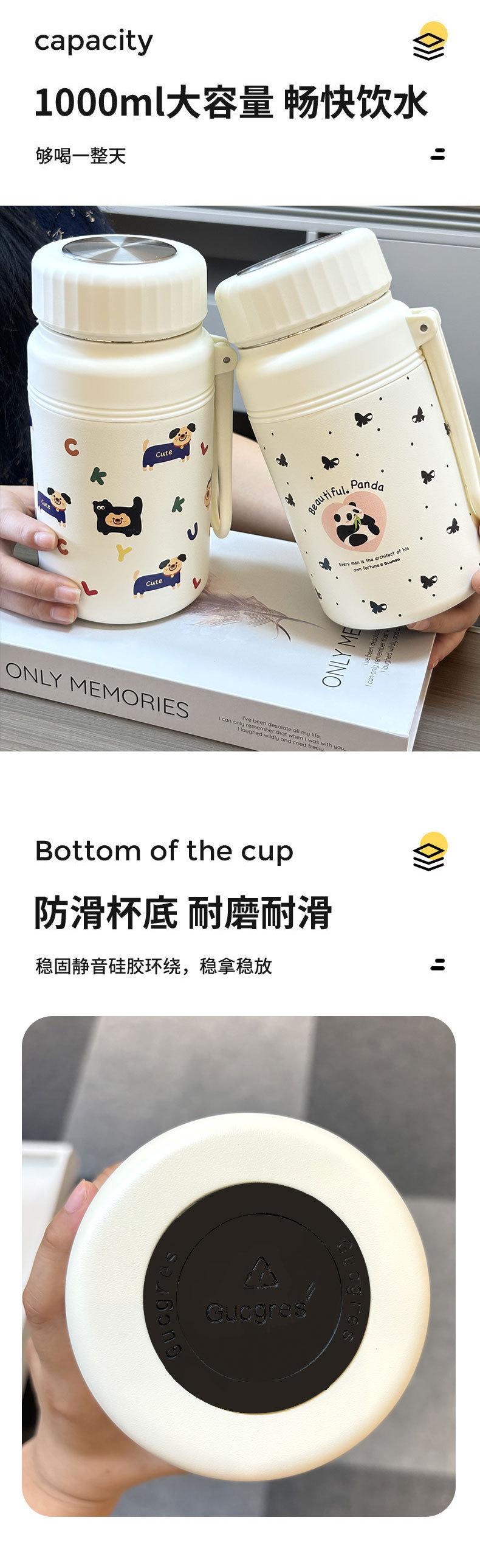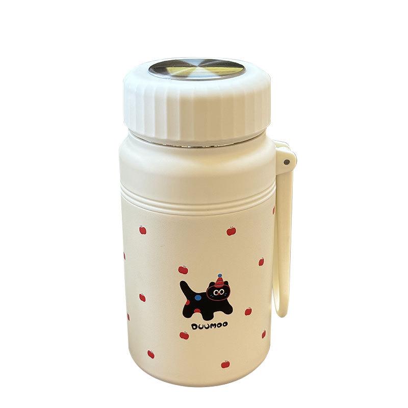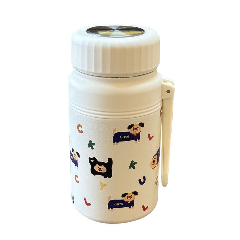 Termo simple de acero inoxidable de gran capacidad y alto valor de color con compartimento para té, taza aislante al vacío con diseño de animales de dibujos animados