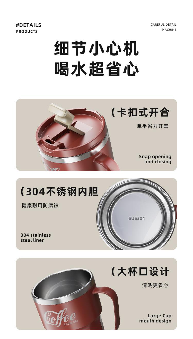 Taza con Tapa Acero Inoxidable 304 Taza de Café para el Hogar para Hombres y Mujeres Oficina Taza de Té de Aspecto Elegante Vaso de Agua Universal