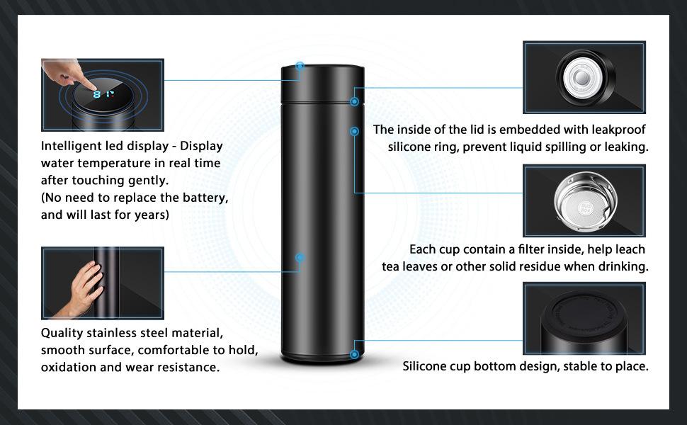 Termo con pantalla LED inteligente 304, taza de temperatura, portátil, para coche, oficina, regalo, logotipo