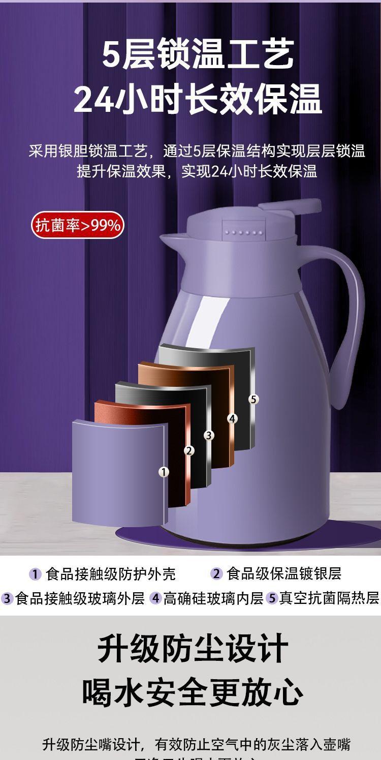 Hervidor de aislamiento térmico, hervidor de aislamiento térmico doméstico, nuevo termo de gran capacidad, hervidor de agua caliente con revestimiento de vidrio, botella de té de oficina