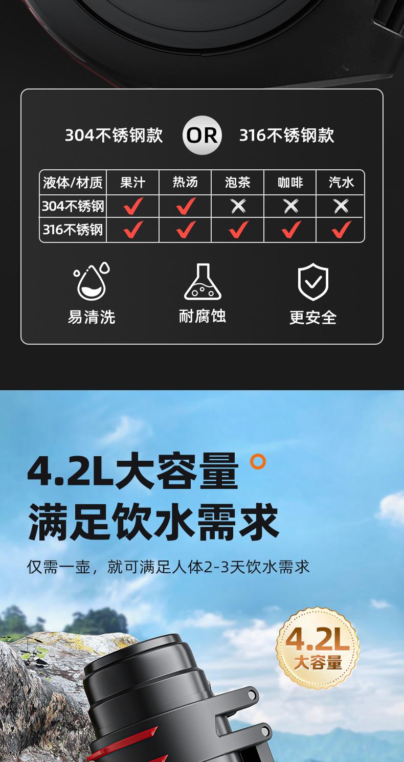 Termo de Acero Inoxidable 316 Hervidor de Agua Hervidor de Agua Taza Termo de Gran Capacidad Portátil para Viaje para Hombre para Exterior para Coche Taza para Agua Fría