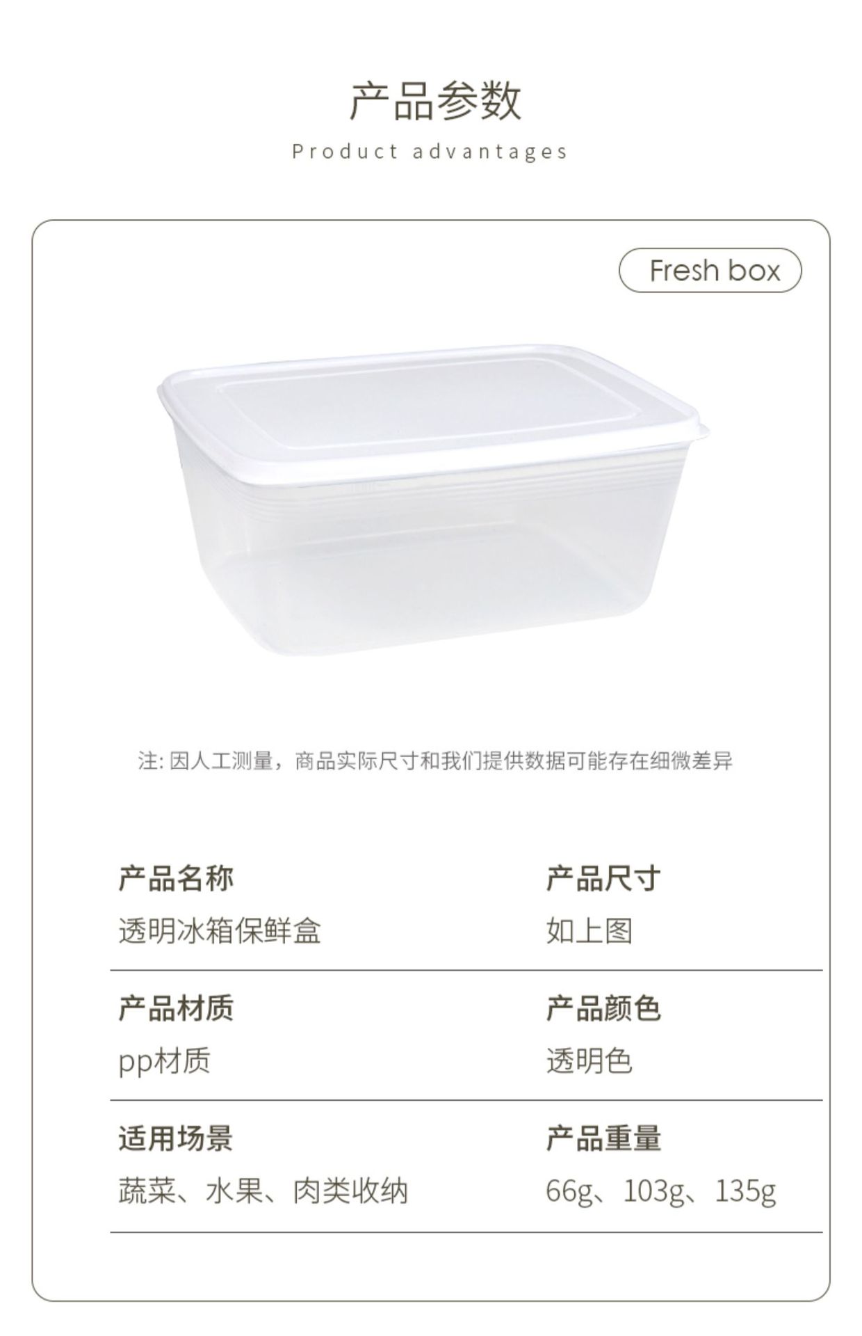 Caja de conservación de alimentos frescos para cocina, refrigerador de grado alimenticio, caja de almacenamiento especial de gran capacidad, caja de plástico rectangular sellada con tapa