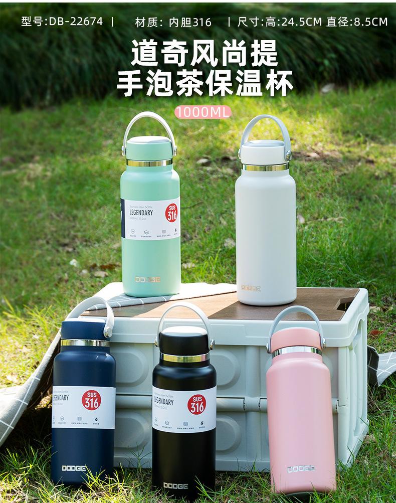 Hildodge taza de té de gran capacidad para exteriores, hogar, oficina, portátil, portátil, para estudiantes, botella de agua deportiva