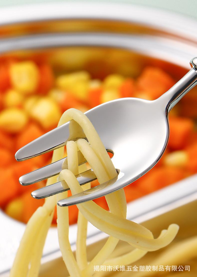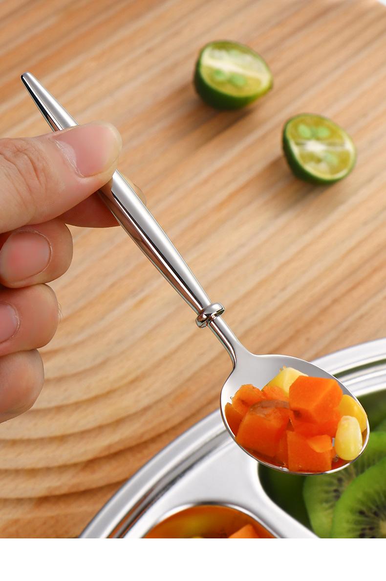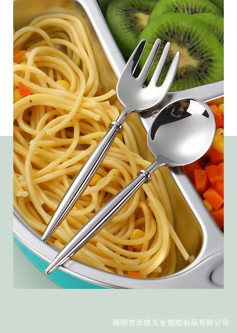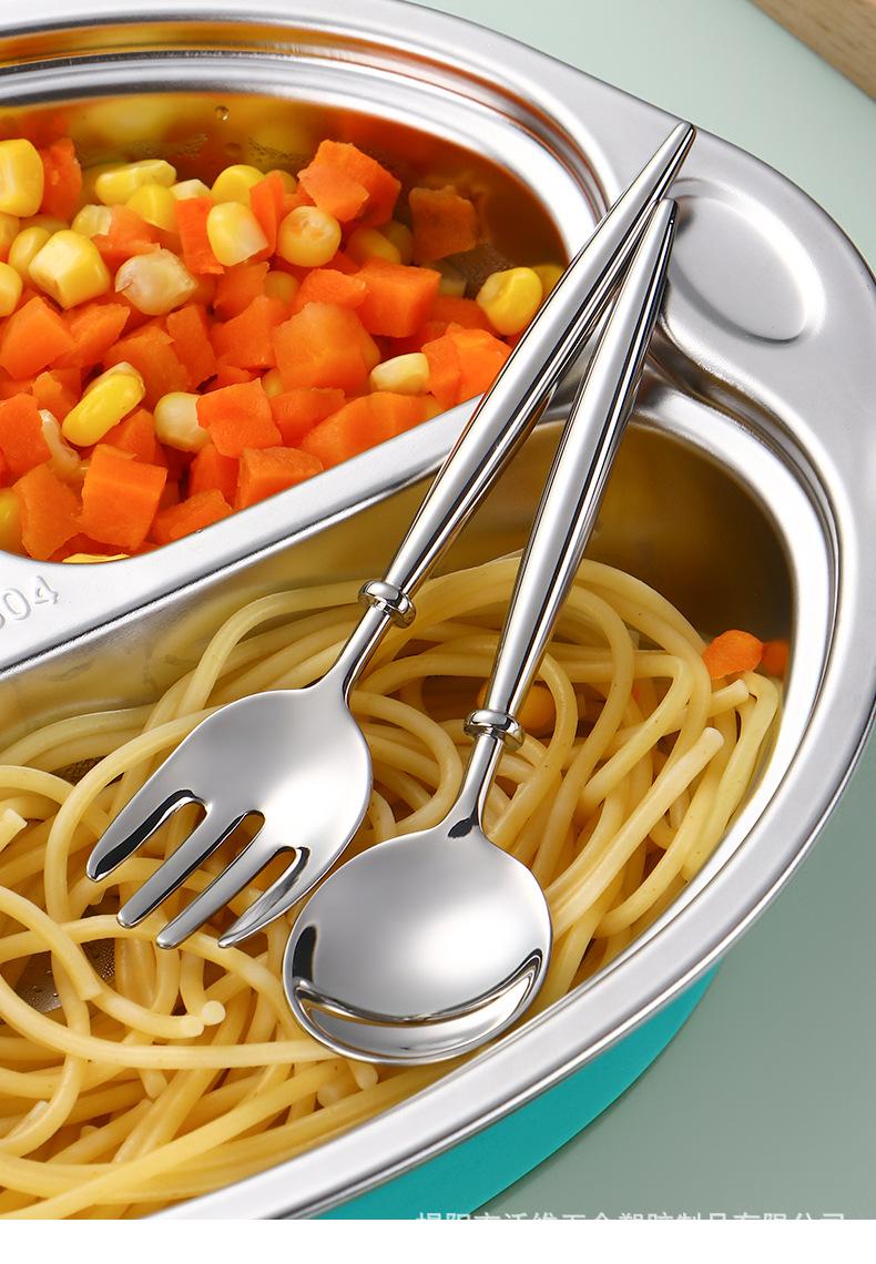 Tenedor y cuchara de acero inoxidable 304 para niños, juego creativo integrado, cuchara para sopa, vajilla, suplemento alimenticio para bebés, tenedor y cuchara para comer para bebés.