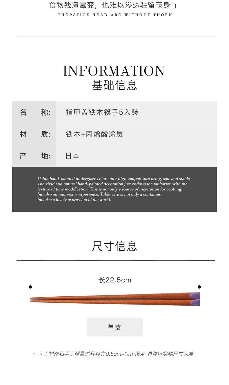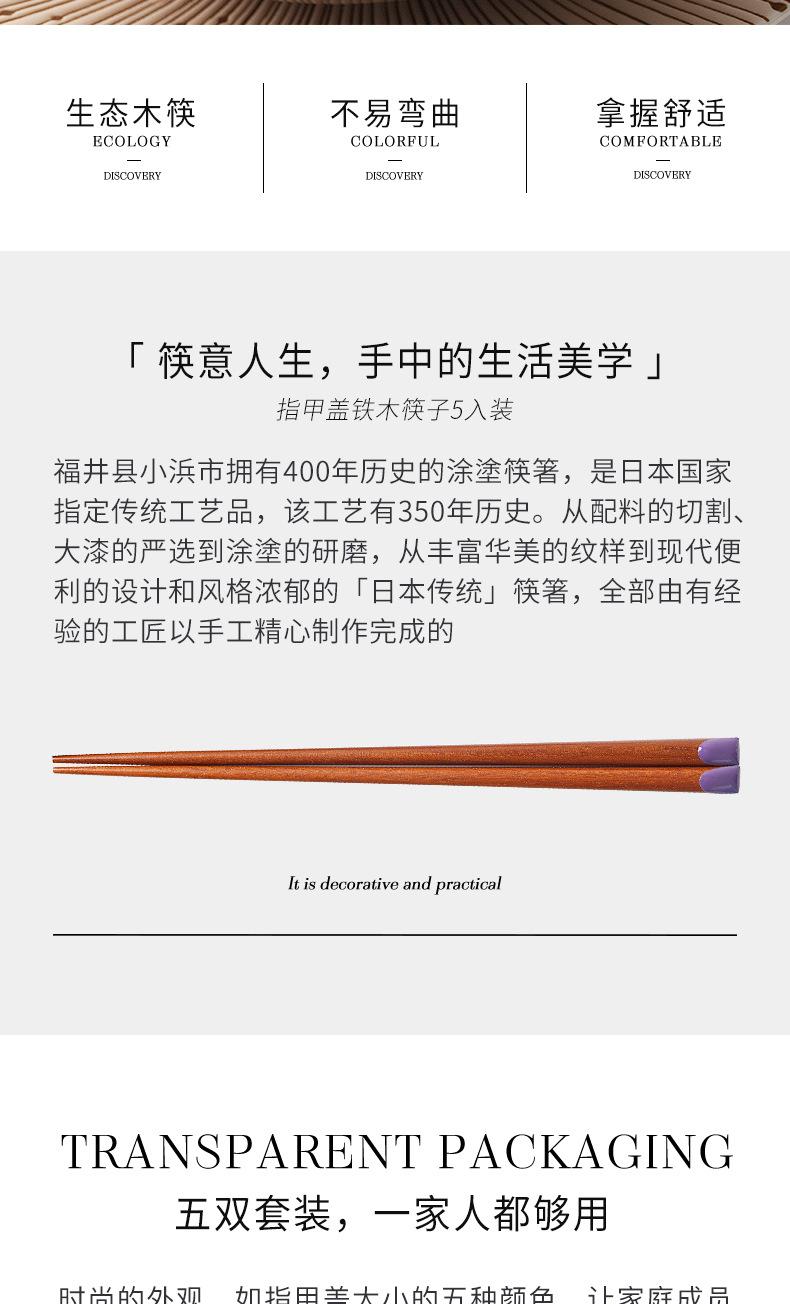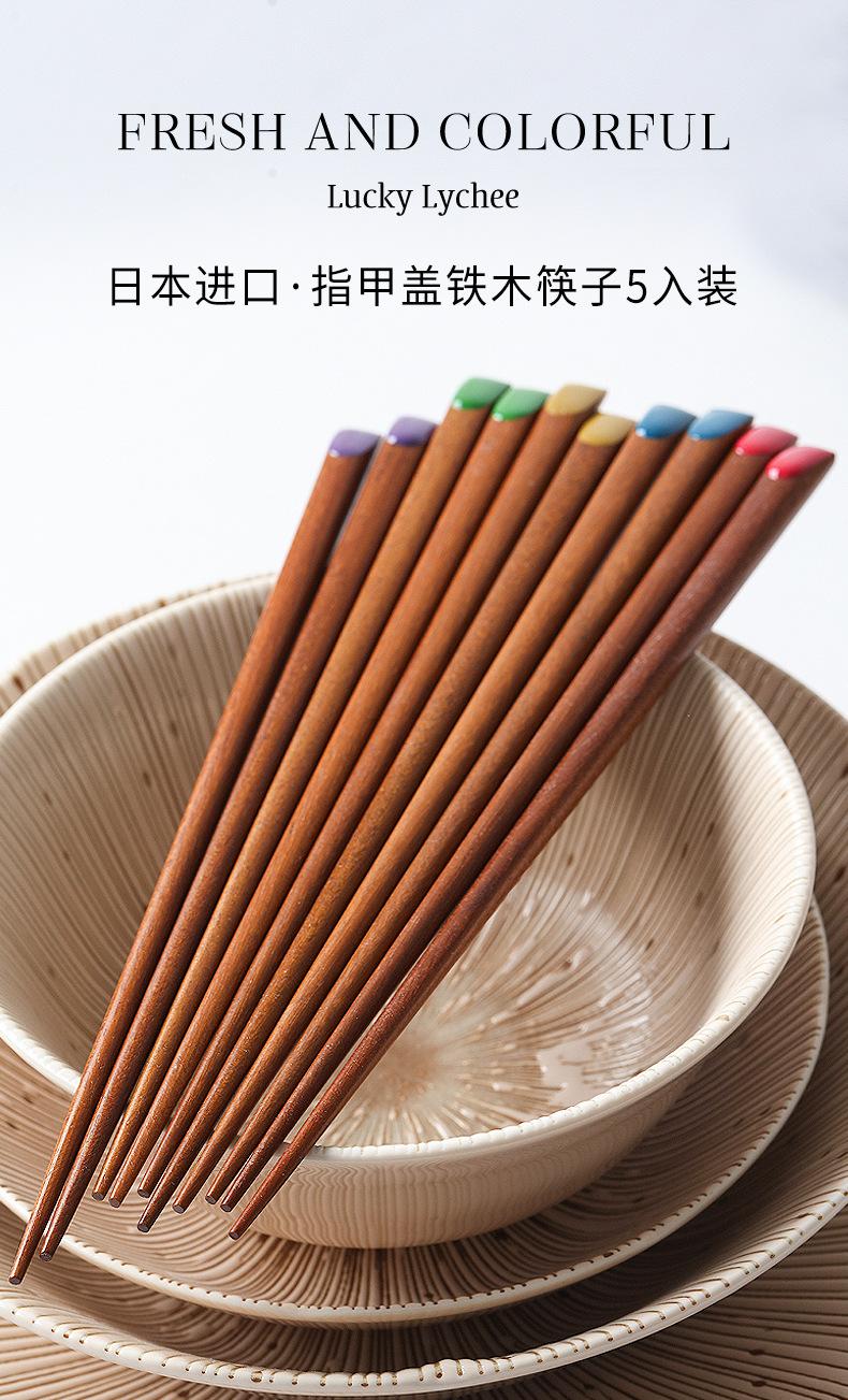 [5 pares] Palillos de madera natural importados de Japón Palillos de madera de hierro antideslizantes, puntiagudos y a prueba de moho de estilo japonés