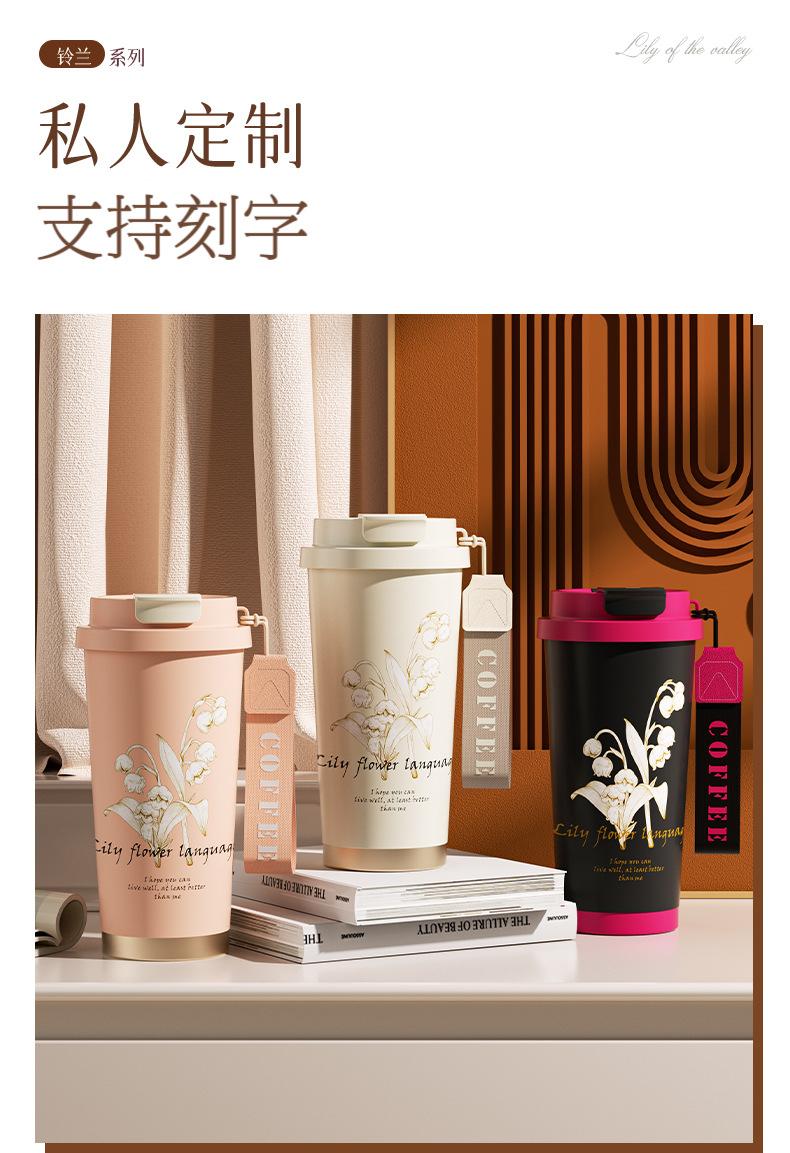 Taza de Café de Acero Inoxidable Lirio de los Valles 316 Vaso Termo de Doble Bebida Vaso de Agua de Alto Valor Hogar Coche con Popote