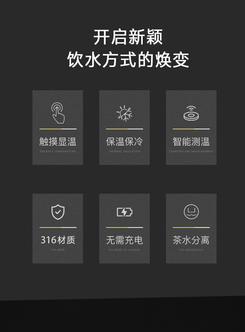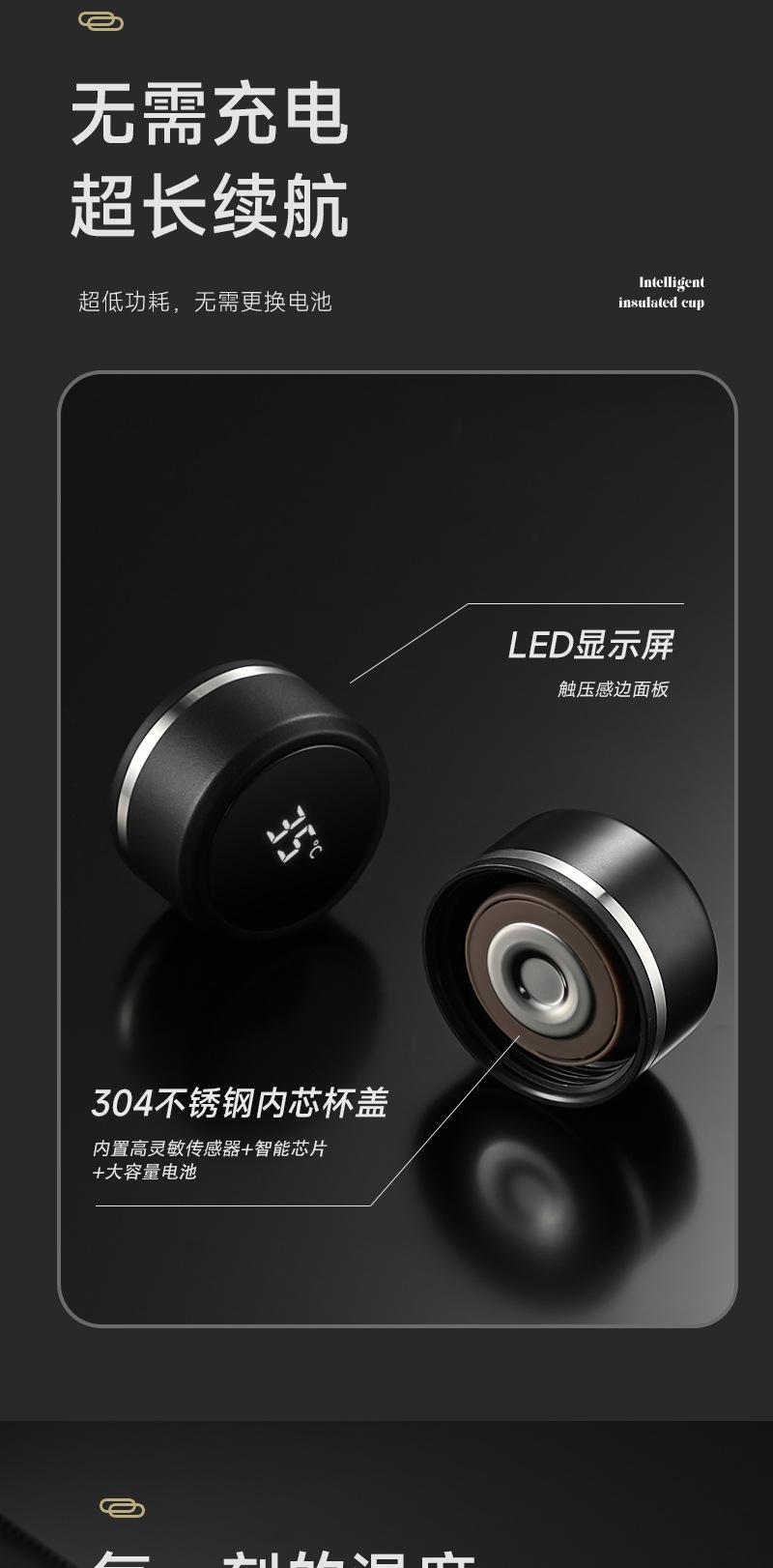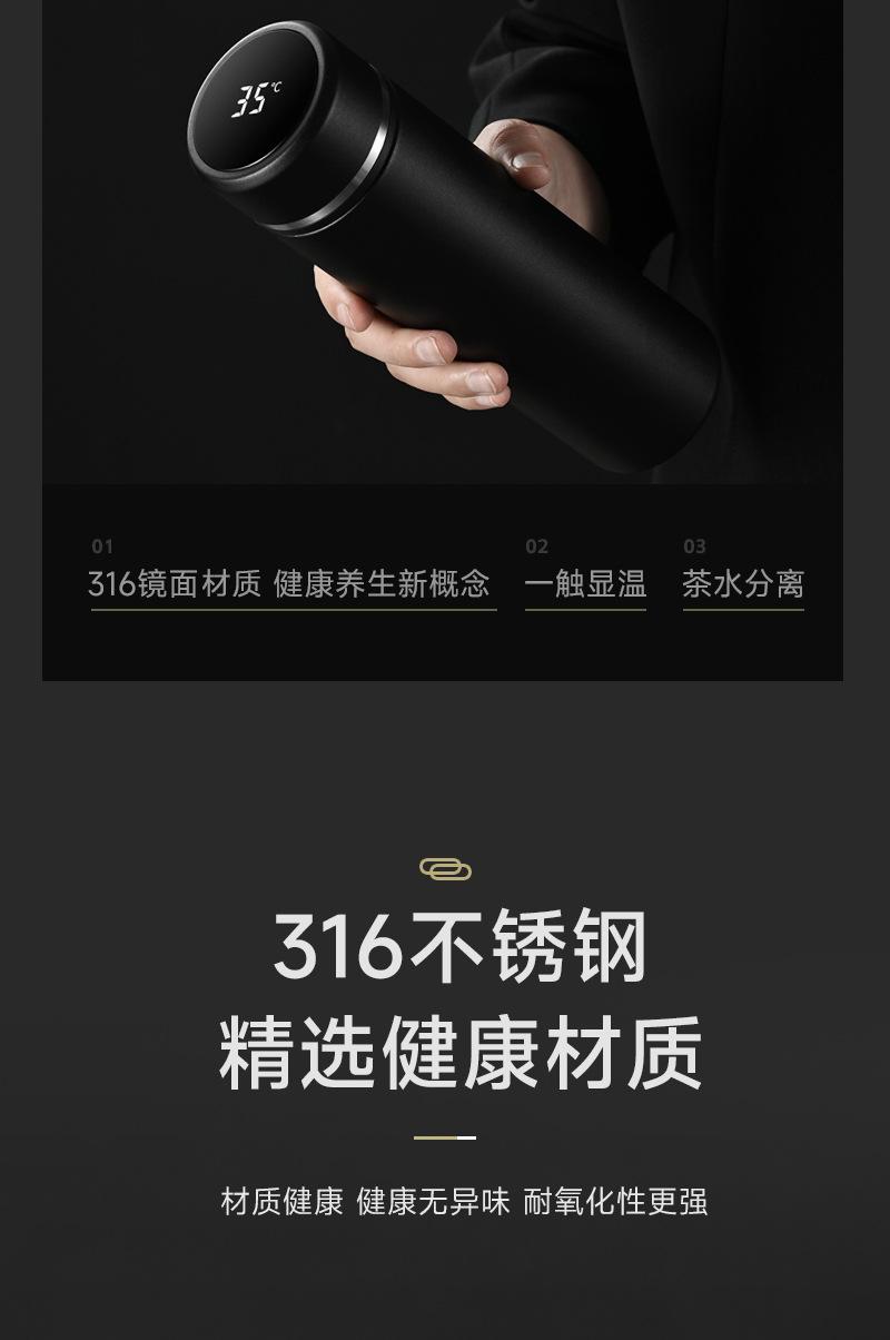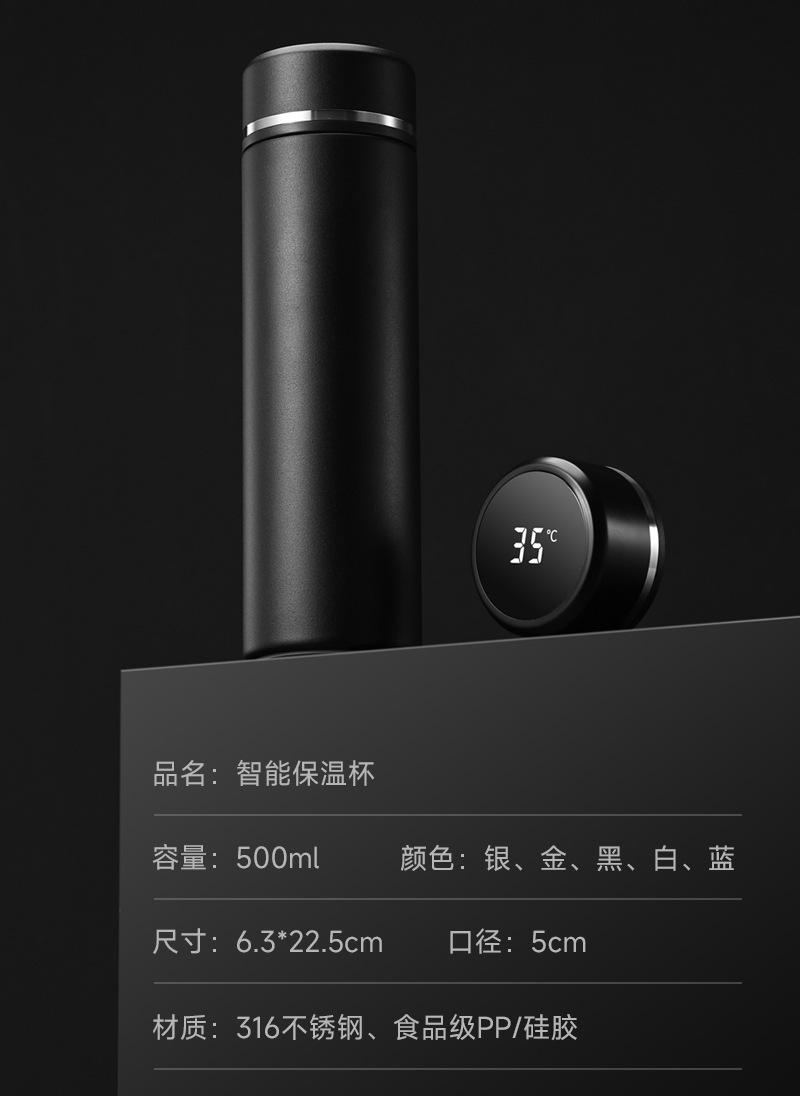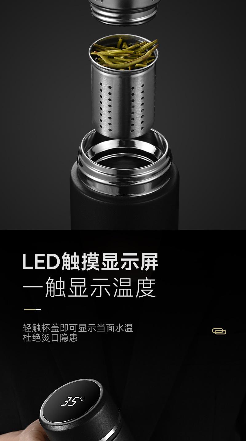 Vaso termo inteligente para negocios, material 316 de grado alimenticio, aislamiento al vacío de doble capa de acero inoxidable