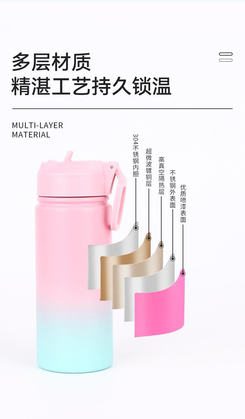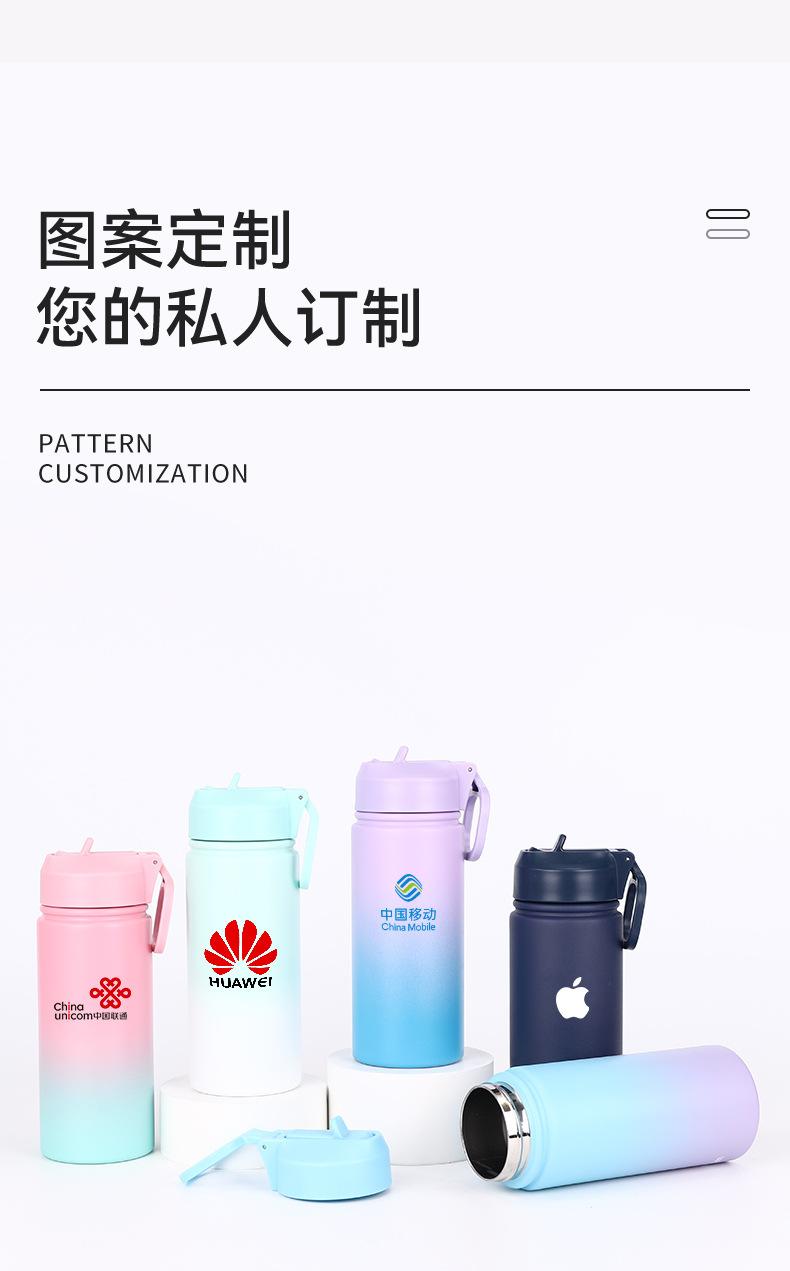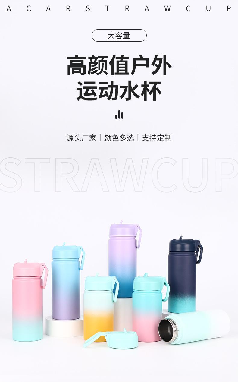 Vaso termo de acero inoxidable transfronterizo, alto valor de color, vaso para agua para deportes al aire libre, color degradado, termo para coche, logotipo personalizado