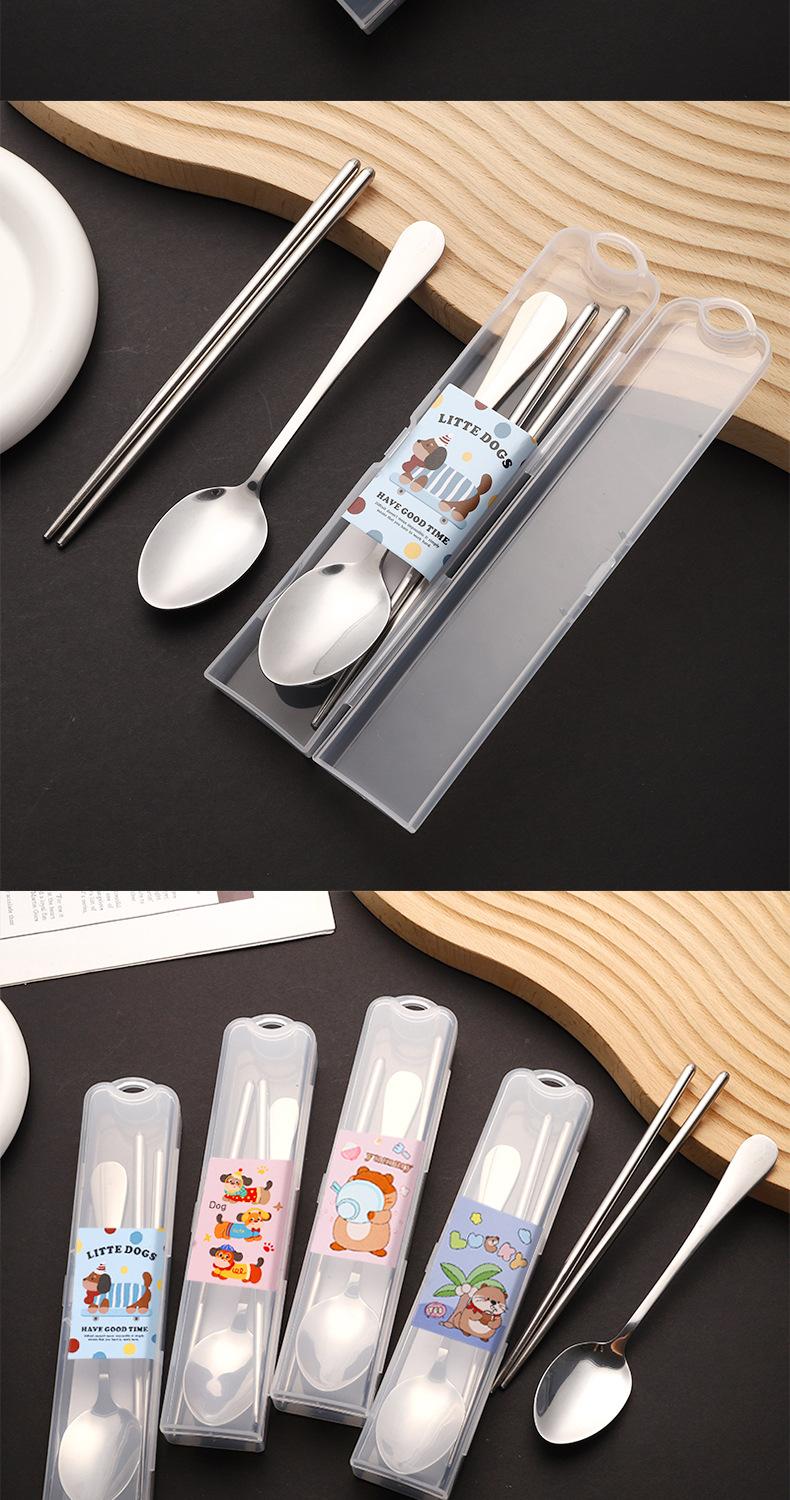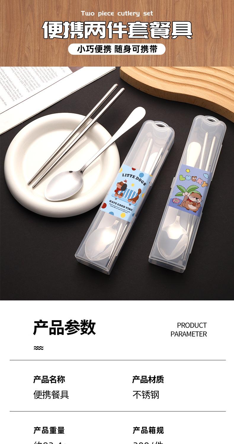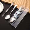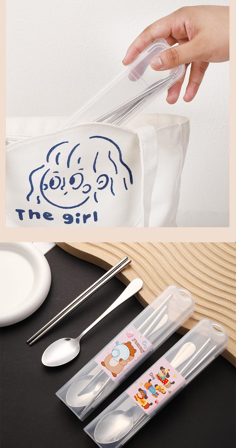 Nuevo Juego de Vajilla de Dibujos Animados Palillos y Cucharas de Acero Inoxidable Juego de Dos Piezas Vajilla Linda y Portátil para Niños que Van a la Escuela