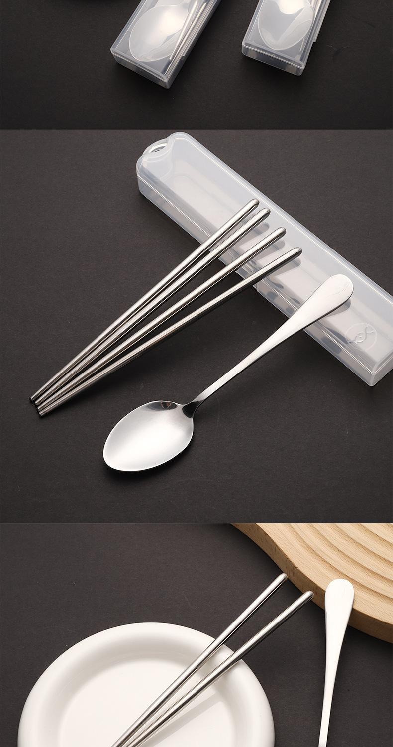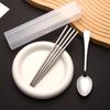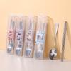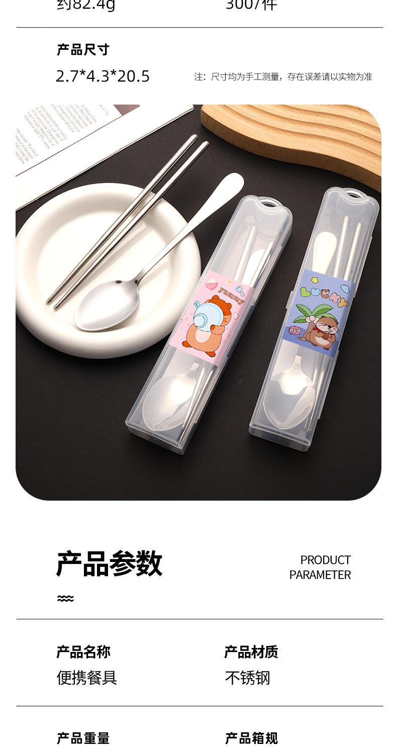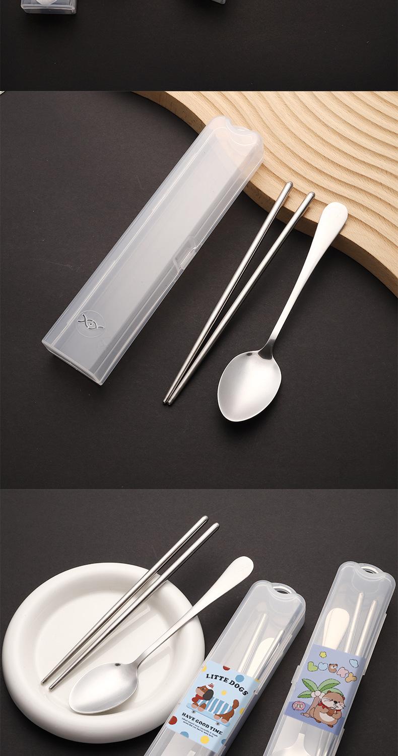 Nuevo Juego de Vajilla de Dibujos Animados Palillos y Cucharas de Acero Inoxidable Juego de Dos Piezas Vajilla Linda y Portátil para Niños que Van a la Escuela