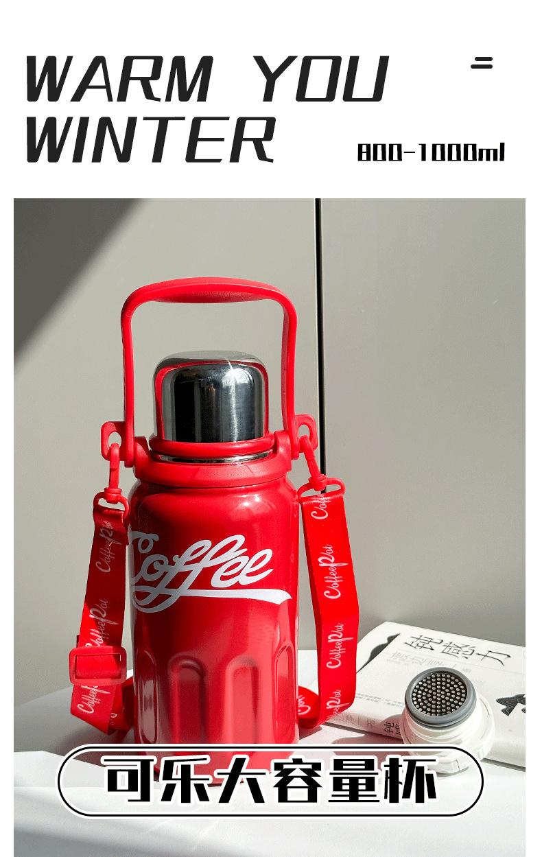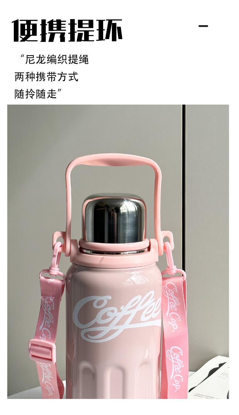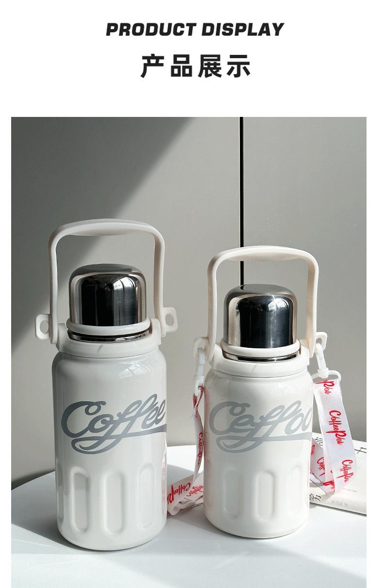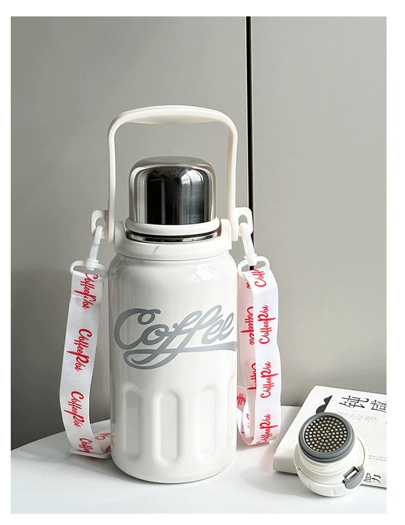 Termo de acero inoxidable 316 de grado alimenticio con correa y asa para exteriores, práctico termo doméstico de gran capacidad.