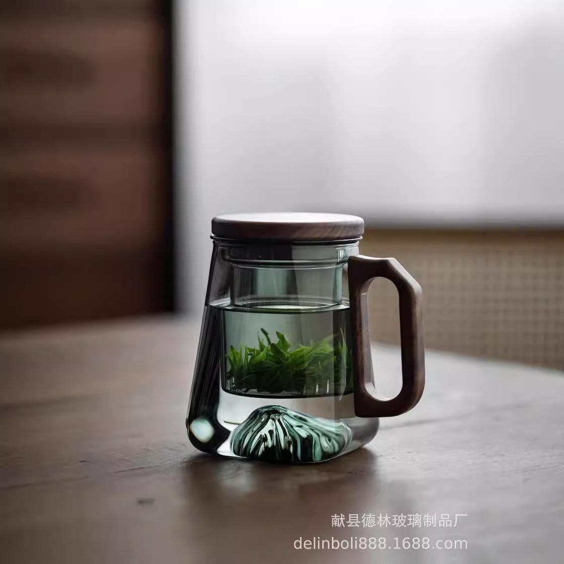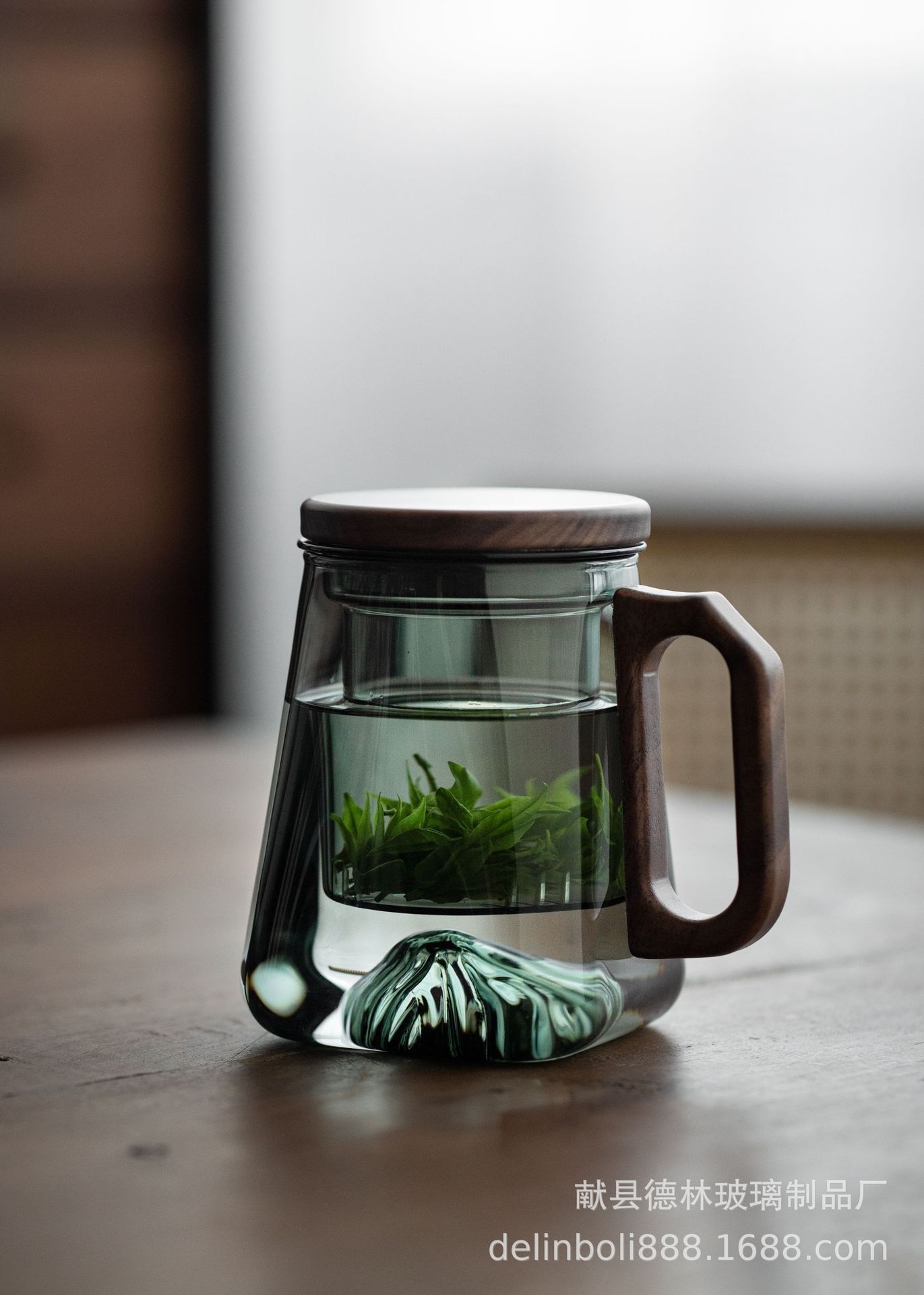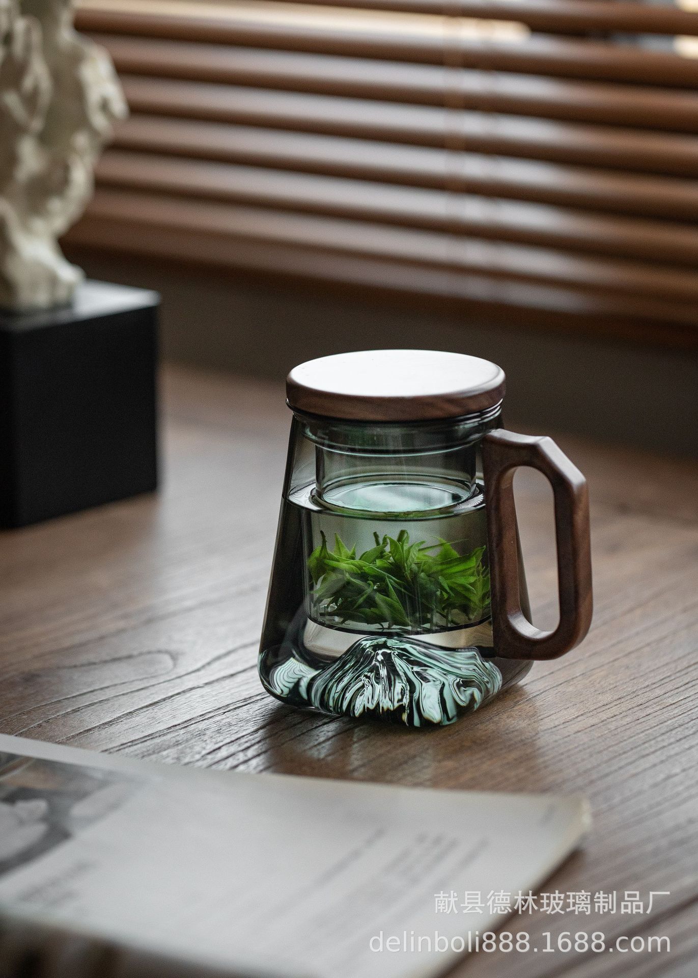 Taza de té de vidrio, taza de separación de té, taza para beber resistente a altas temperaturas para el hogar para hombres y mujeres, taza personal de oficina