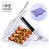 Pinza para barbacoa al aire libre con mango de madera, pinza para barbacoa de acero inoxidable, pinza para red de barbacoa extraíble, parrilla cuadrada antiadherente, red para barbacoa, pescado a la parrilla