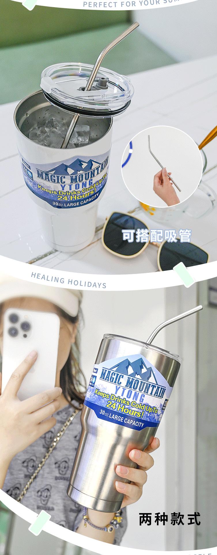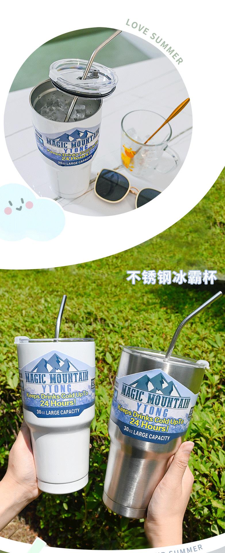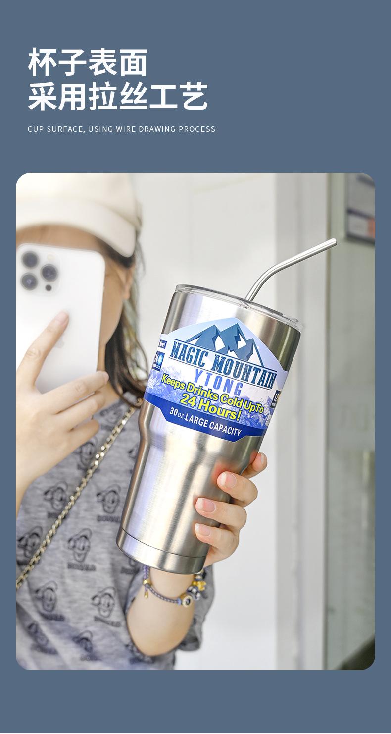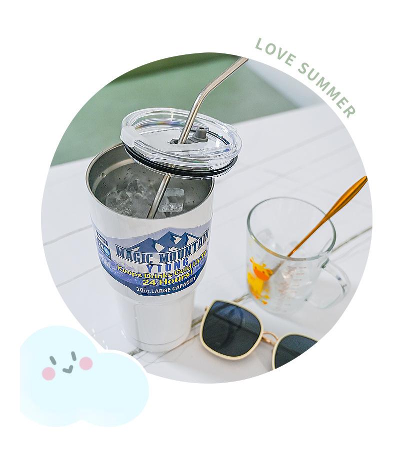 Termo de paja con personalidad para taza de hielo de gran capacidad, material engrosado para automóvil, taza de acero inoxidable 304, taza de café frío