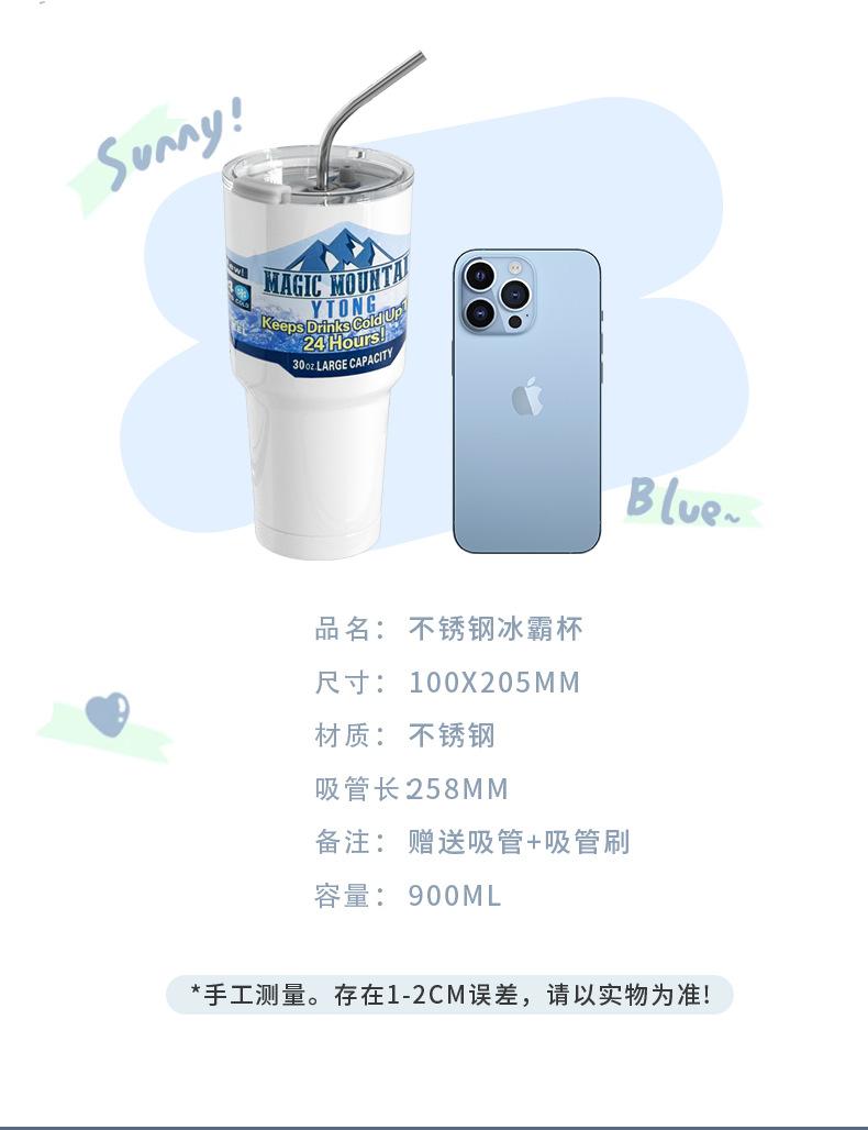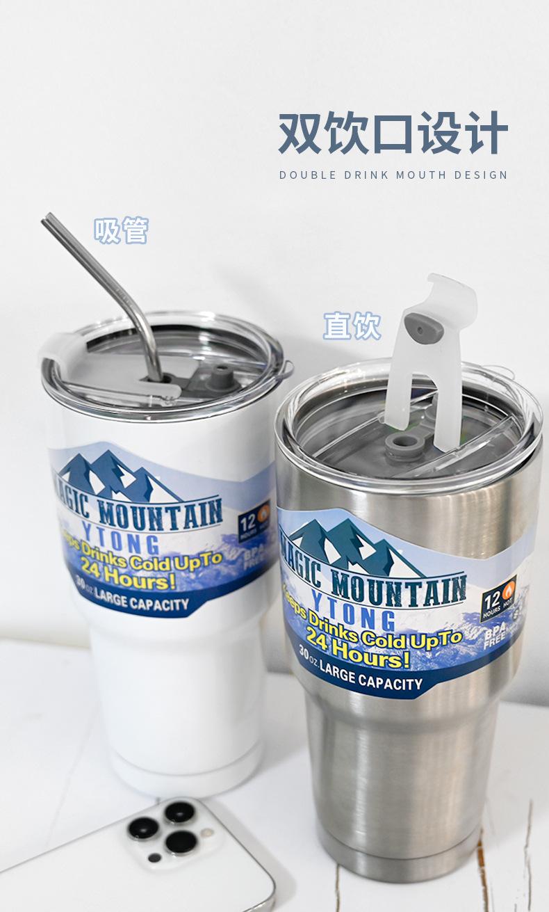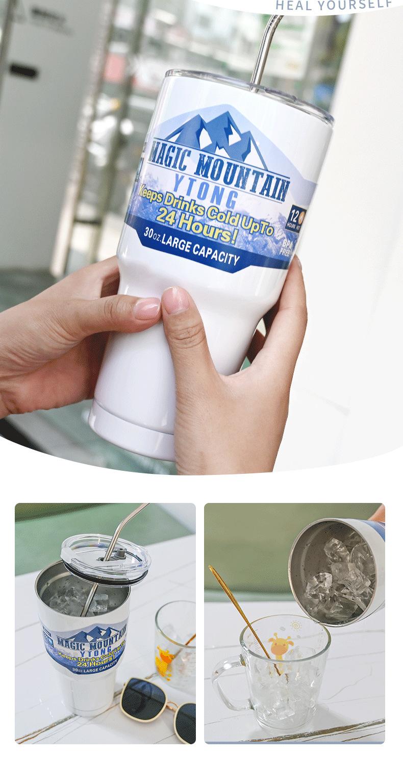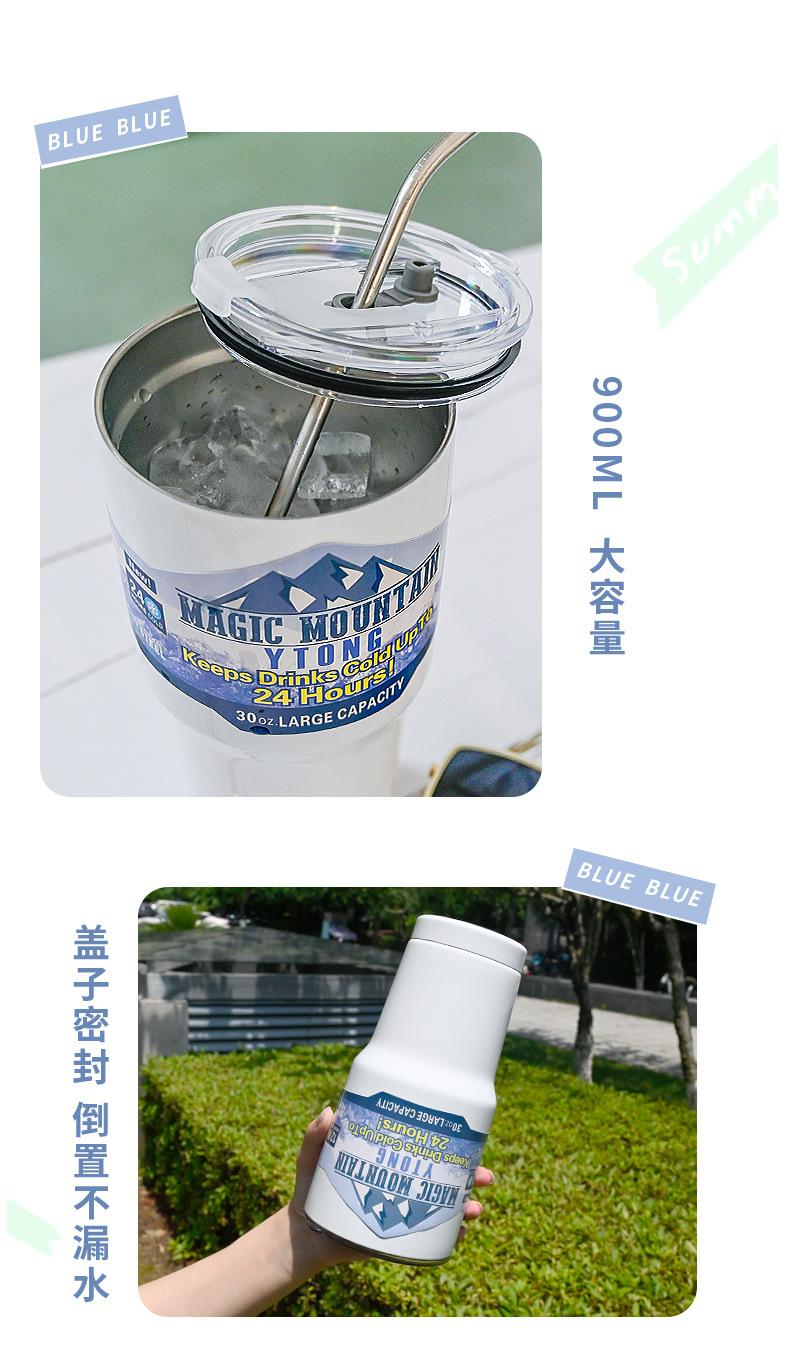 Termo de paja con personalidad para taza de hielo de gran capacidad, material engrosado para automóvil, taza de acero inoxidable 304, taza de café frío