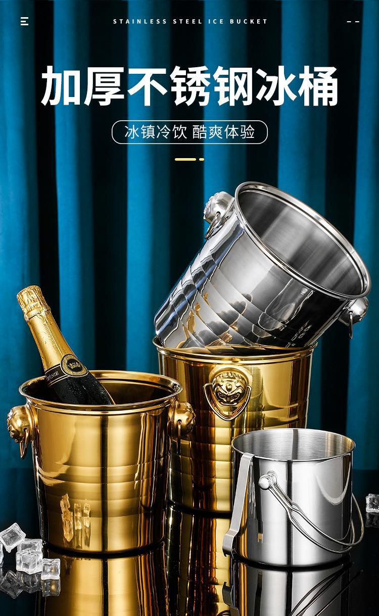 Cubo de hielo de acero inoxidable con asa creativa, dorado, para KTV, champán, pequeño cubo de hielo, cerveza, vino tinto, comercial, para lavarse las manos.