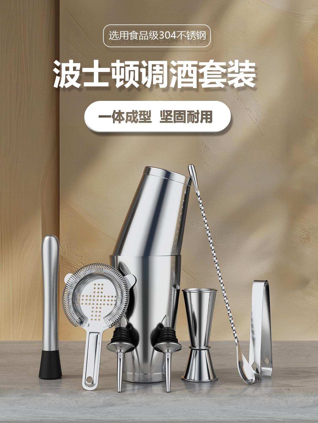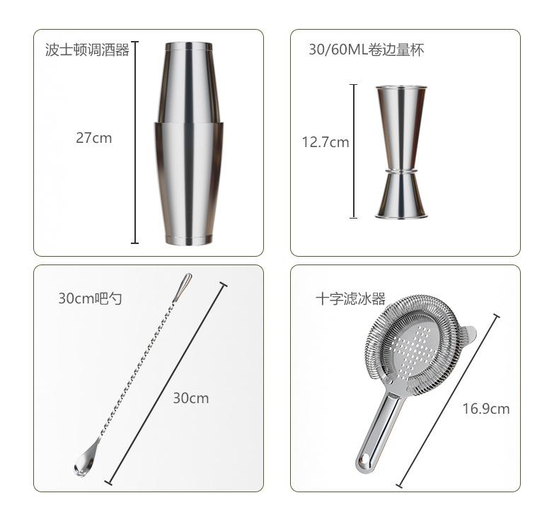 [five-piece set] boston + 30cm bar spoon + cross ice filter + 30/60ml measuring cup + wine pourer