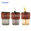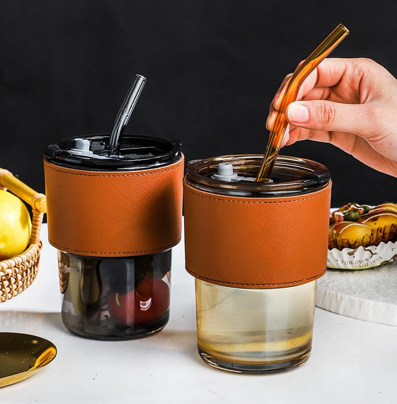 Taza de Bambú Taza de Agua Creativa Taza de Café para Estudiante Celebridad de Internet Taza de Café de Alto Valor Vaso con Pajita de Vidrio Taza con Juego de Cuero