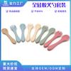 Tenedor y cuchara de silicona para alimentación de bebés, cuchara para alimentos complementarios, entrenamiento para aprender a comer, vajilla para alimentación de bebés.