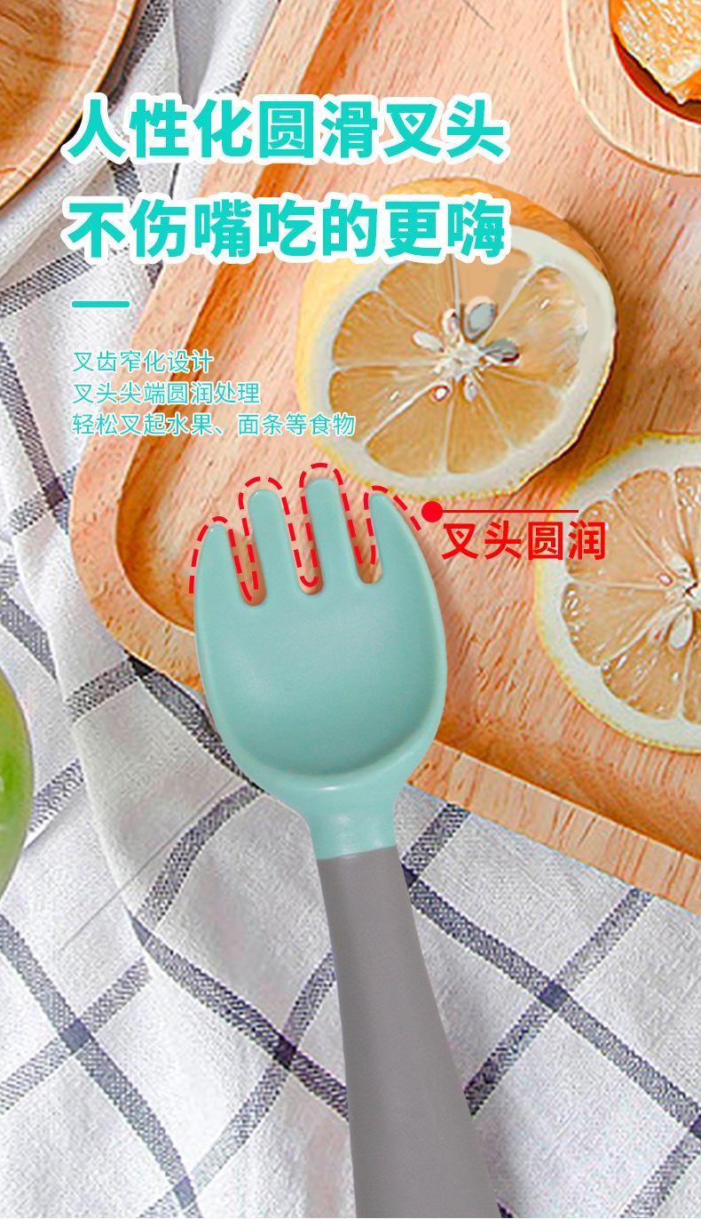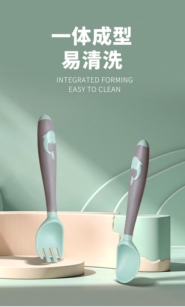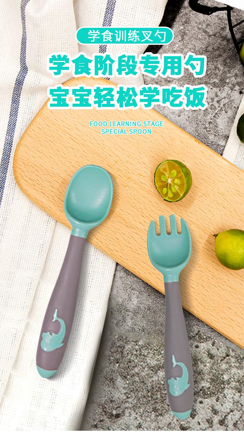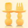 Venta al por mayor, nuevo traje de tenedor y cuchara para bebé de silicona de grado alimenticio, cuchara de entrenamiento flexible para niños, traje complementario