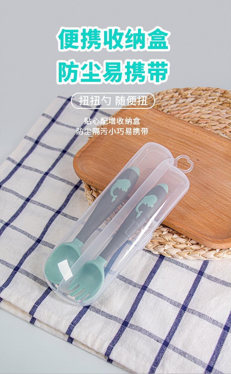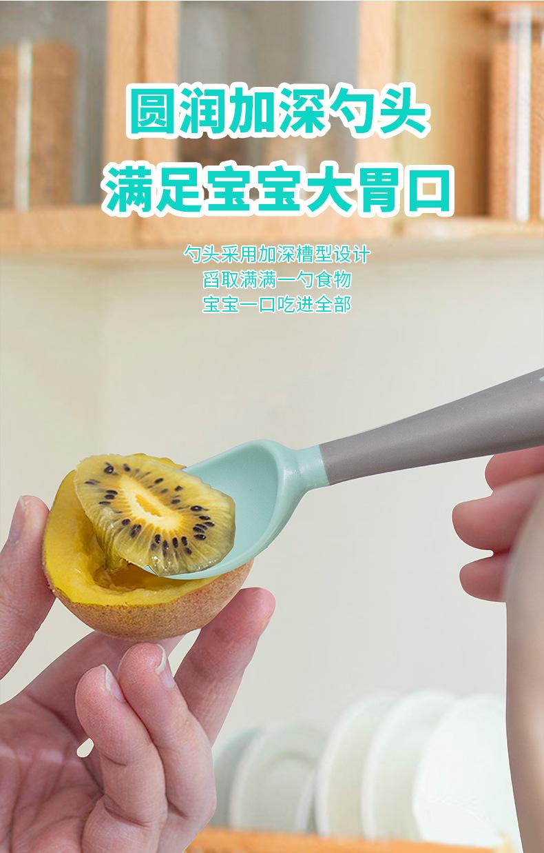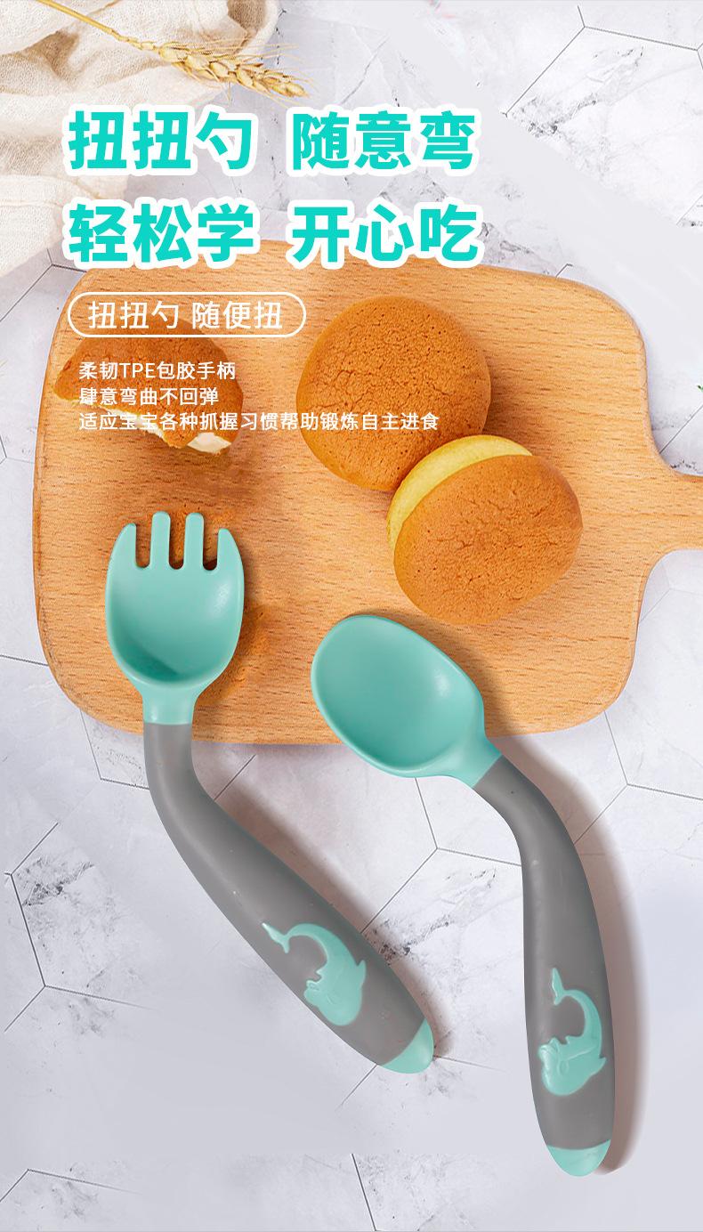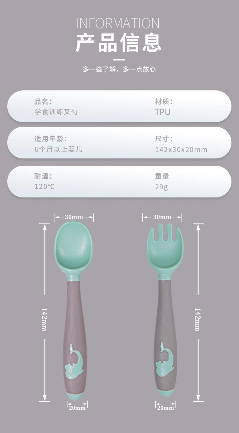 Venta al por mayor, nuevo traje de tenedor y cuchara para bebé de silicona de grado alimenticio, cuchara de entrenamiento flexible para niños, traje complementario