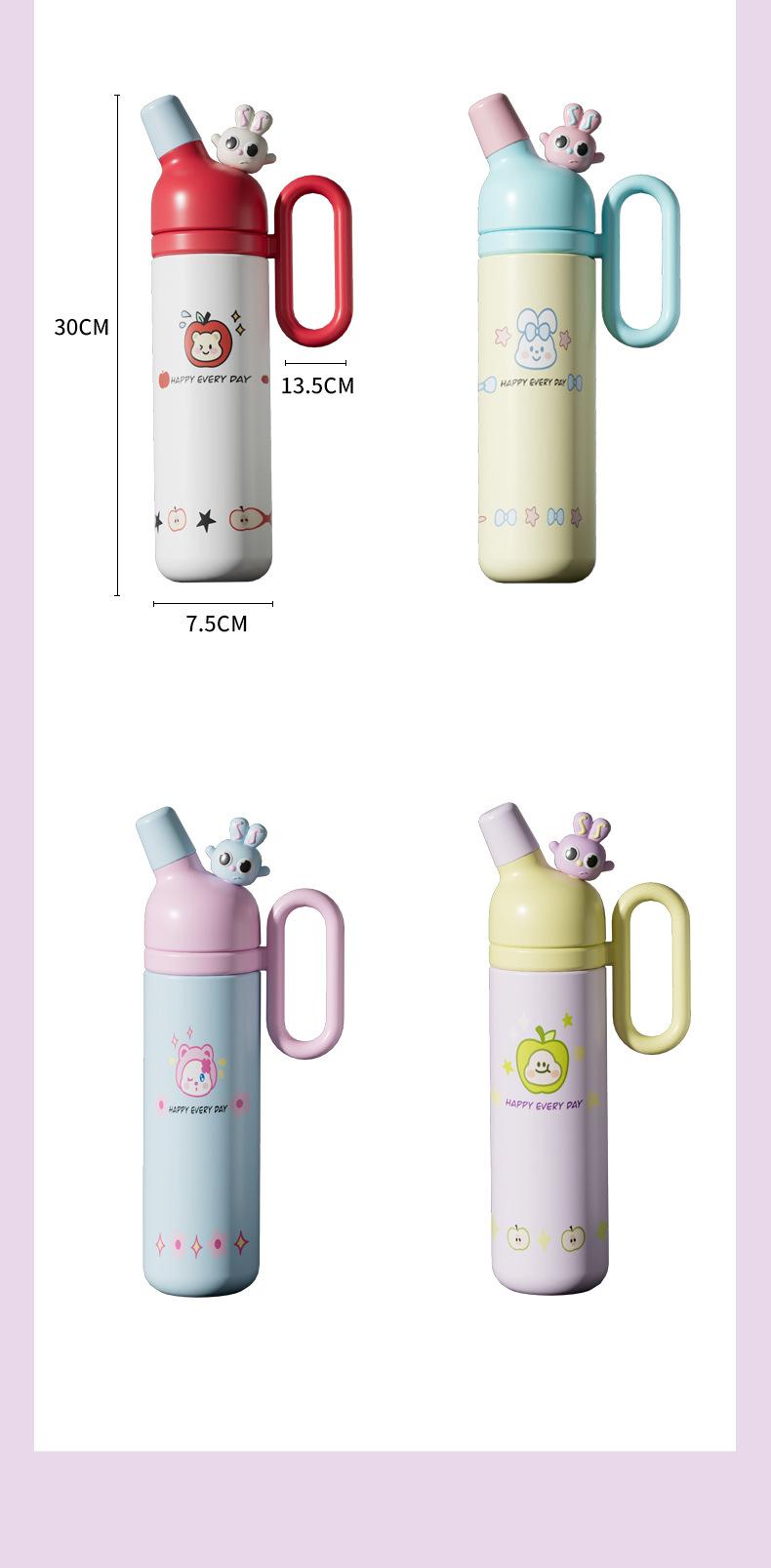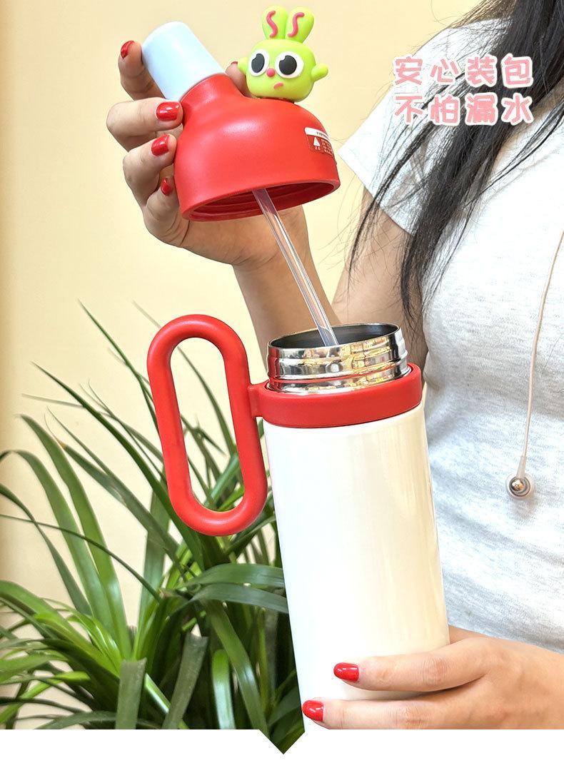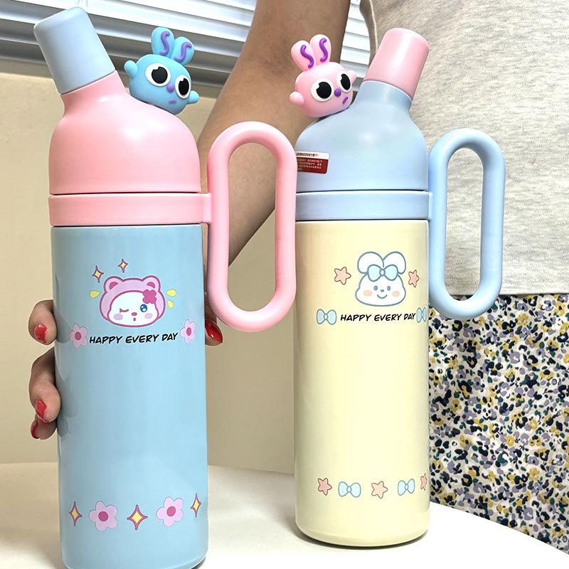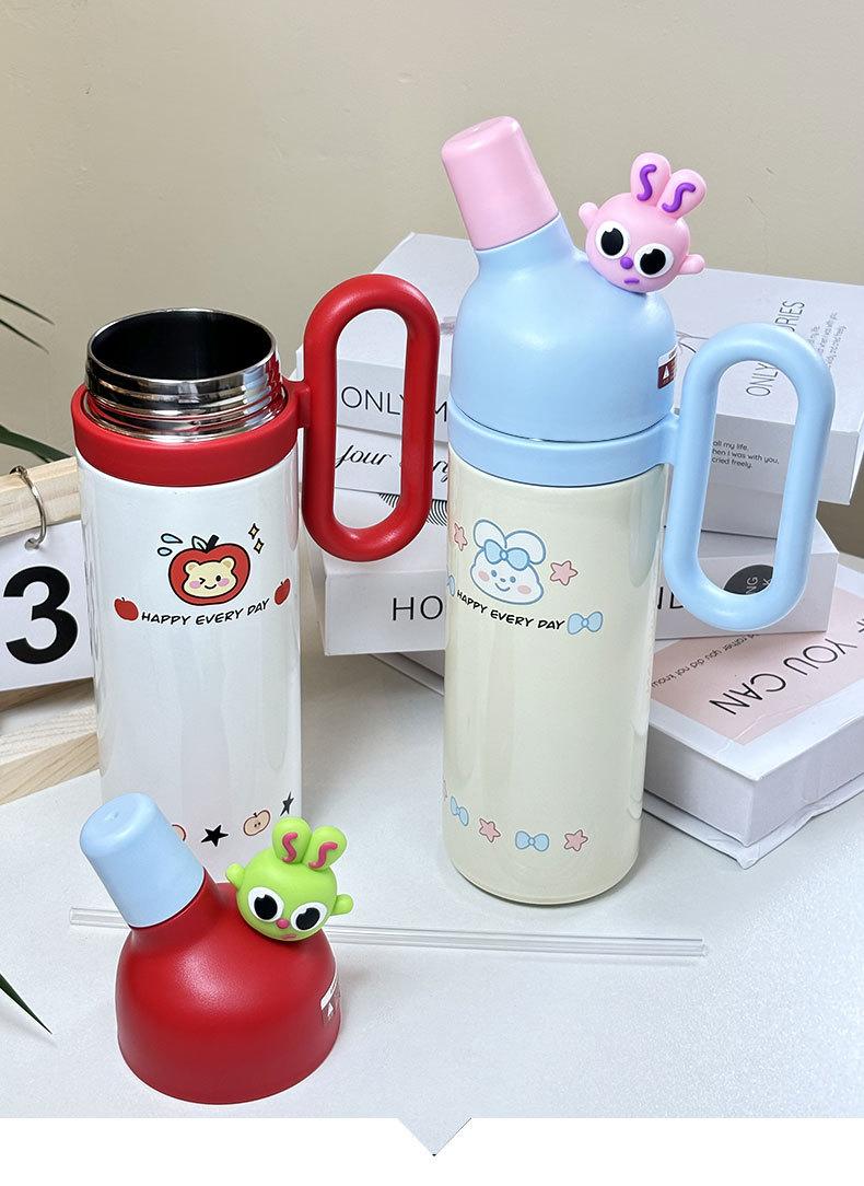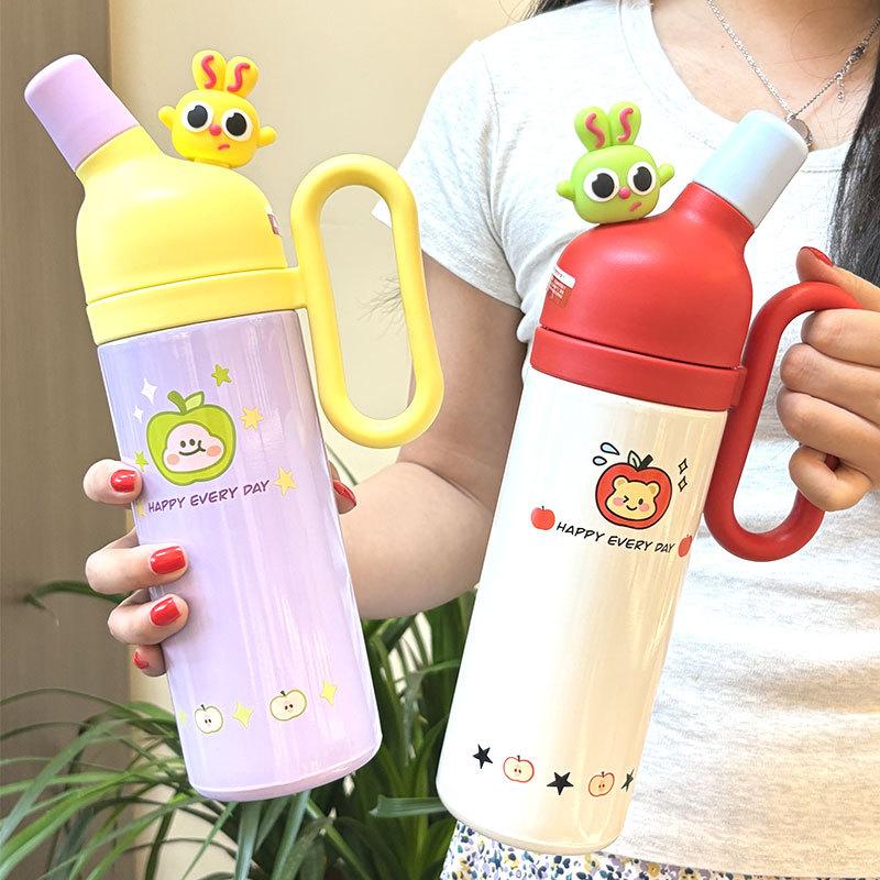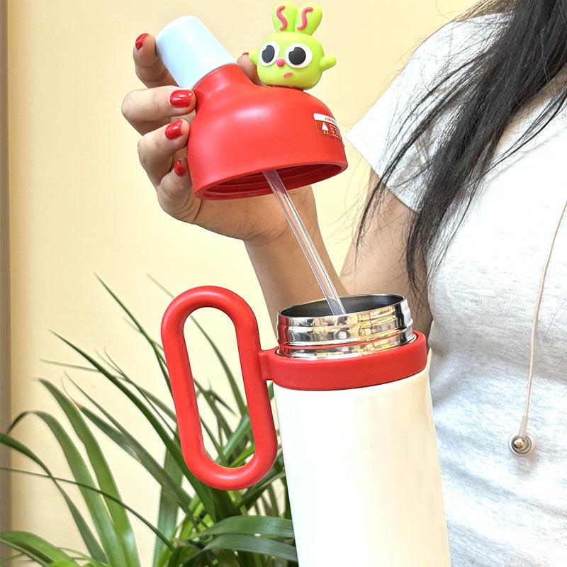 2025 Nueva Taza Termo Dibujos Animados Acero Inoxidable 316 Portátil Vaso de Agua con Asa Lindo Gran Capacidad Vaso con Pajita