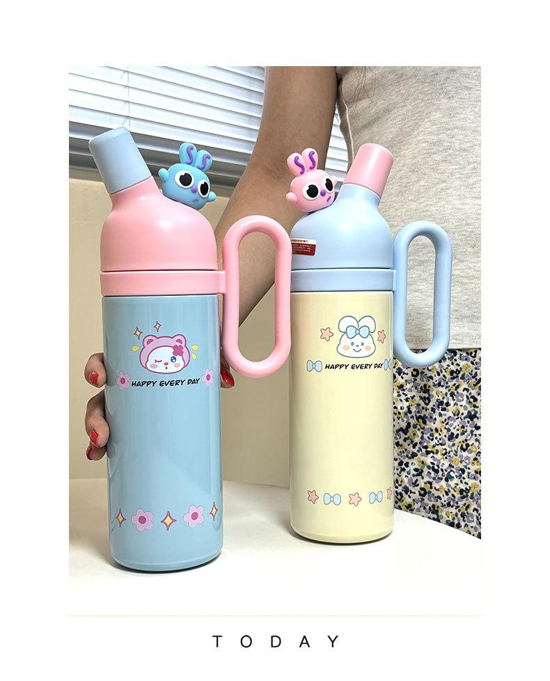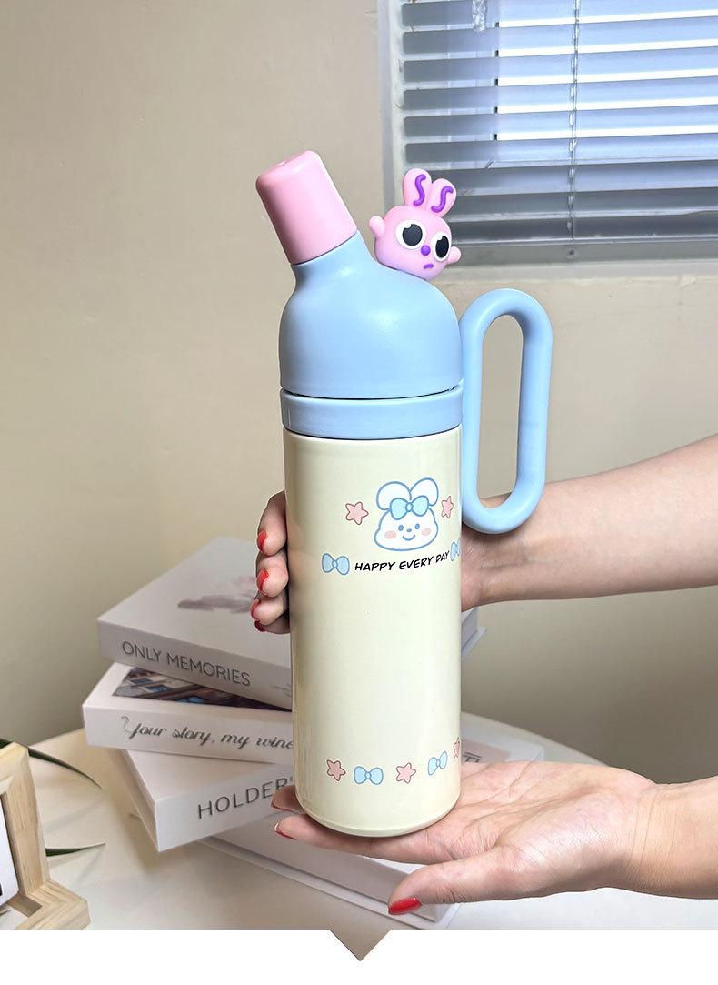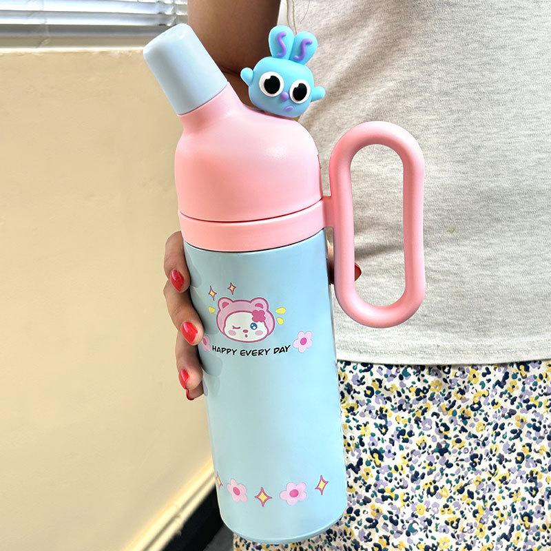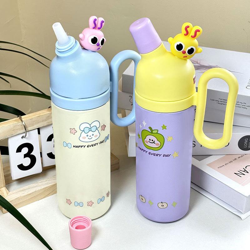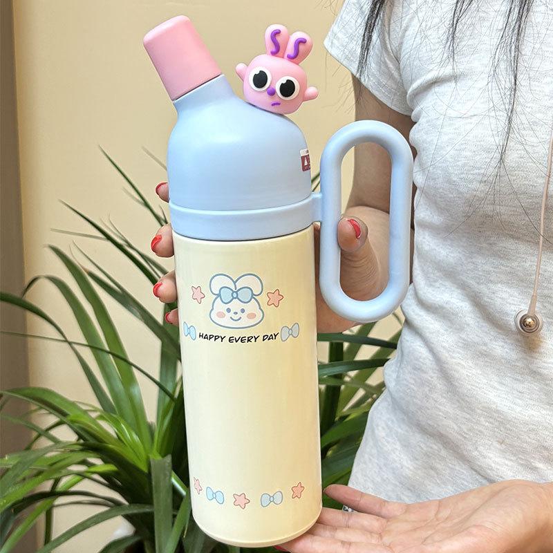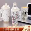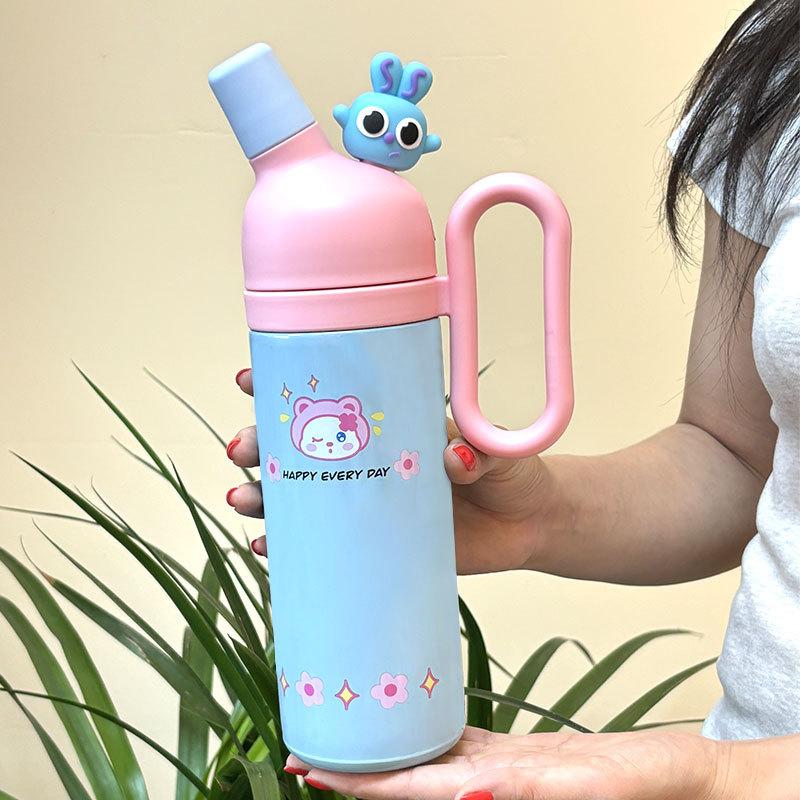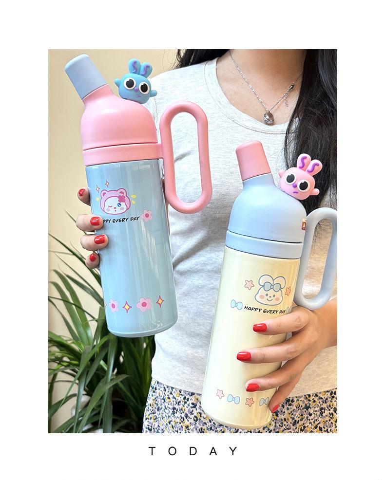 2025 Nueva Taza Termo Dibujos Animados Acero Inoxidable 316 Portátil Vaso de Agua con Asa Lindo Gran Capacidad Vaso con Pajita