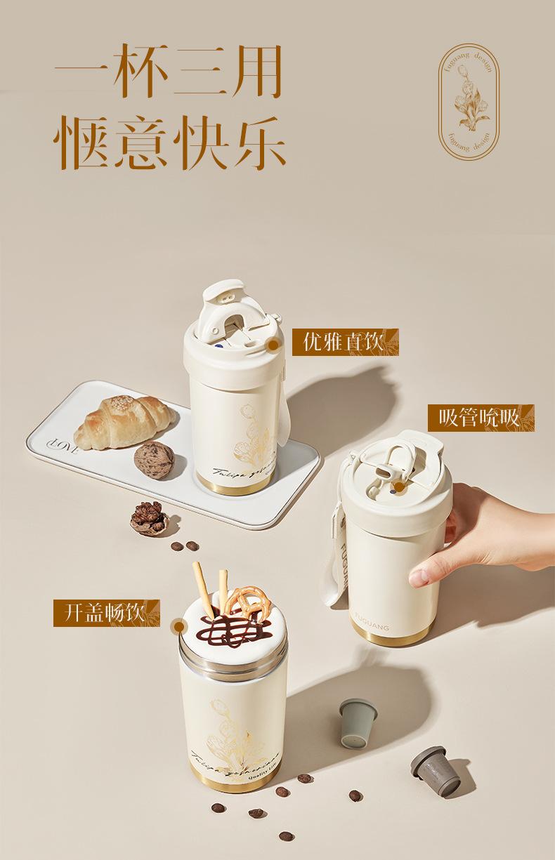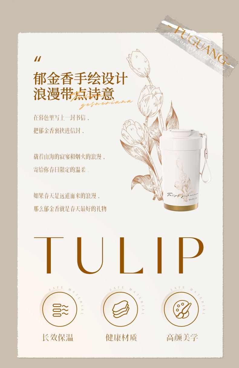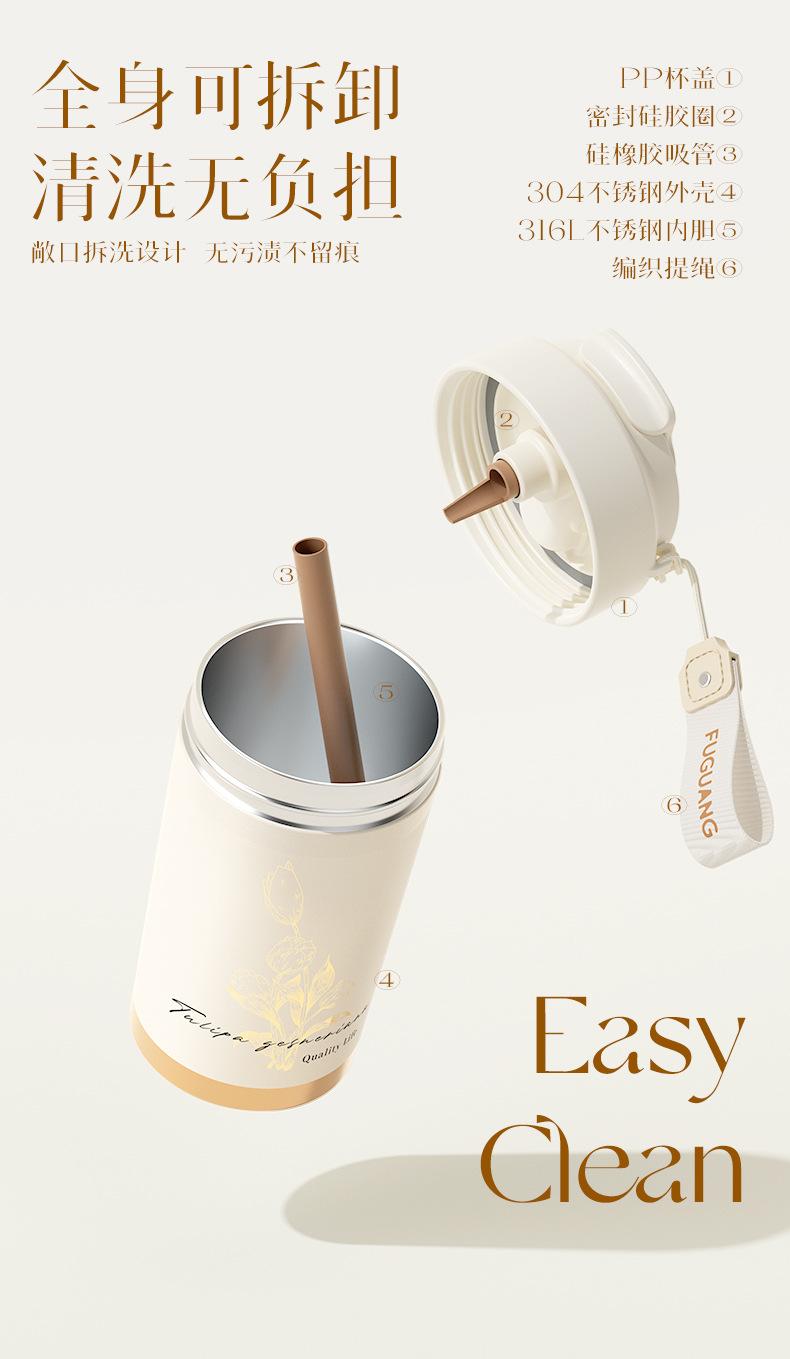 Fuguang Termo Taza de Café Tulipán para Niñas Taza de Aspecto Elegante Portátil con Popote Taza de Agua Personalizada Venta al Mayoreo