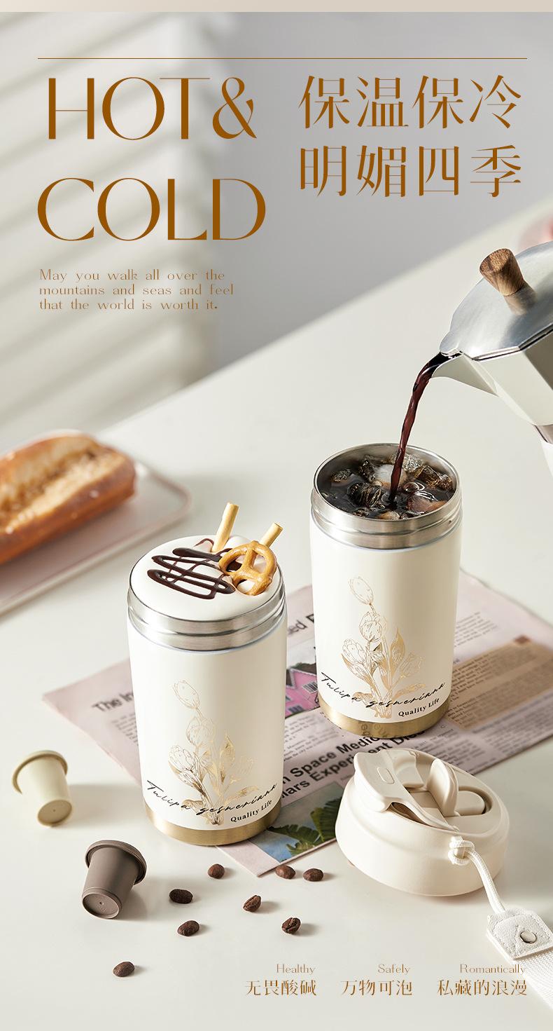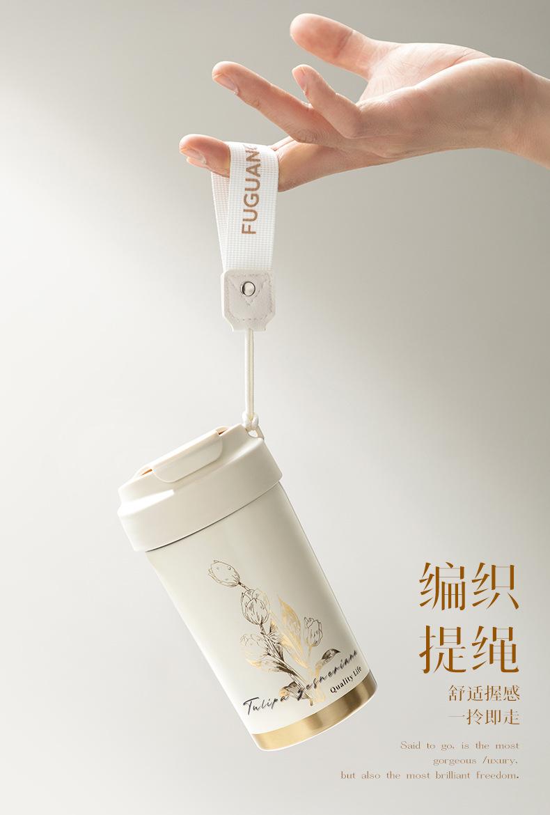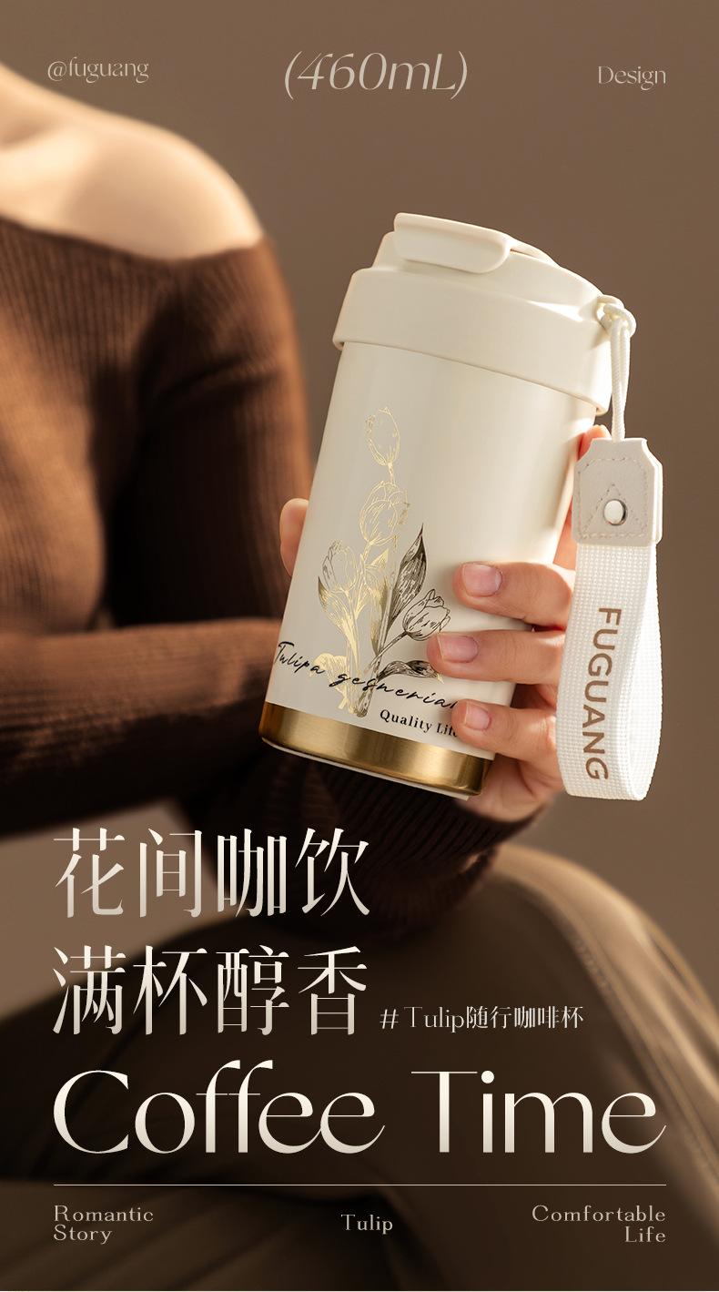 Fuguang Termo Taza de Café Tulipán para Niñas Taza de Aspecto Elegante Portátil con Popote Taza de Agua Personalizada Venta al Mayoreo