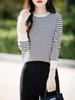 Camisa básica a rayas para mujer, suéter de manga larga para primavera, otoño e invierno, recién llegado, suéter holgado con cuello redondo interior, suéter corto de moda.