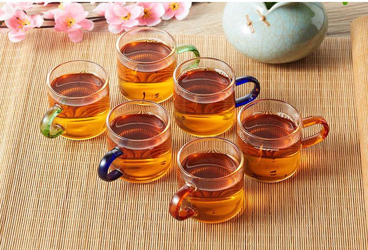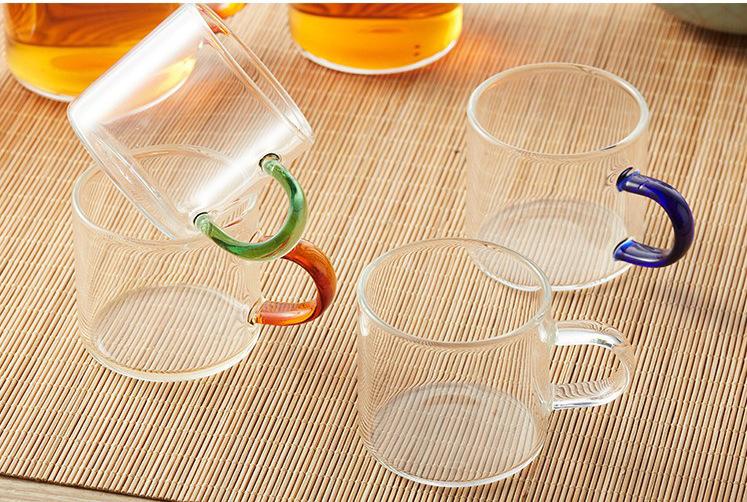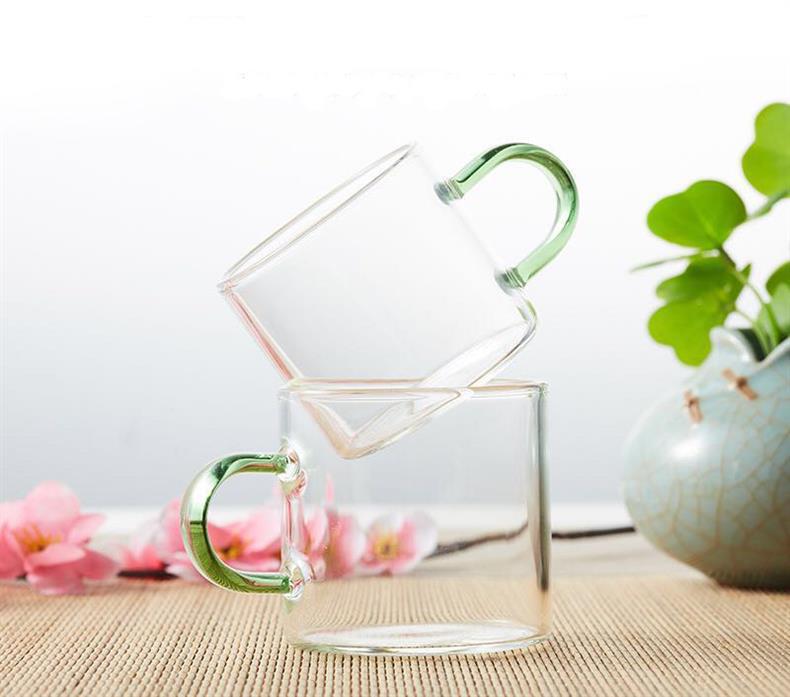 Taza de té de vidrio resistente a altas temperaturas, gruesa, de pequeña capacidad, transparente, para el hogar, con asa, con asa pequeña
