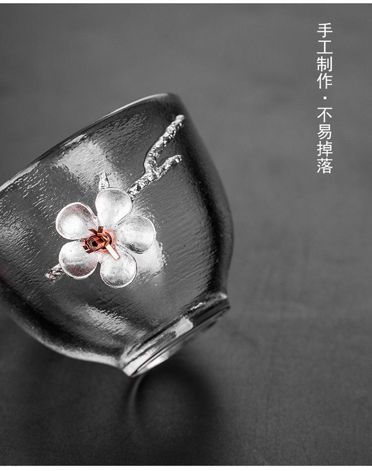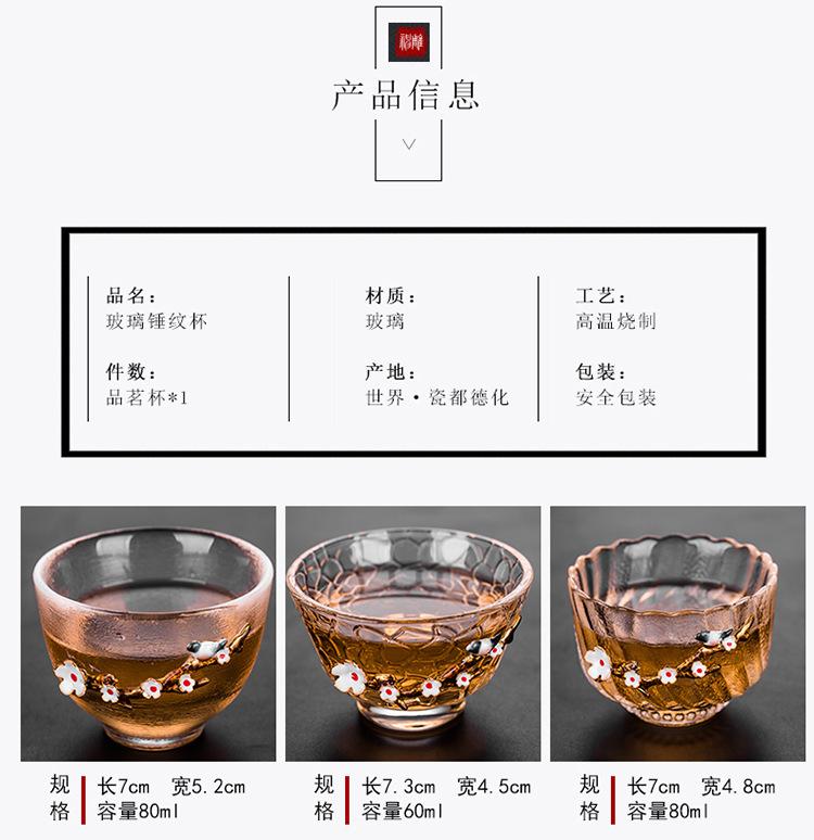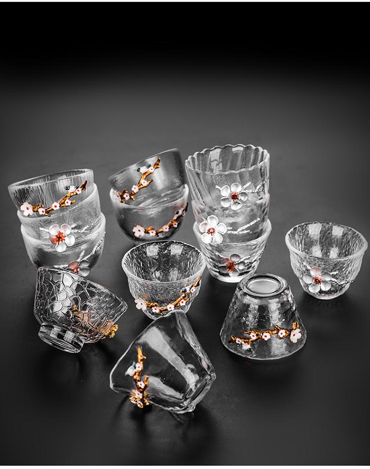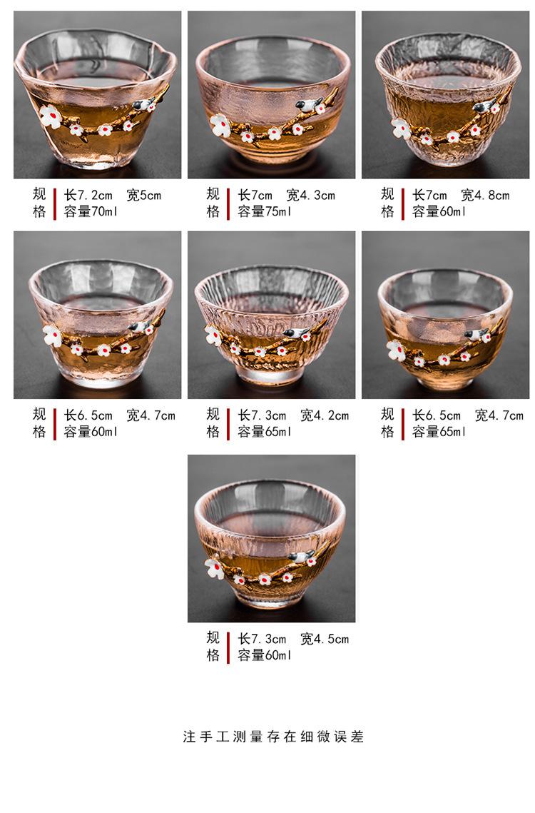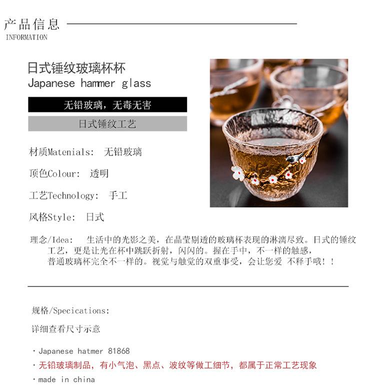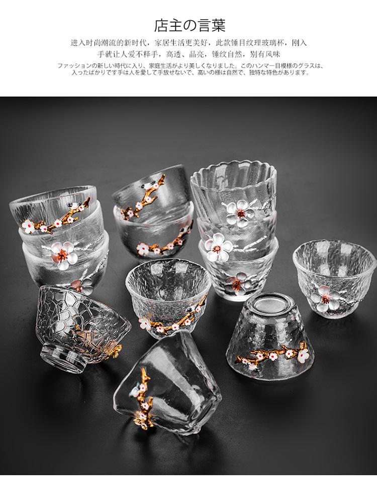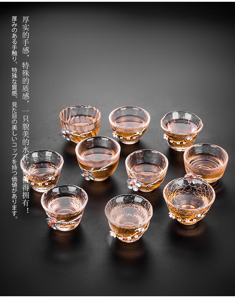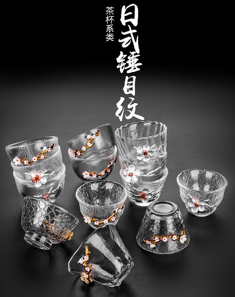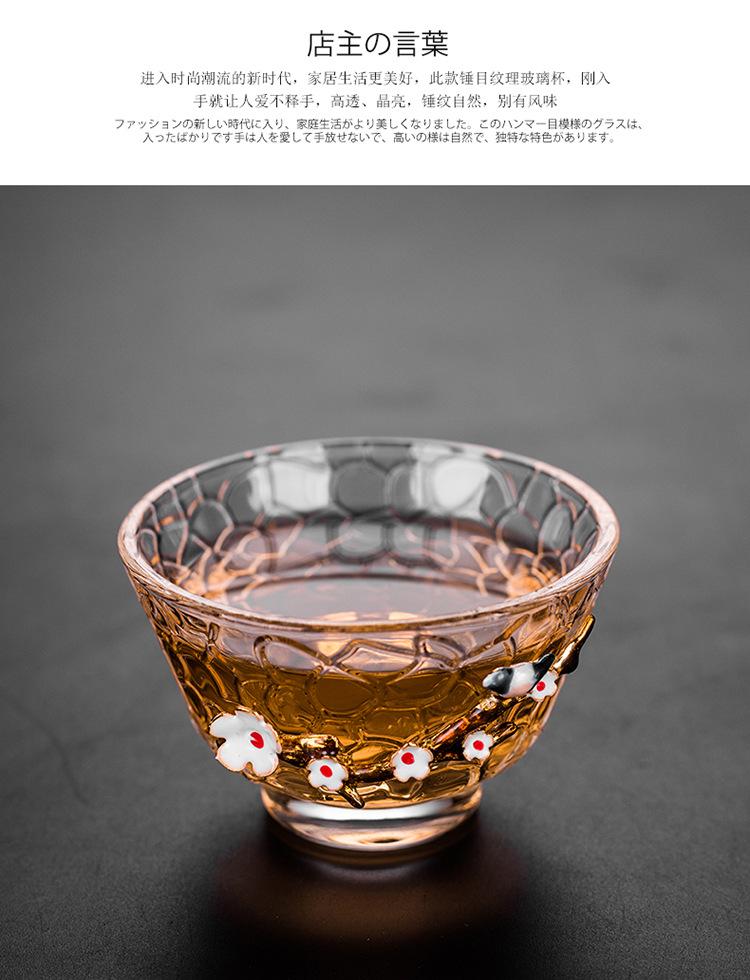 Taza de té de vidrio resistente al calor, transparente, de hojalata, con diseño de flor de kung fu, a prueba de explosiones y alta temperatura, con patrón de martillo, para degustación de té