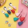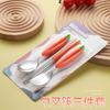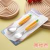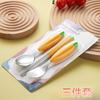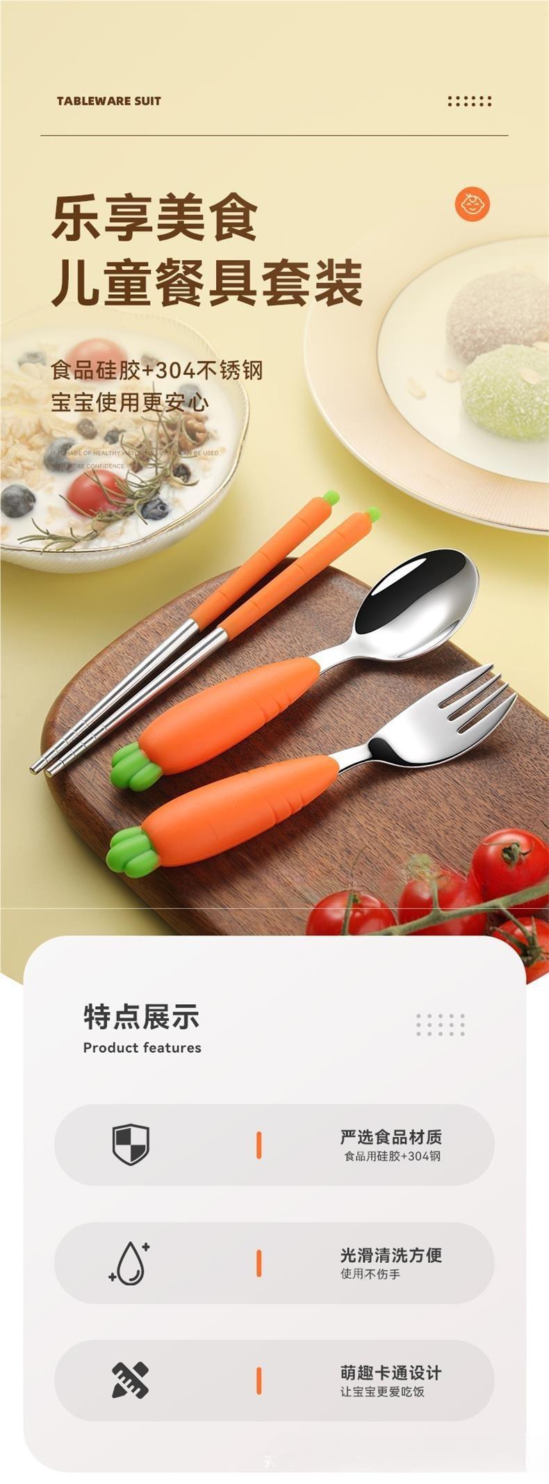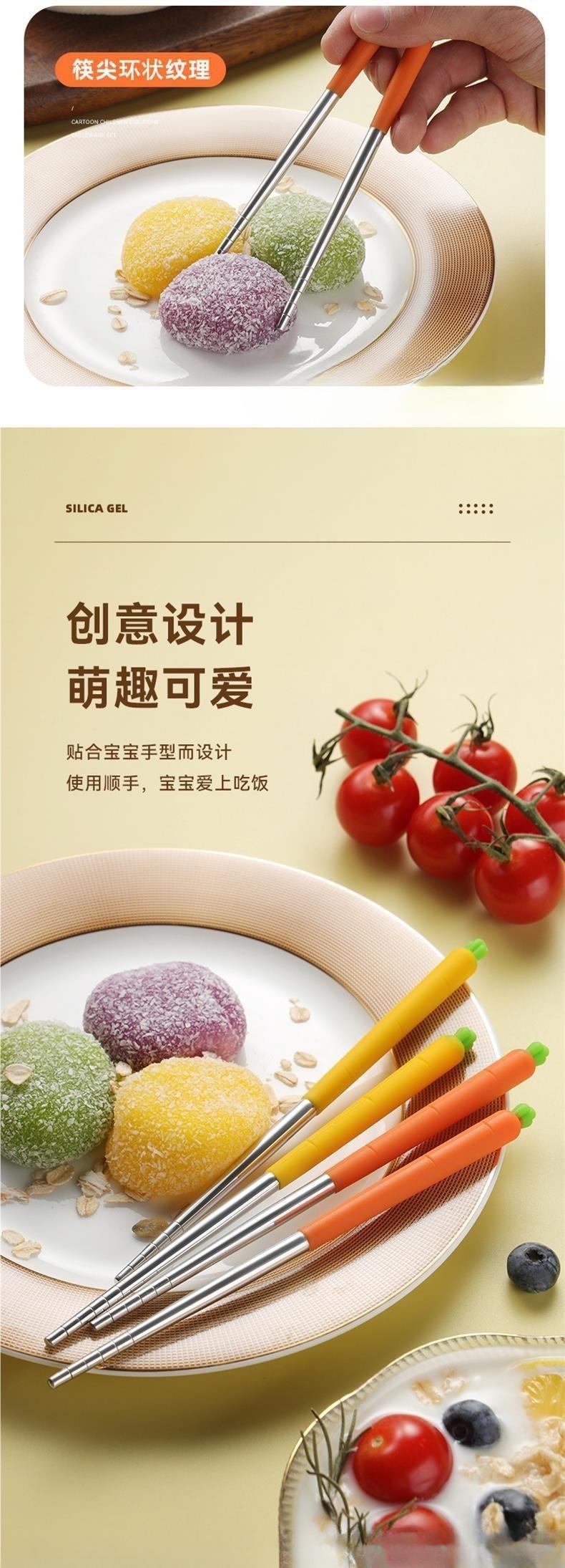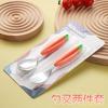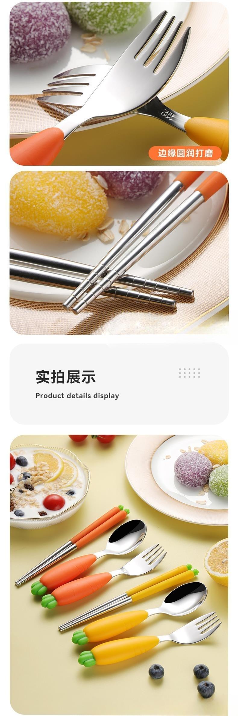 Cuchara y Tenedor de Mesa con Mango de Zanahoria de Silicona Juego de Vajilla para Niños Acero Inoxidable 304 Complemento Alimenticio Cuchara y Tenedor para Bebé