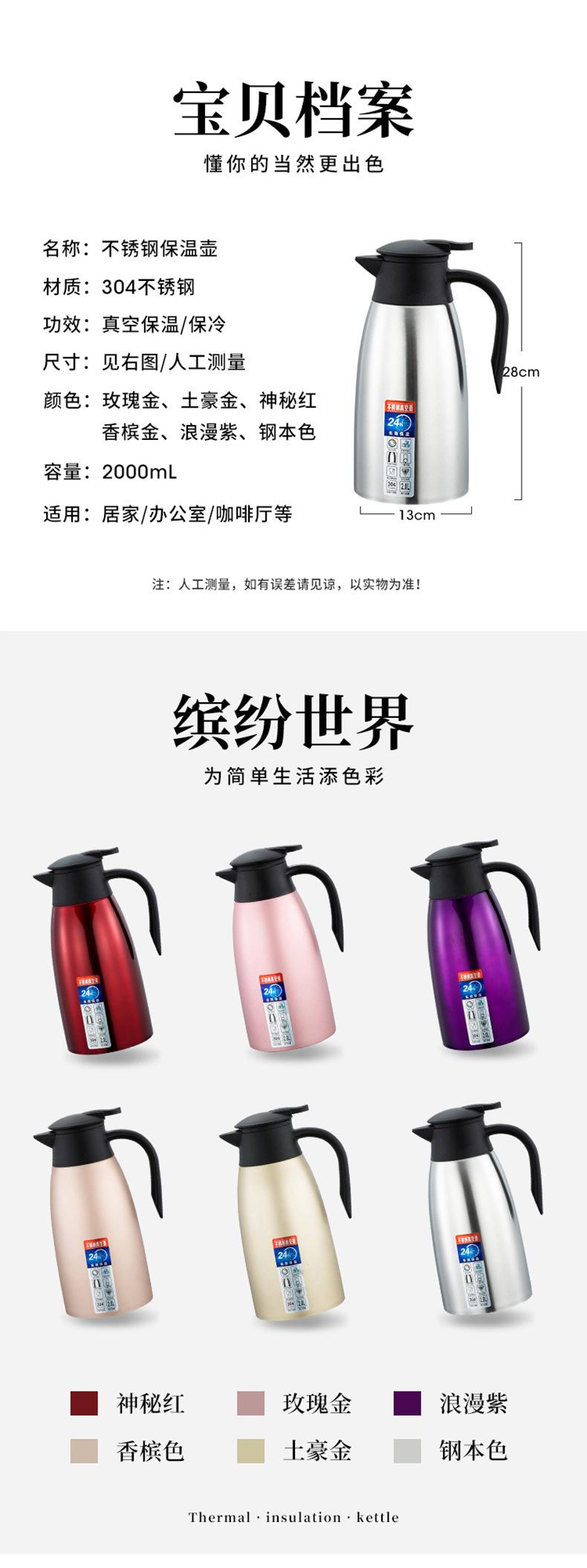 Termo de acero inoxidable 304 personalizado para el hogar, cafetera al vacío de doble capa, ideal para hoteles, estilo europeo.