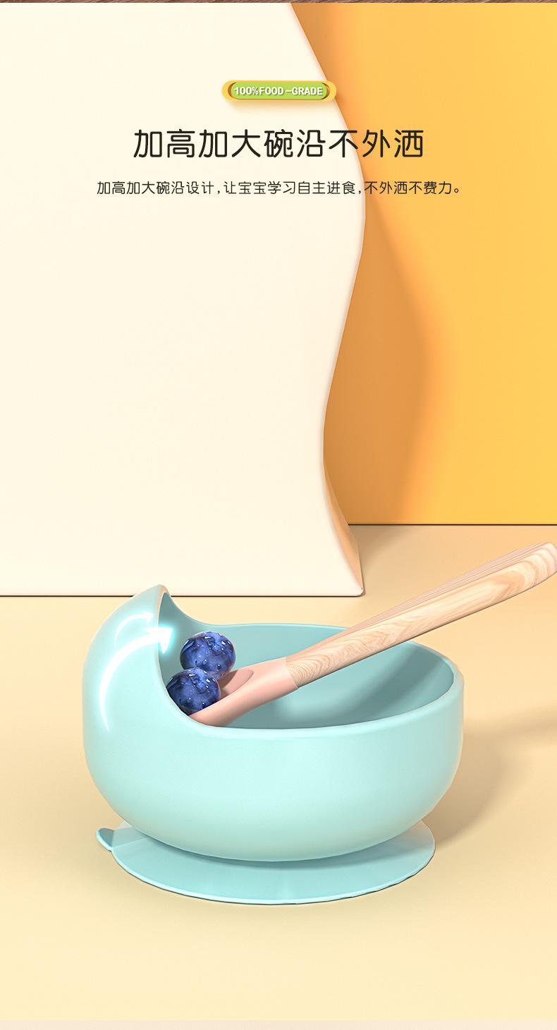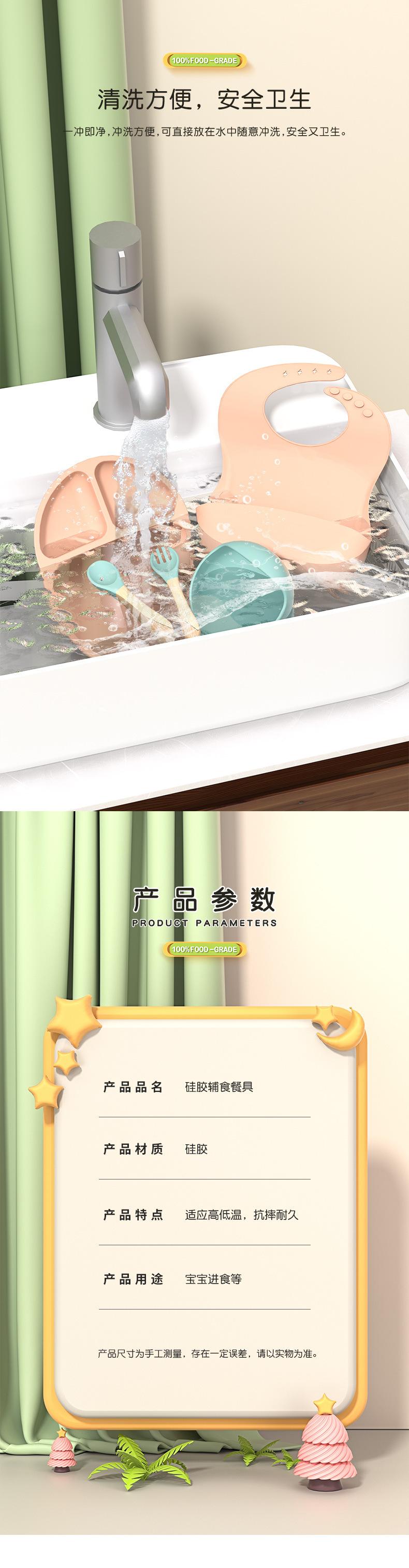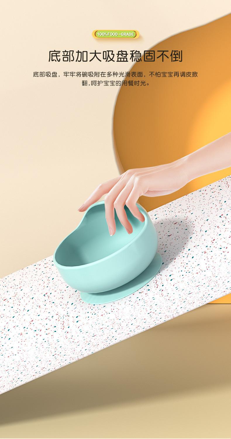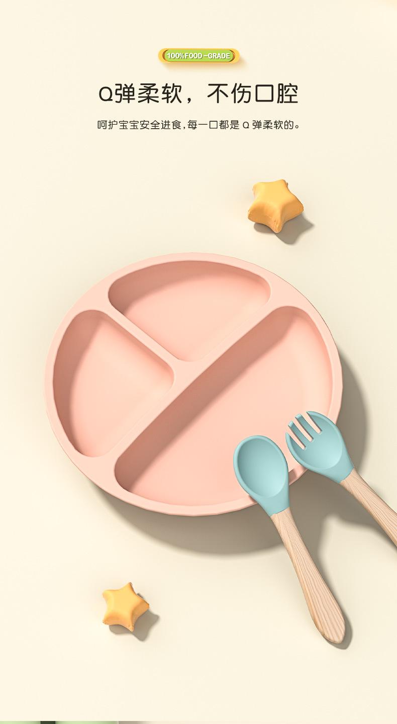 Plato de cena de silicona complementario para niños de gran venta transfronteriza, tazón, tenedor, cuchara, babero, juego de vajilla de cinco piezas, plato de cena resistente a caídas, plato de succión