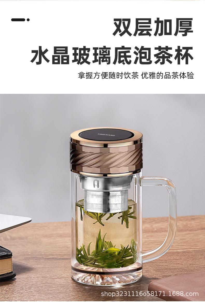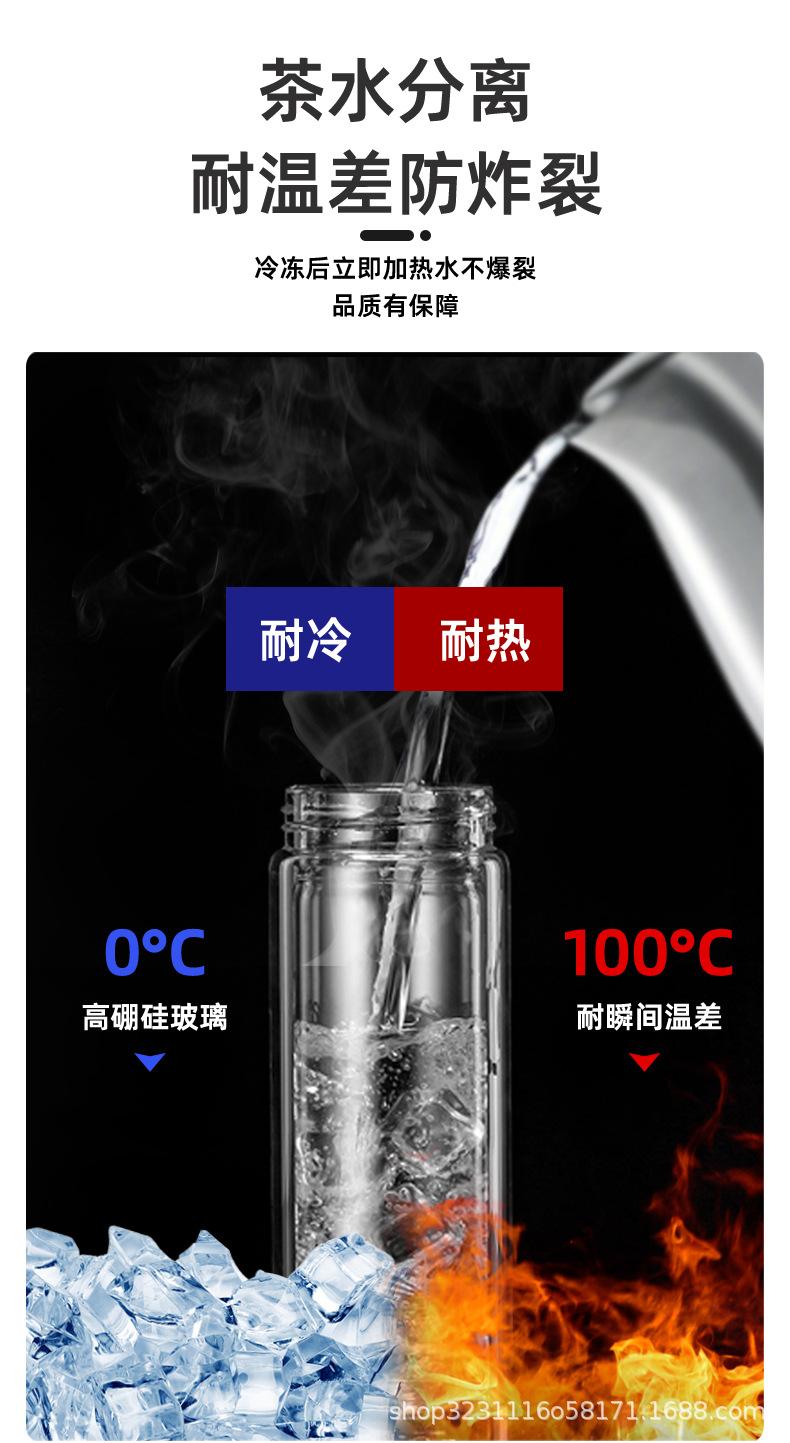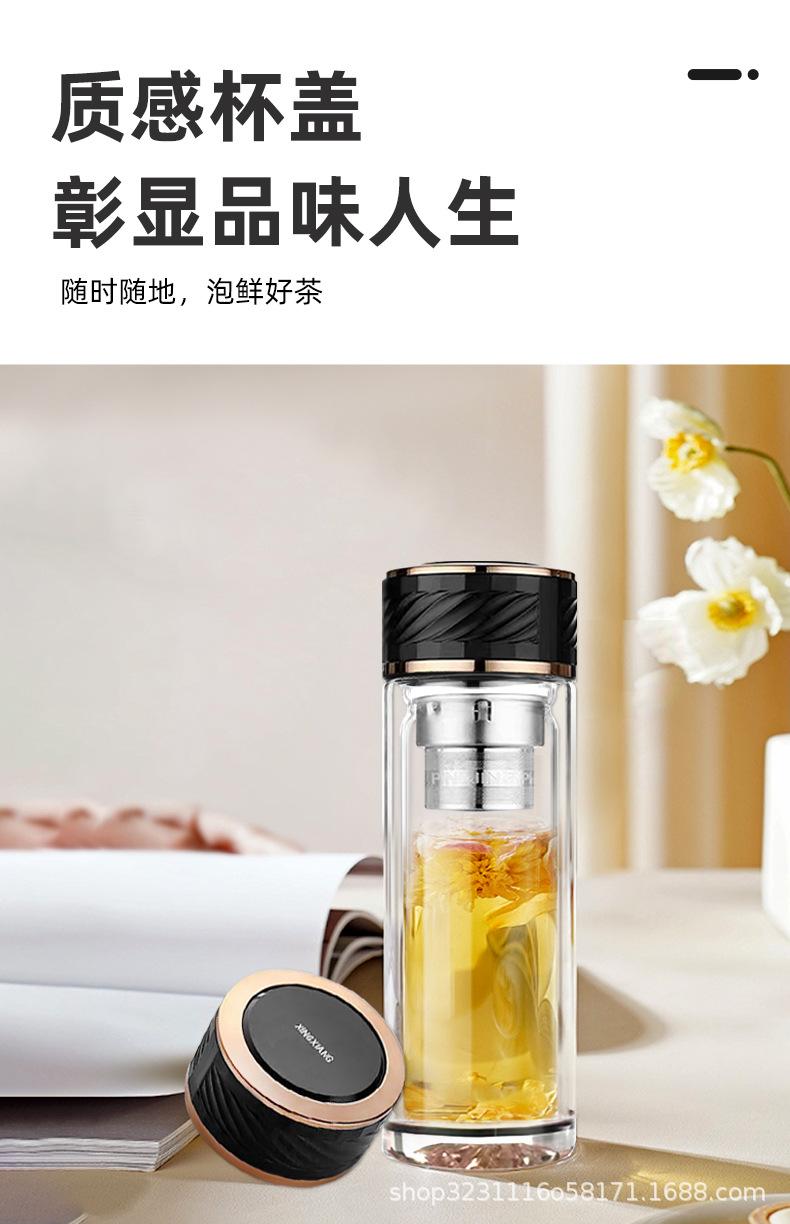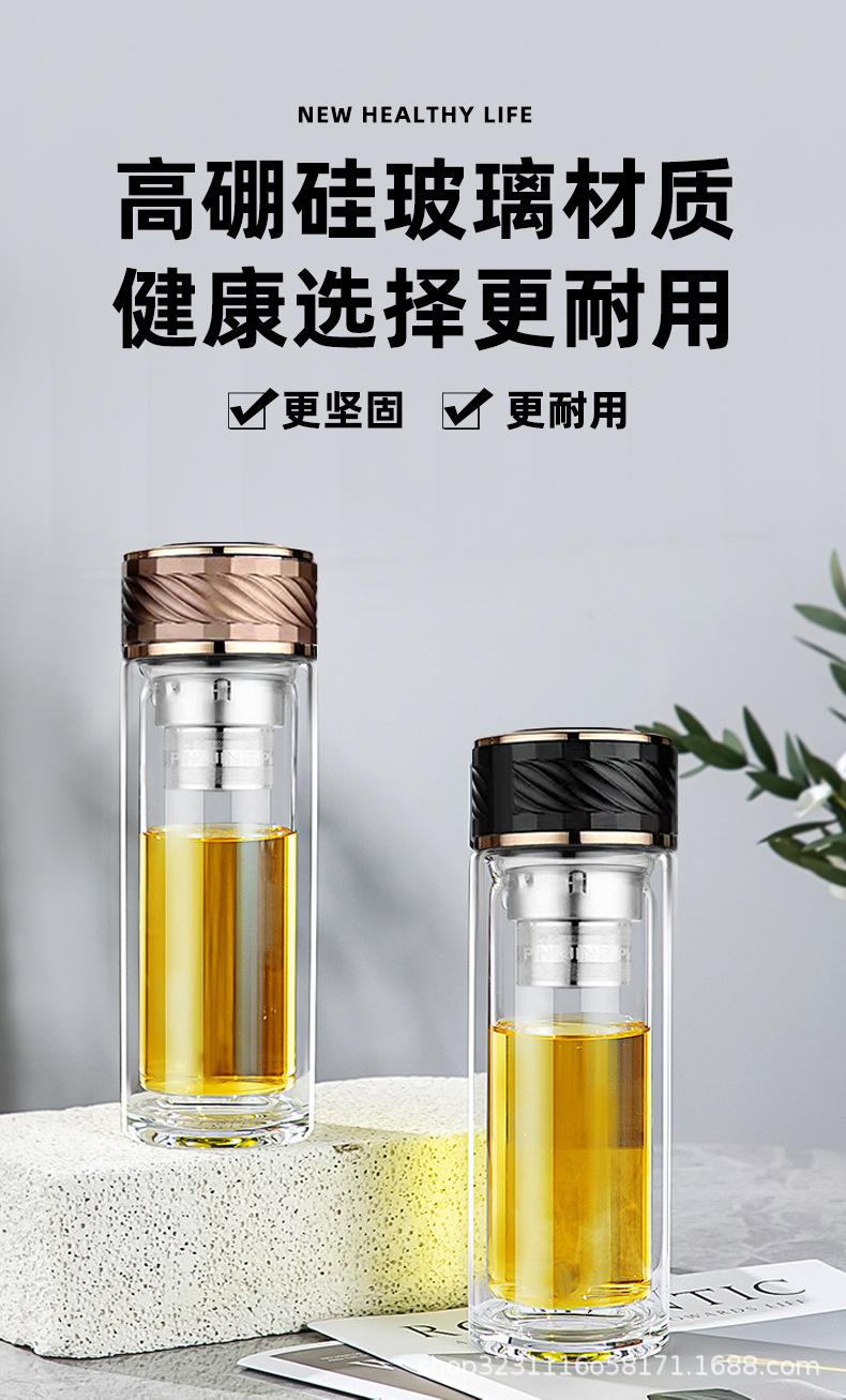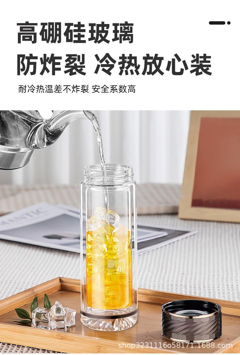 Taza de Vidrio de Doble Capa Publicitaria Impresa Taza de Vidrio para Regalo Alto Borosilicato Aislamiento Térmico Negocios Separación de Té y Agua Taza de Vidrio Entrega Rápida