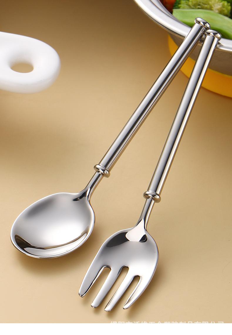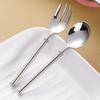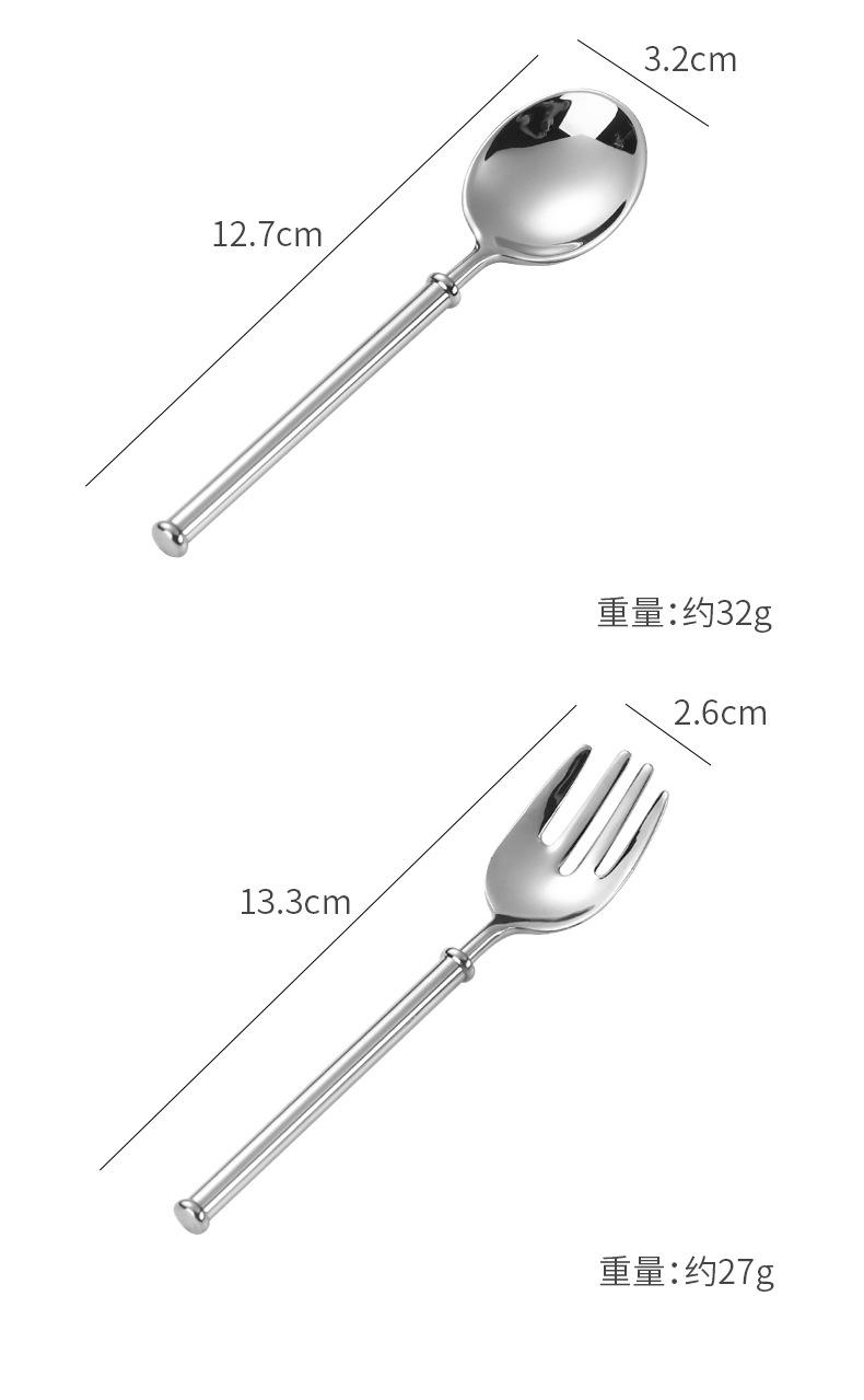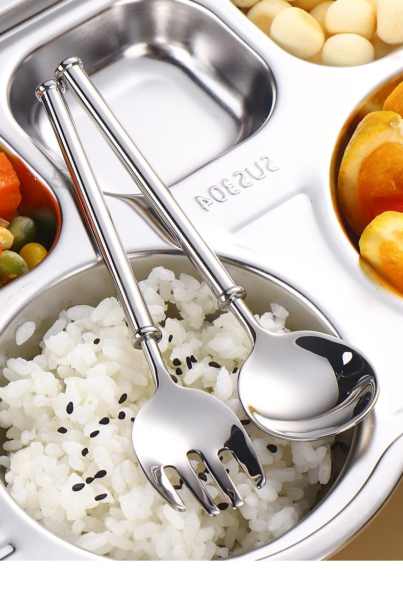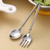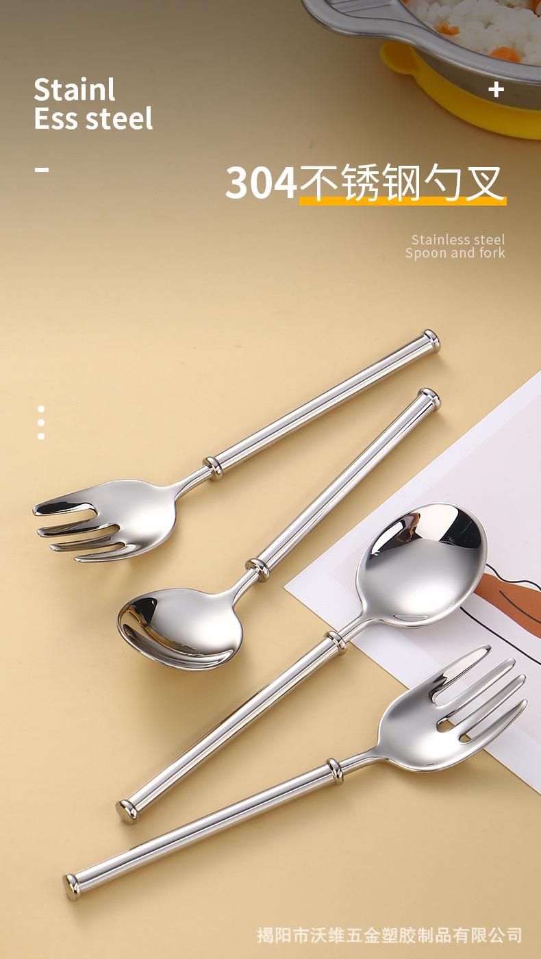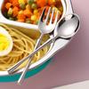 Cuchara para niños de acero inoxidable 304 de aspecto elegante, tenedor cuchara mango largo estudiante para comer tenedor cuchara juego de dos piezas cuchara para bebé