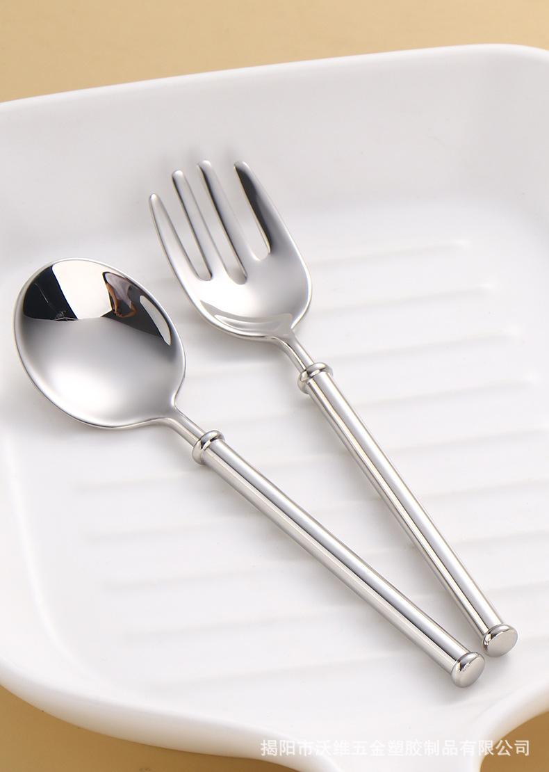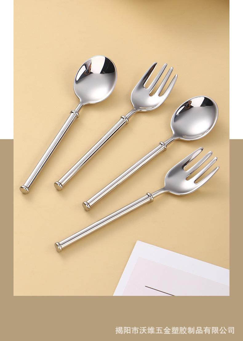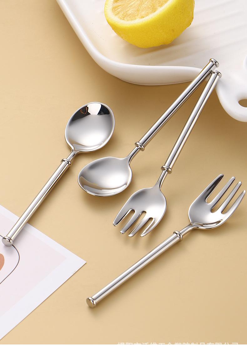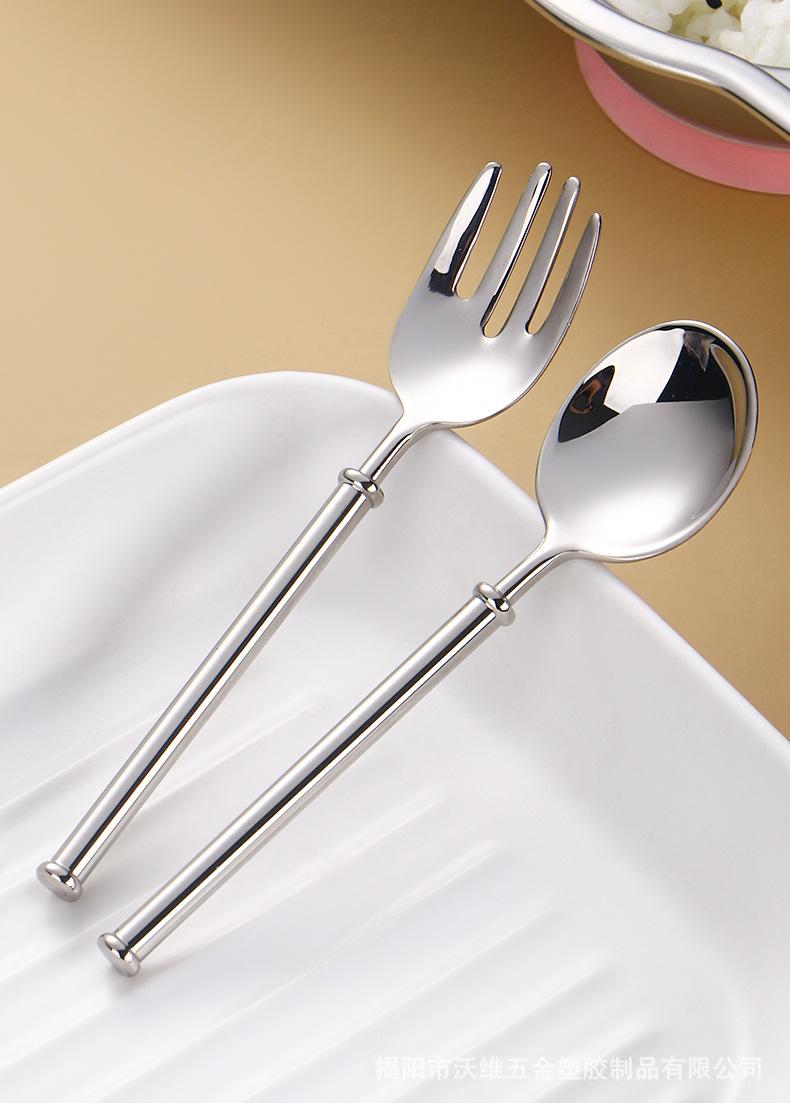 Cuchara para niños de acero inoxidable 304 de aspecto elegante, tenedor cuchara mango largo estudiante para comer tenedor cuchara juego de dos piezas cuchara para bebé