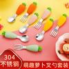 Vajilla infantil de acero inoxidable 304, cuchara, tenedor, caja, juego de tres piezas, tenedor, cuchara de entrenamiento para alimentos complementarios de autoalimentación para bebés