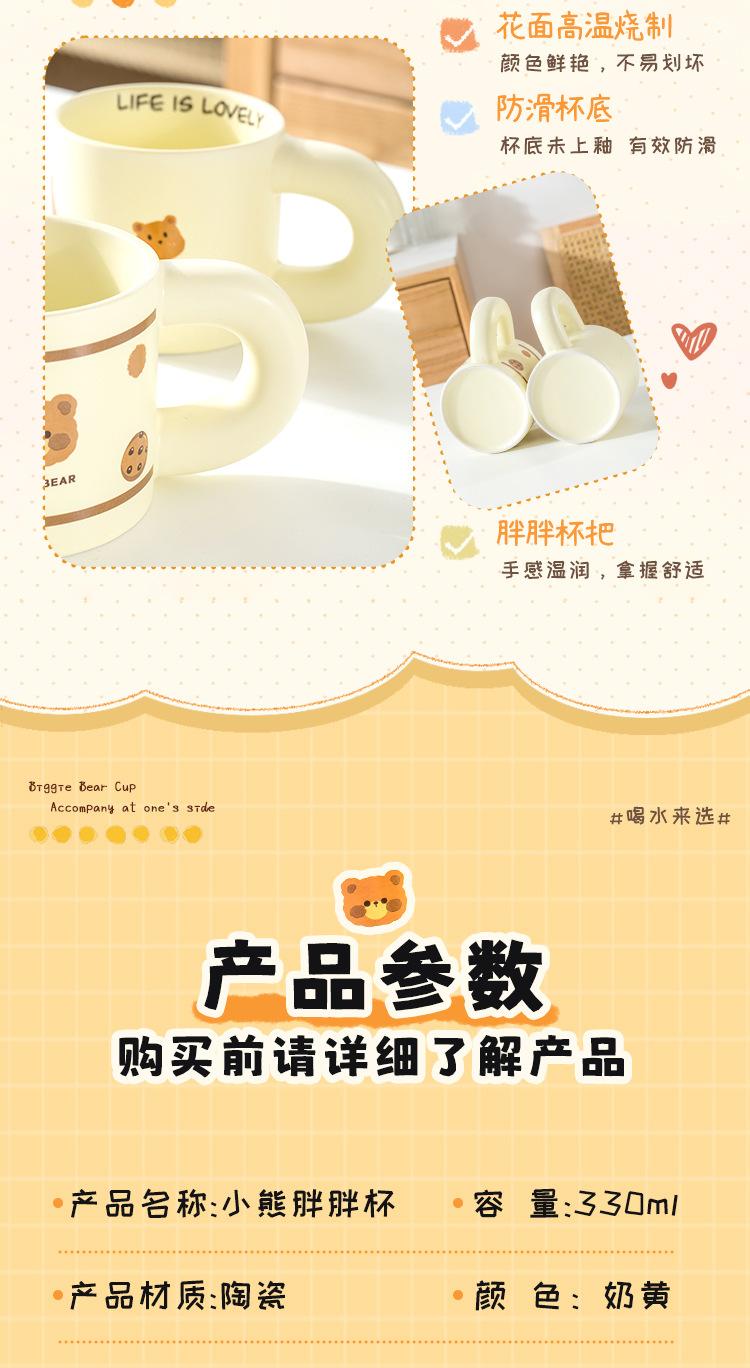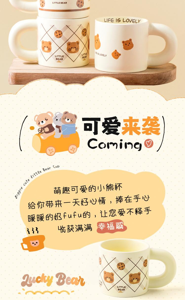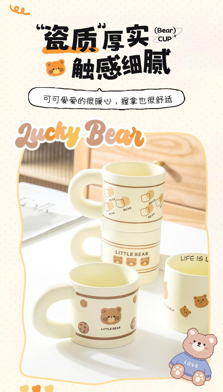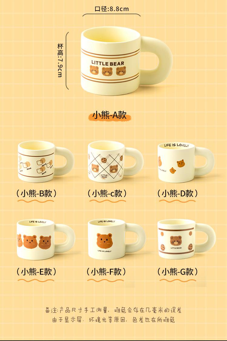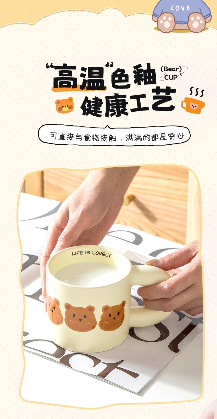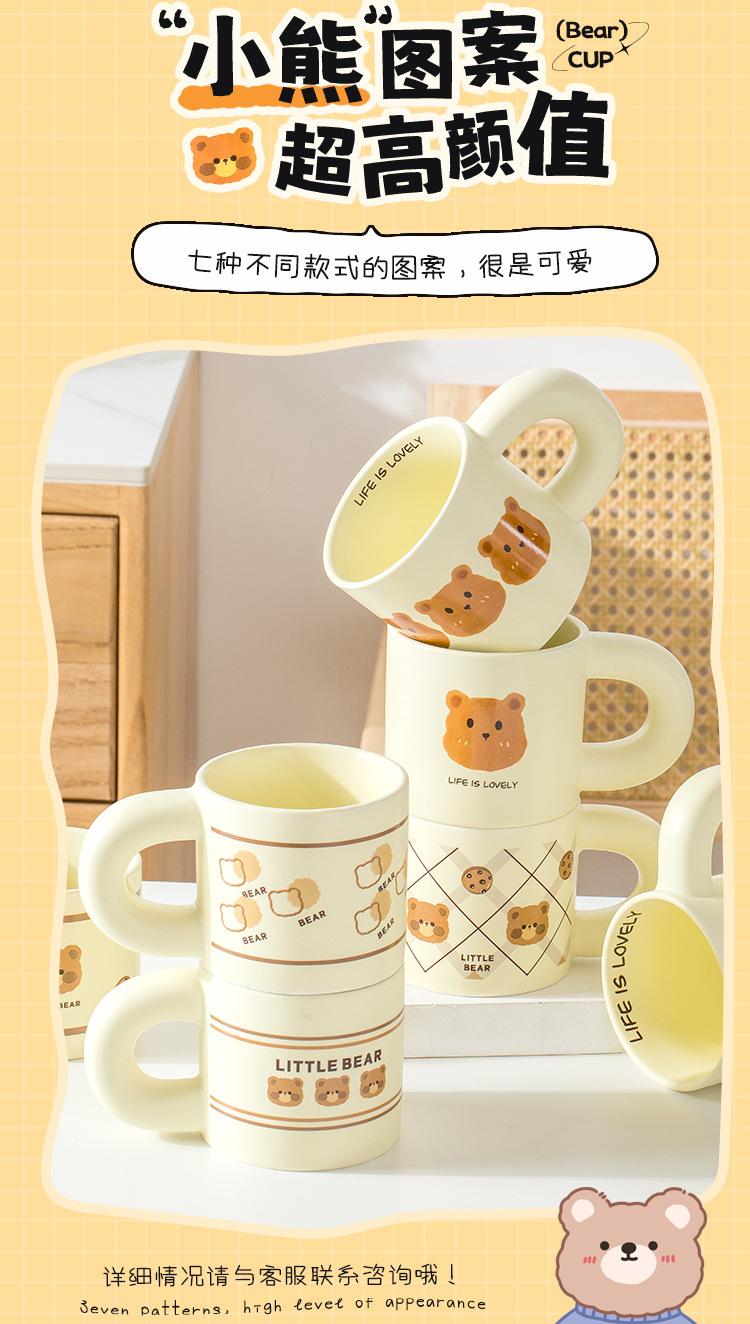 Taza de leche con diseño de oso lindo estilo Ins para el hogar, taza de cerámica con dibujos animados para café, taza de agua con alto valor de color, taza para pareja