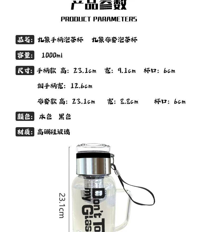Nuevo vaso de agua transparente de alto valor resistente al calor de gran capacidad vidrio deportes al aire libre separación té agua agua potable