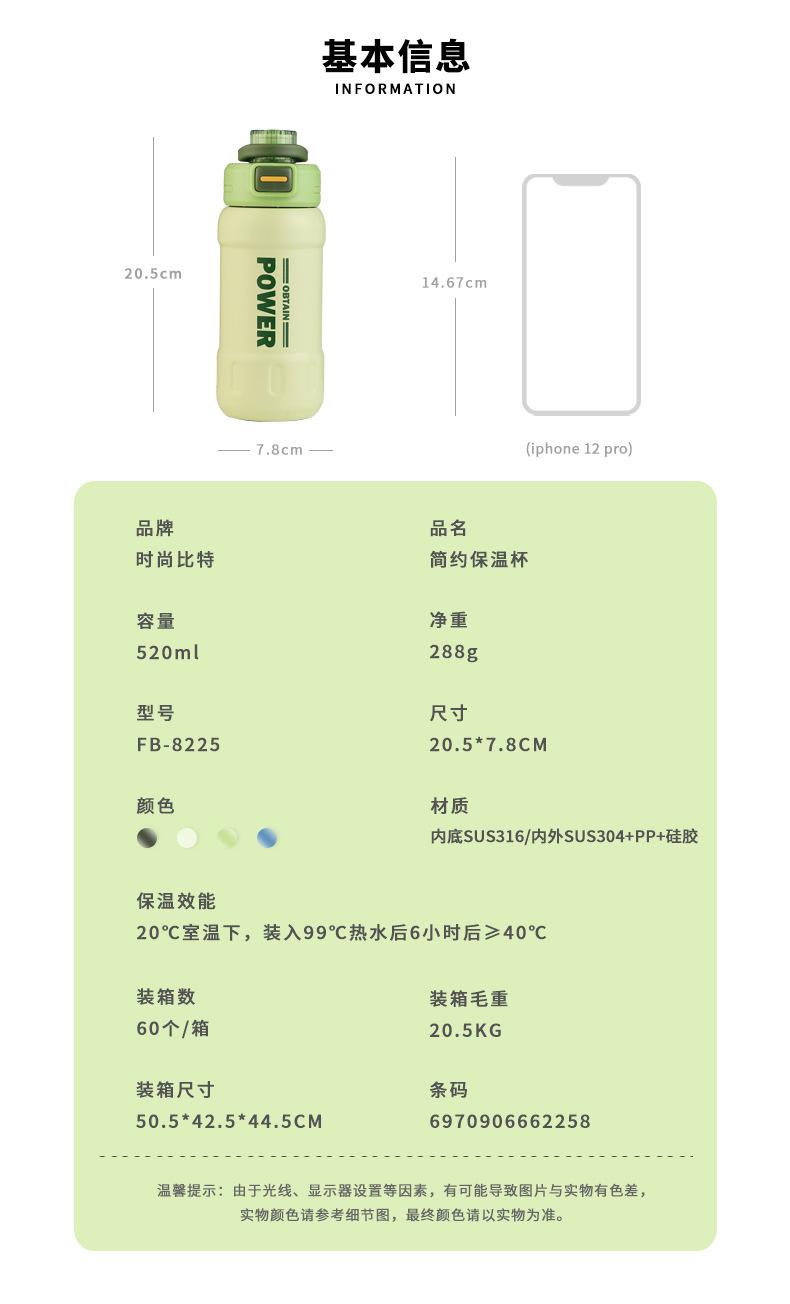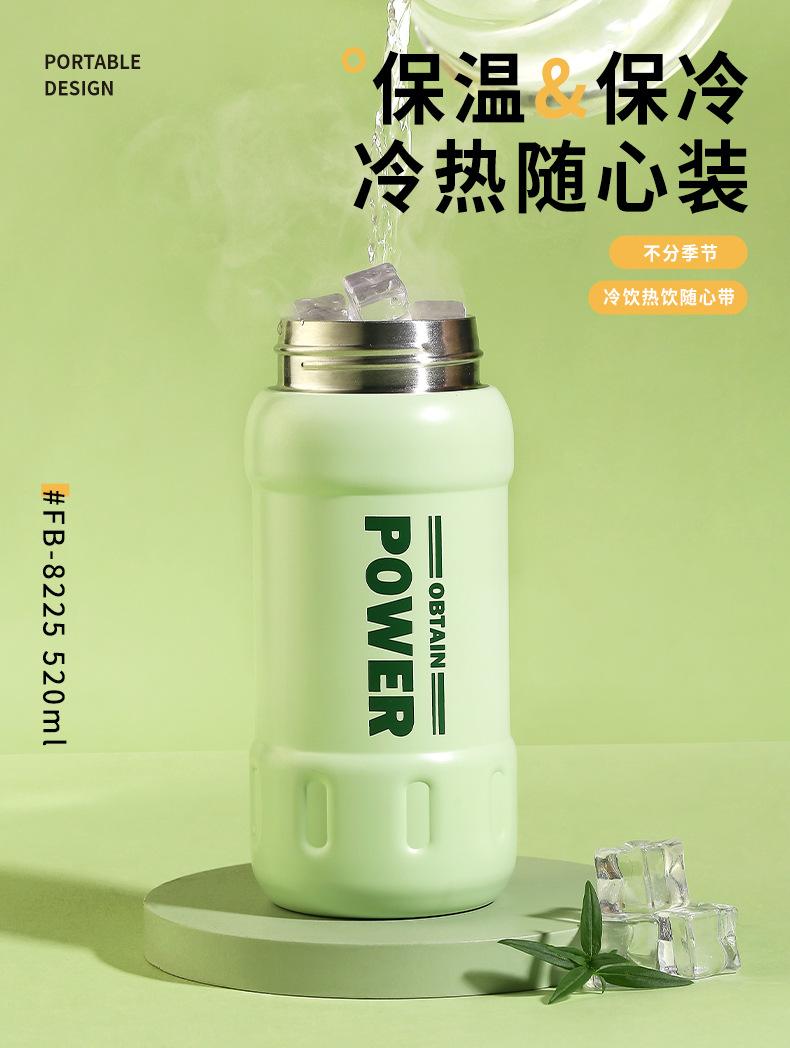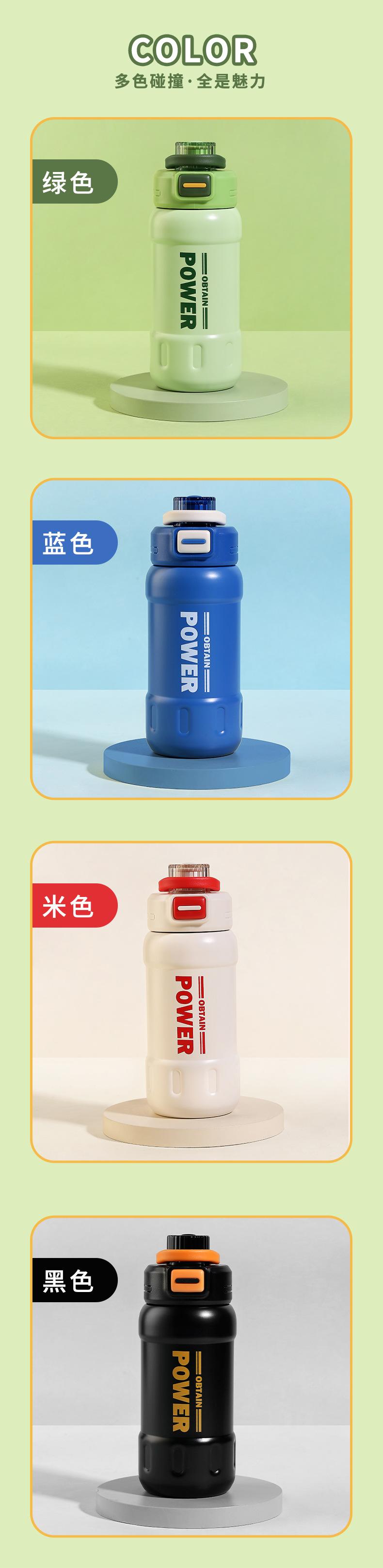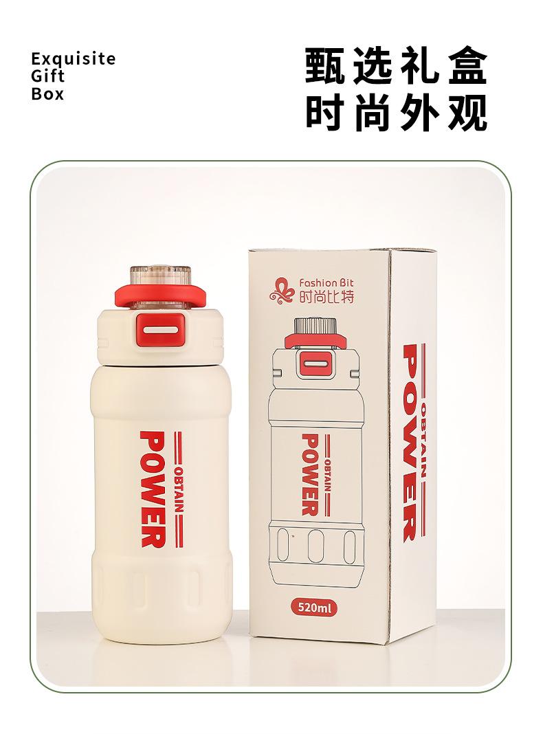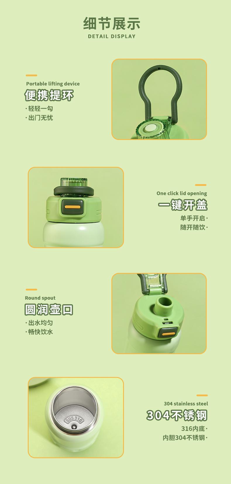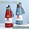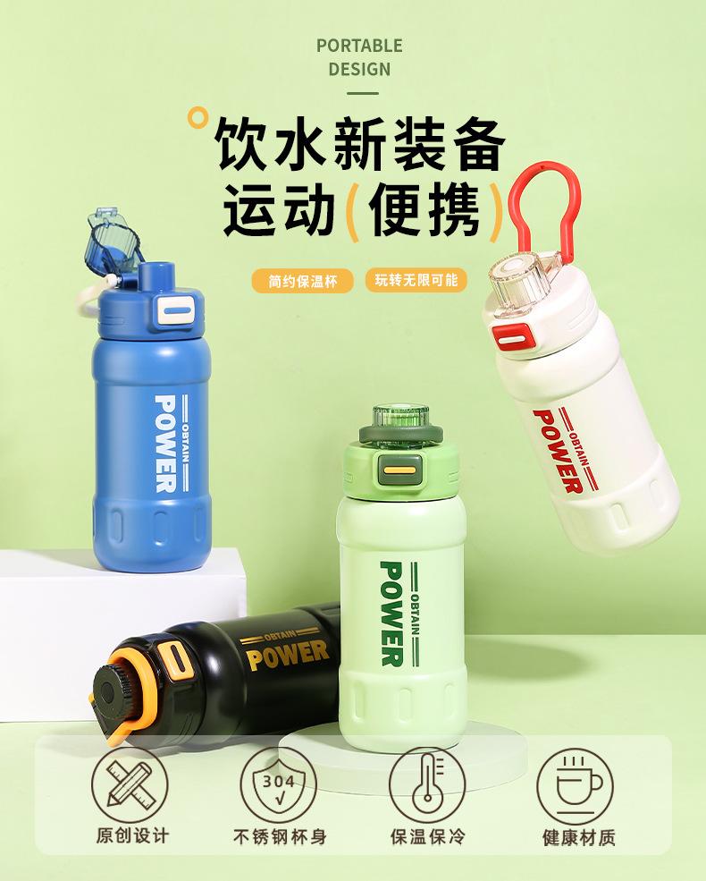 Termo portátil de acero inoxidable con tapa elástica y diseño moderno para deportes al aire libre, ideal para hombres y mujeres estudiantes.
