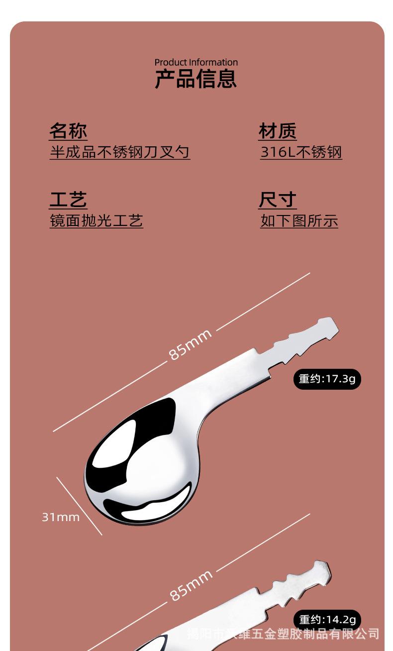Acero inoxidable 316 lingote semiterminado tenedor cuchara accesorios de ferretería 304 bebé mango corto codo tenedor cuchara vajilla mayoreo