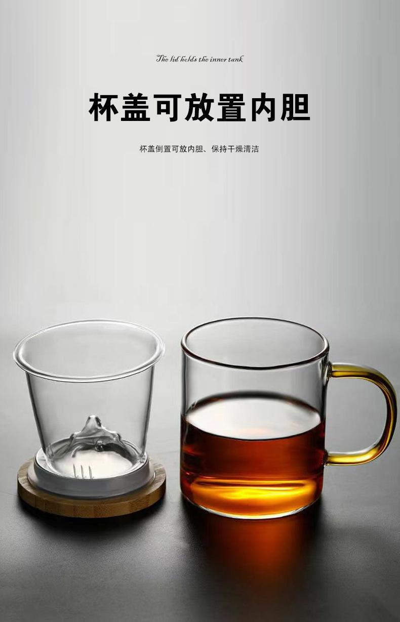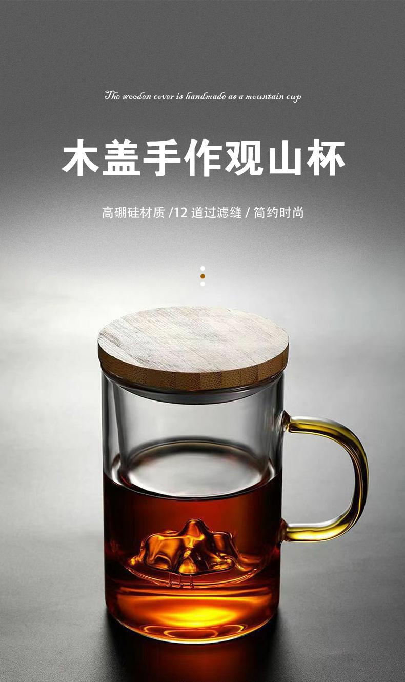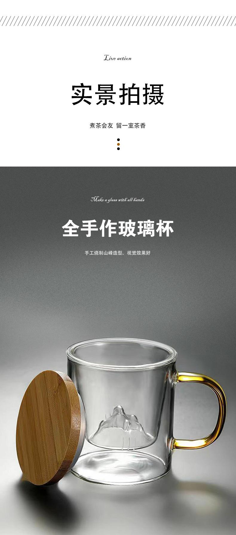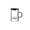 Taza de vidrio calentable resistente a altas temperaturas para hacer té Taza Vista a la Montaña con tapa de bambú Taza para separación de té y agua con asa para hogar oficina
